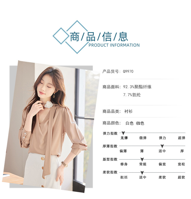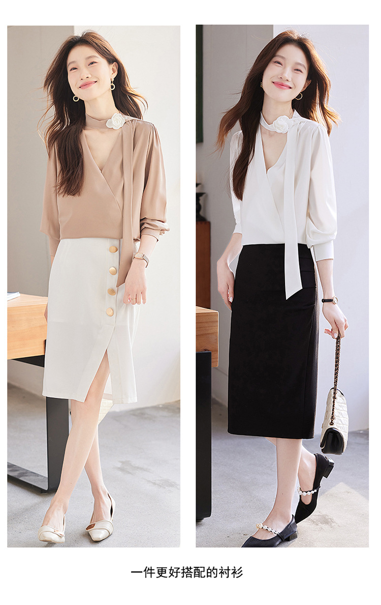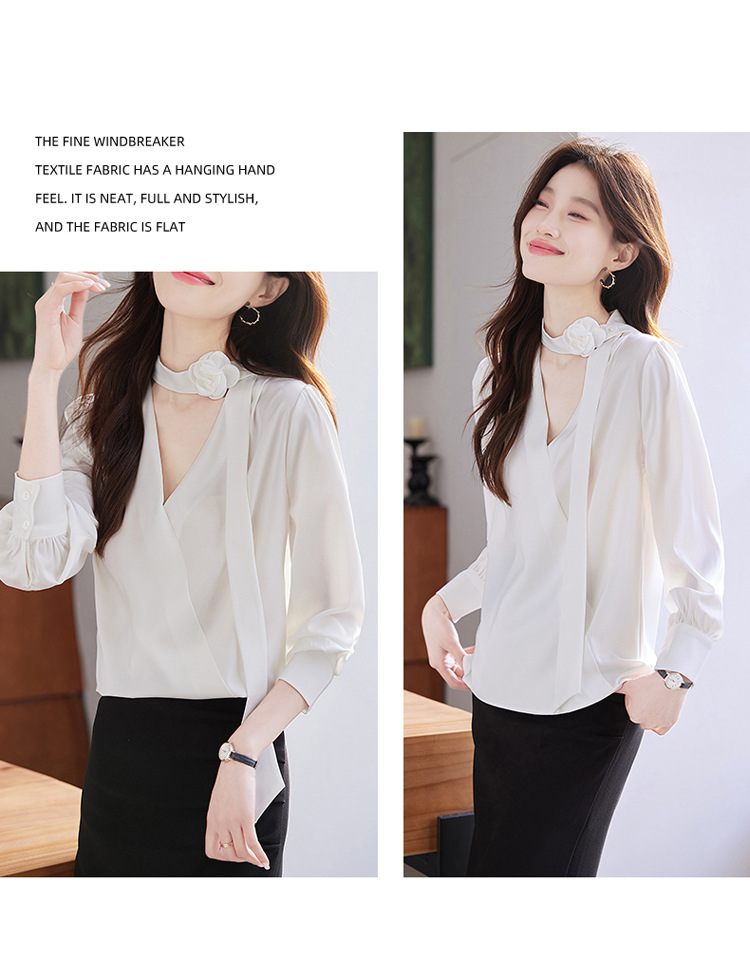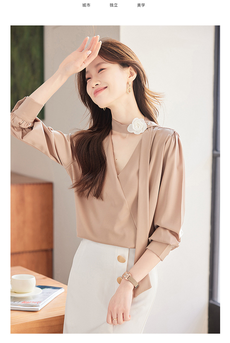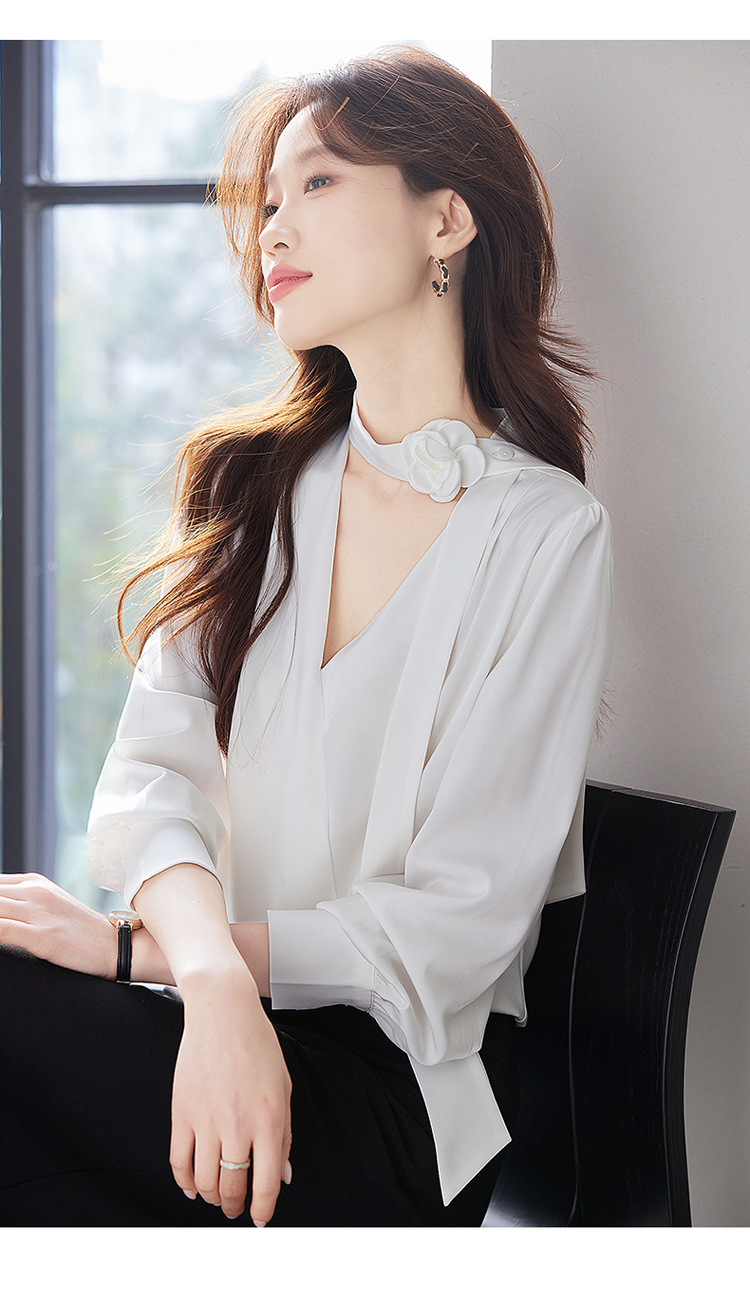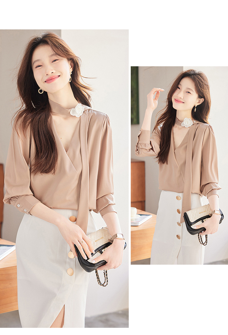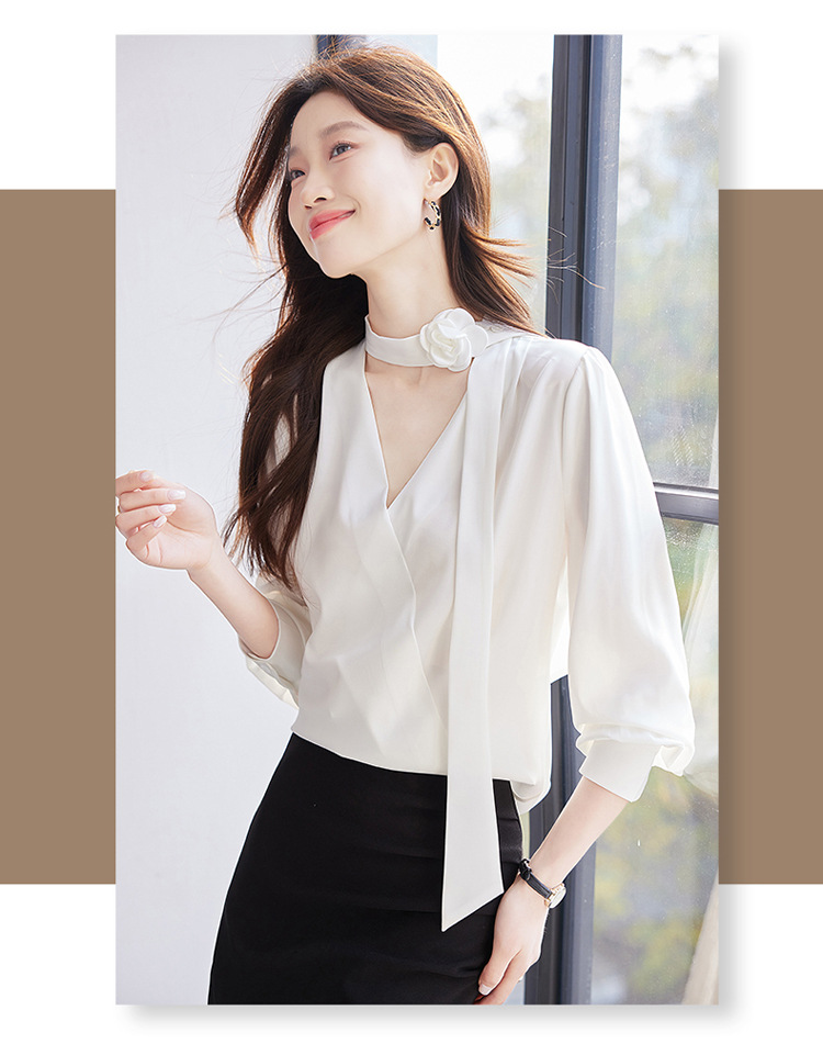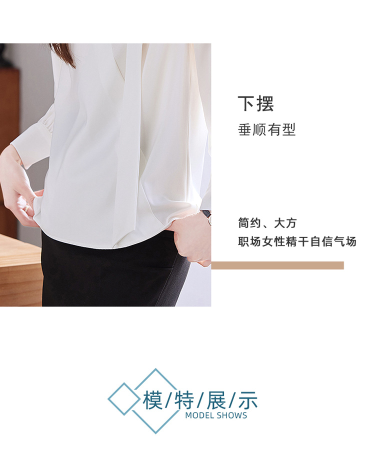 V-Neck 셔츠 여성 프로페셔널 착용 2025 초봄과 가을 러플 스트랩 에이지 감소 프랑스 하이 엔드 긴팔 쉬폰 셔츠스토어 가기