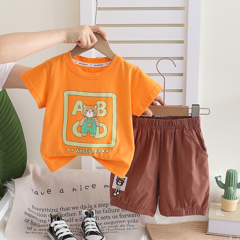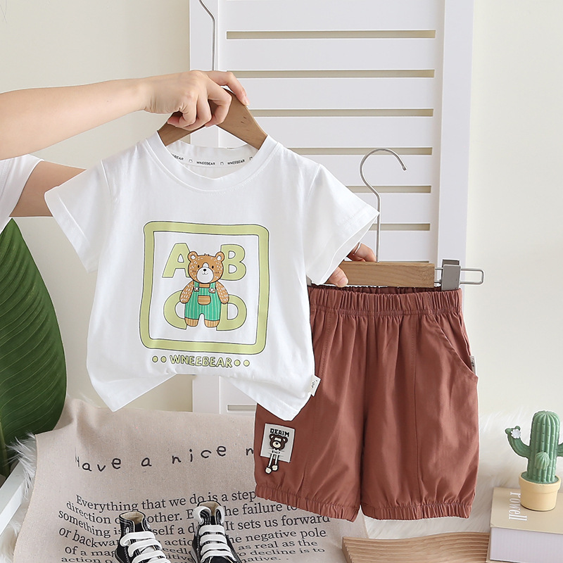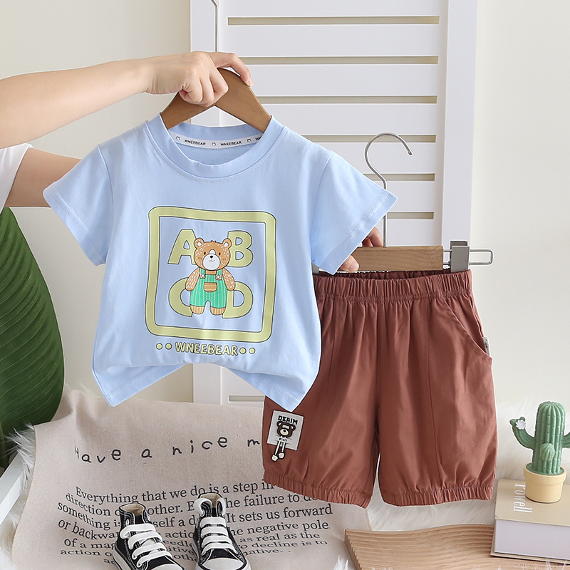2025 새 여름 한국 아동복 반팔 어린이 세트 0-5 세 투피스 소년 아동복 여름 옷