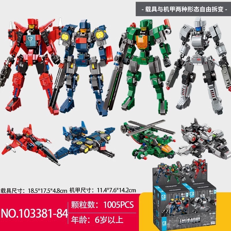 센바오 강철 기계 전사 103381 변형 로봇 중국 건물 블록 조립 교육 소년 장난감