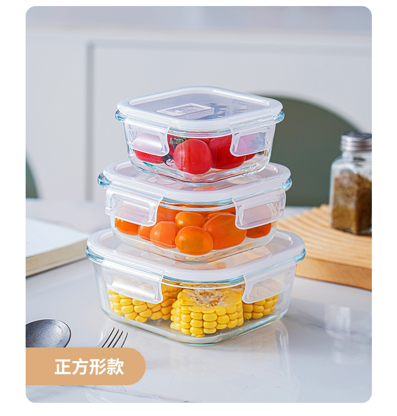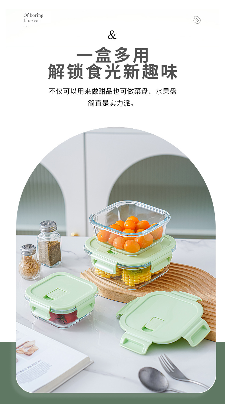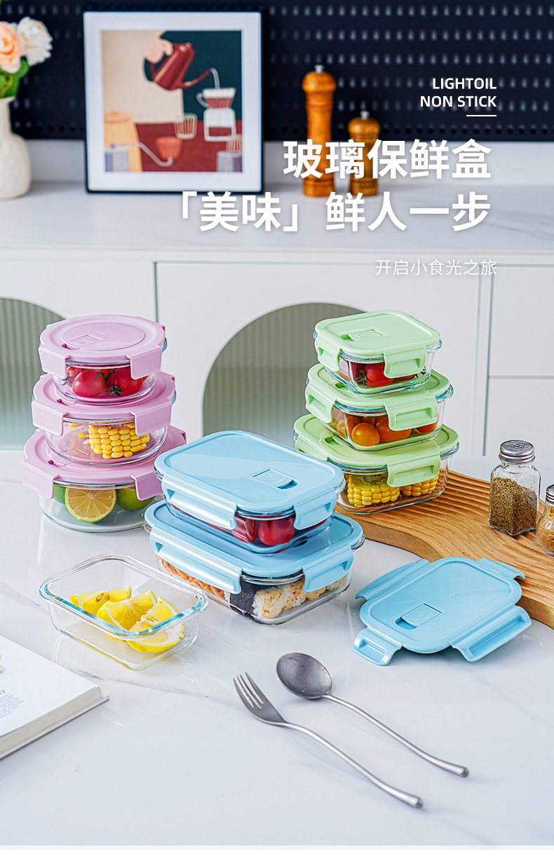 한국식 유리 도시락 상자, 학생용 전자 레인지 난방 도시락에 들어갈 수 있음 직장인을위한 직사각형 도시락 가정용 신선한 보관 상자스토어 가기