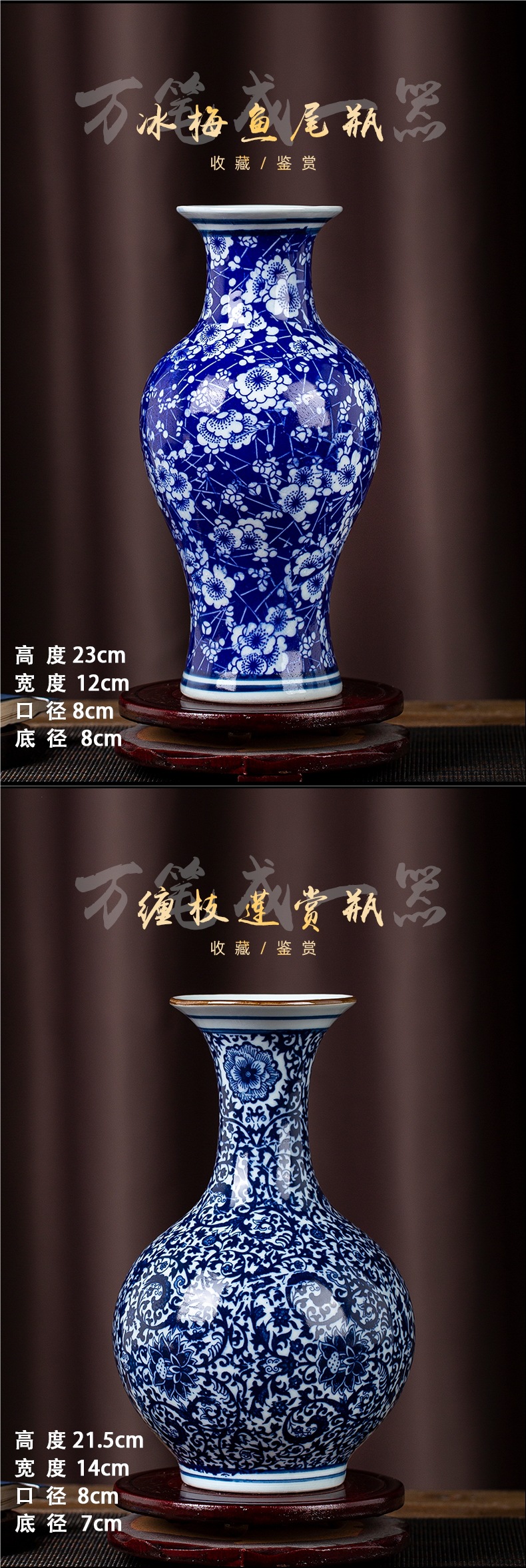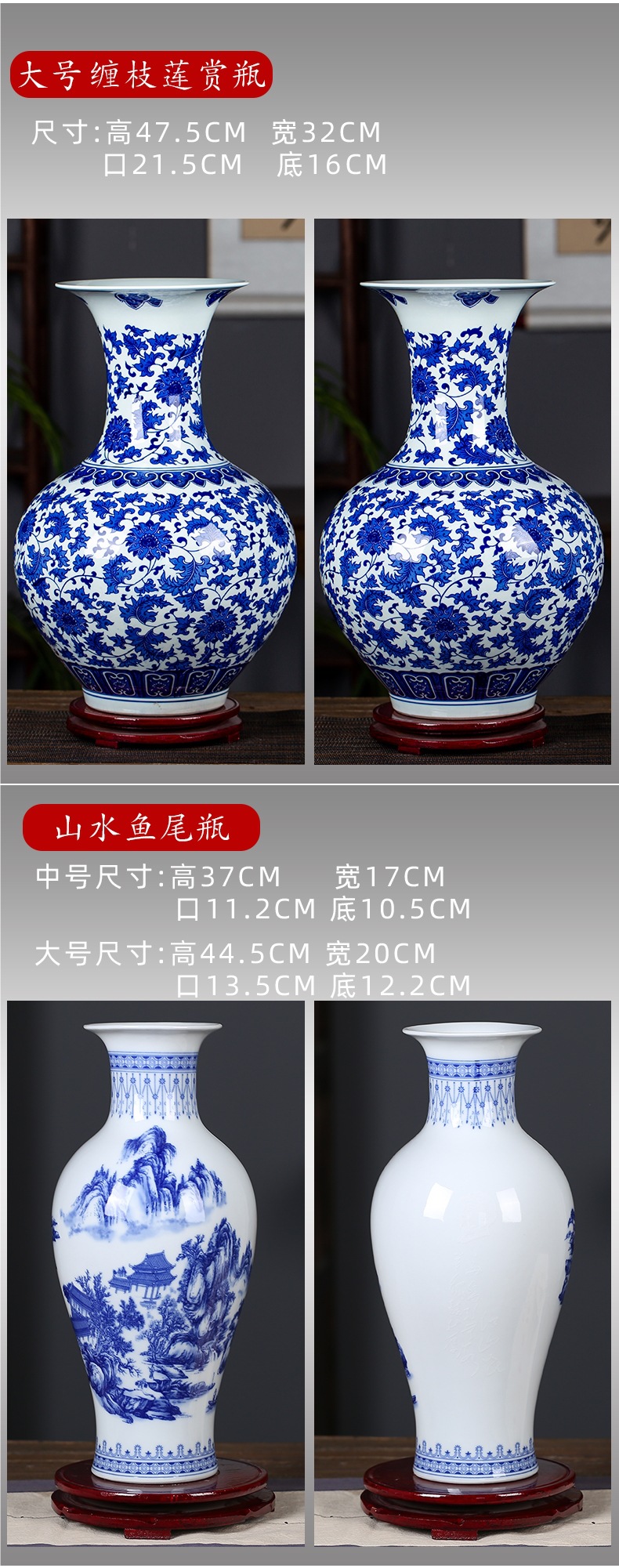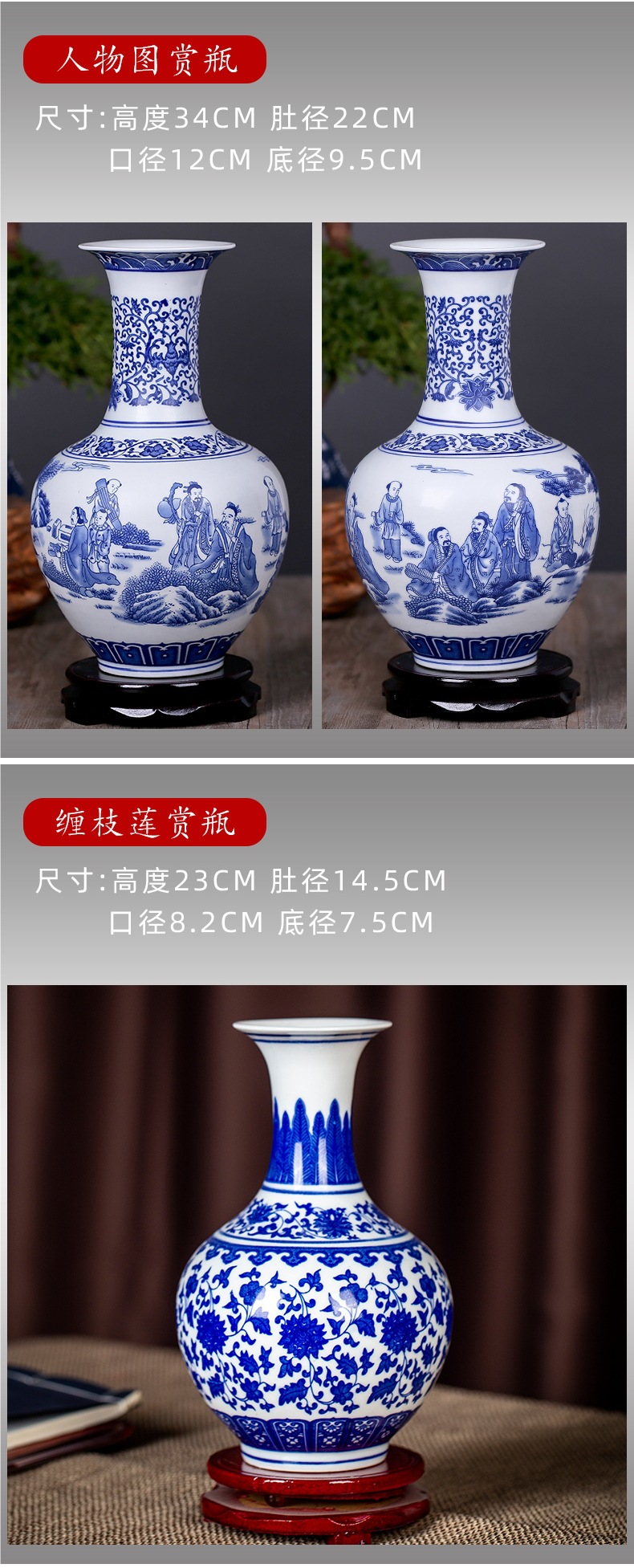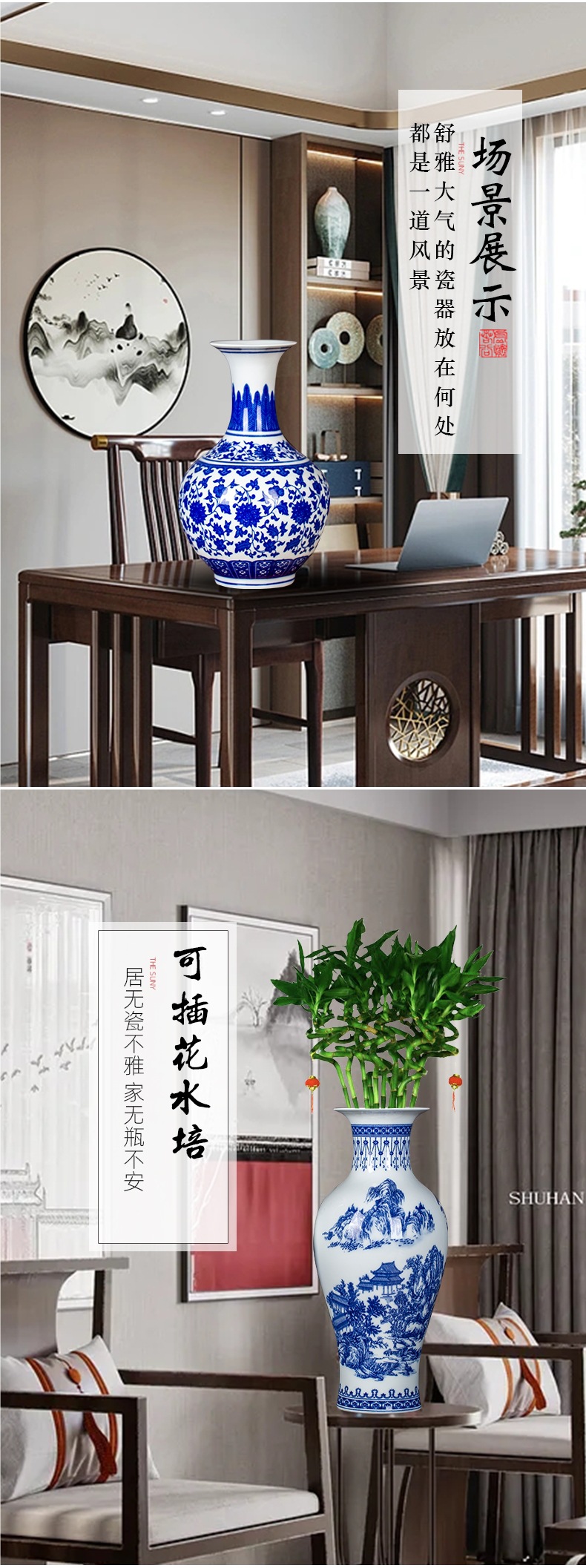 Jingdezhen 도자기 중국 스타일 파란색과 흰색 도자기 꽃병 거실 풍부한 대나무 입구 꽃 장식품스토어 가기