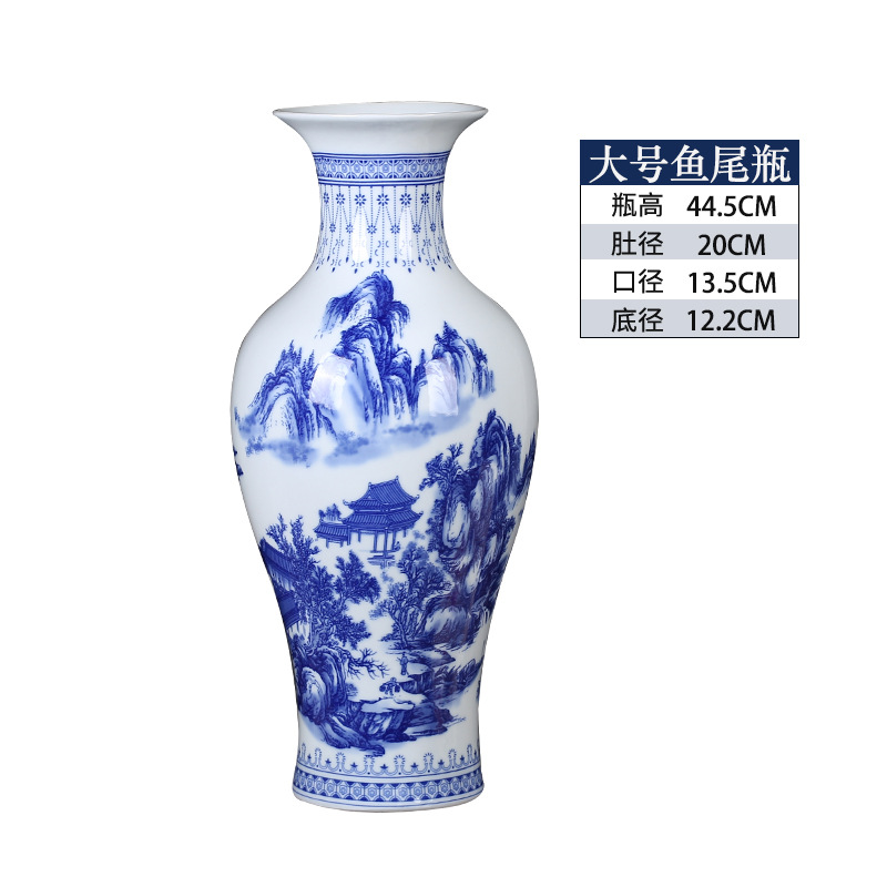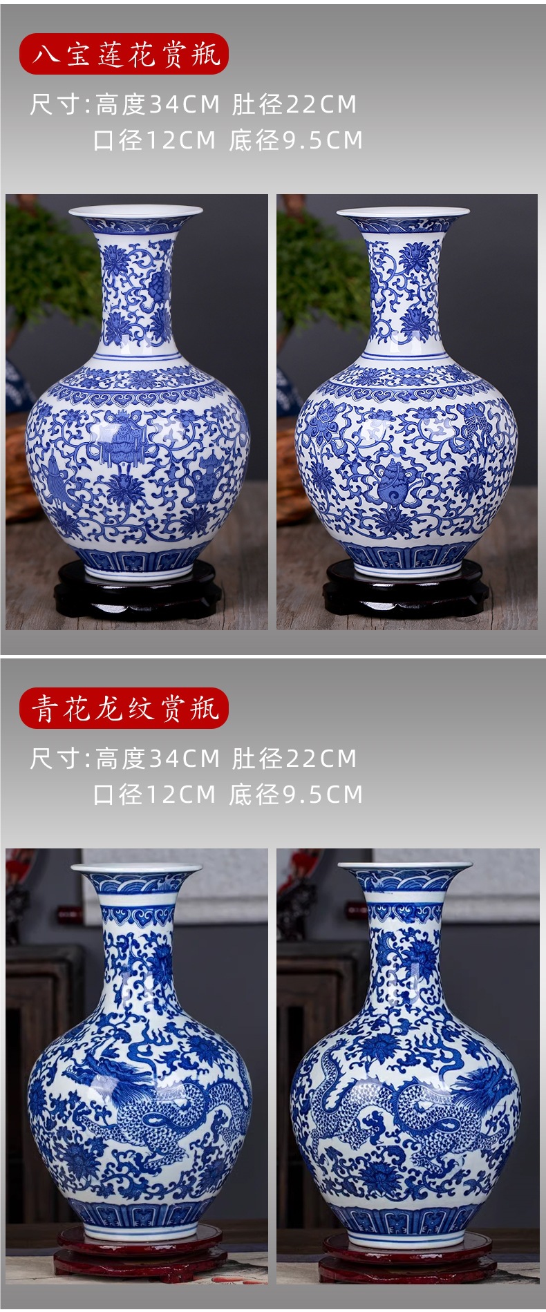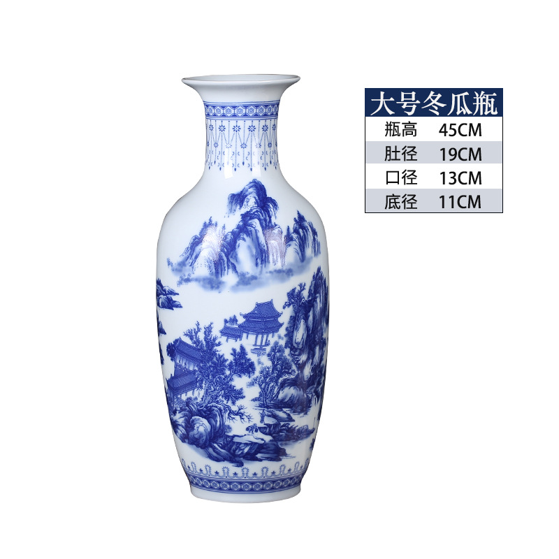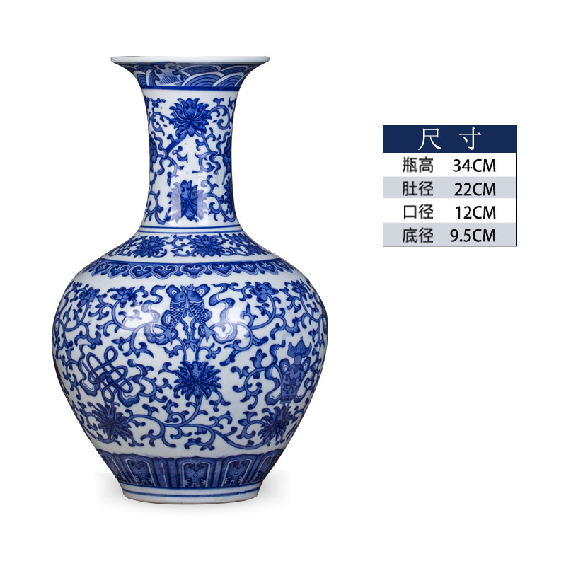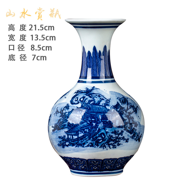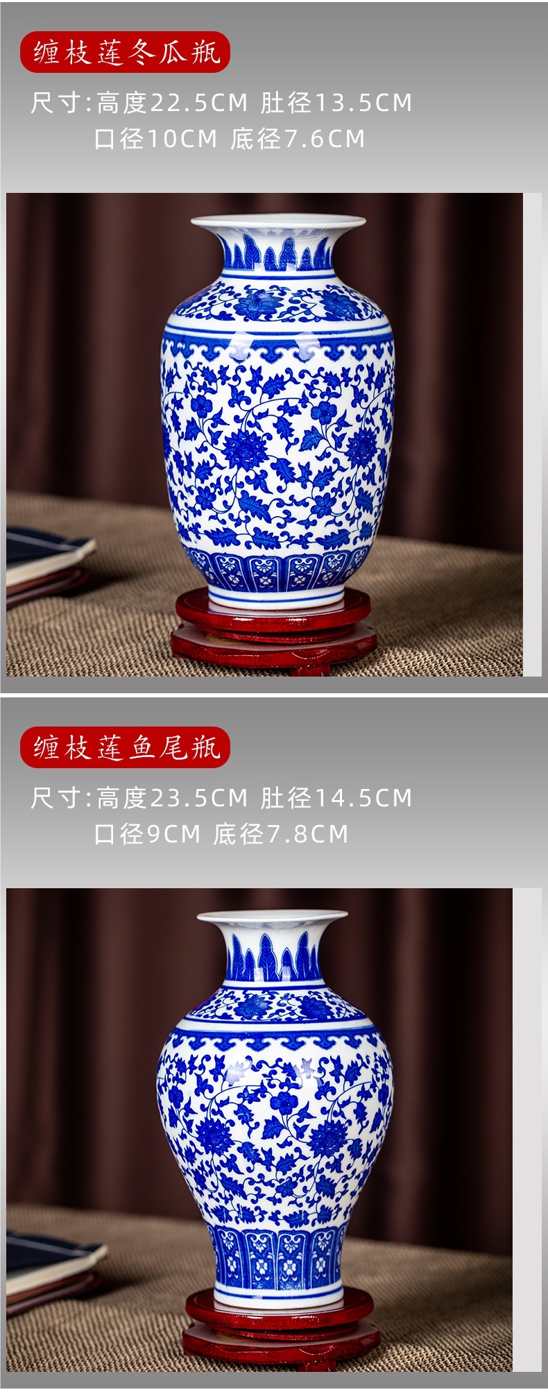 Jingdezhen 도자기 중국 스타일 파란색과 흰색 도자기 꽃병 거실 풍부한 대나무 입구 꽃 장식품스토어 가기