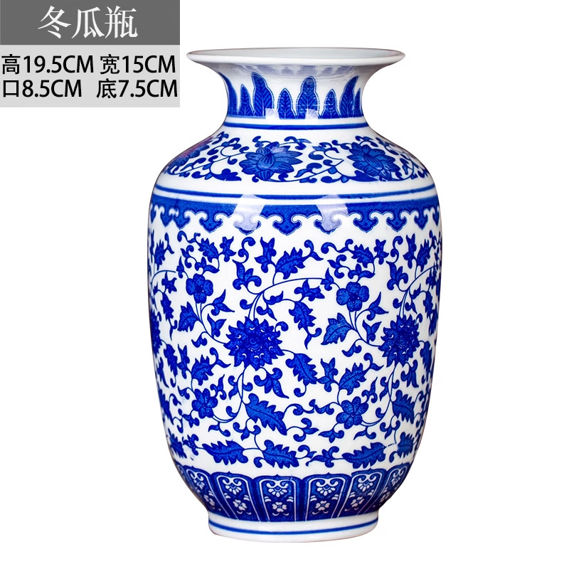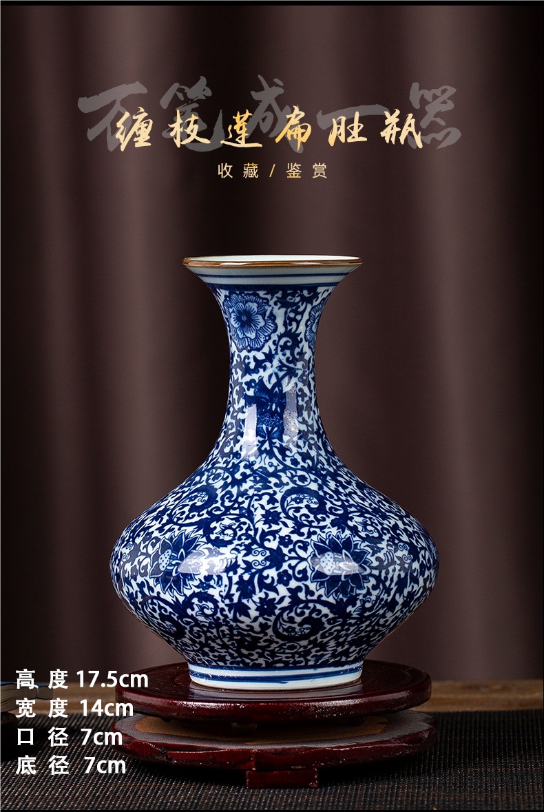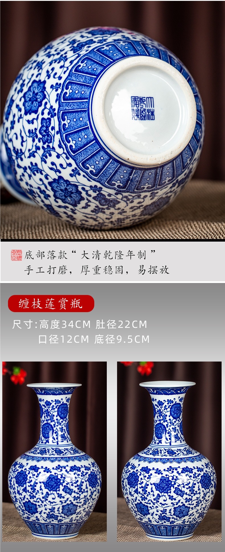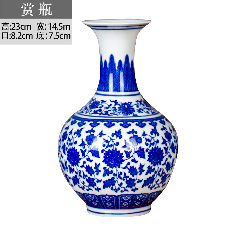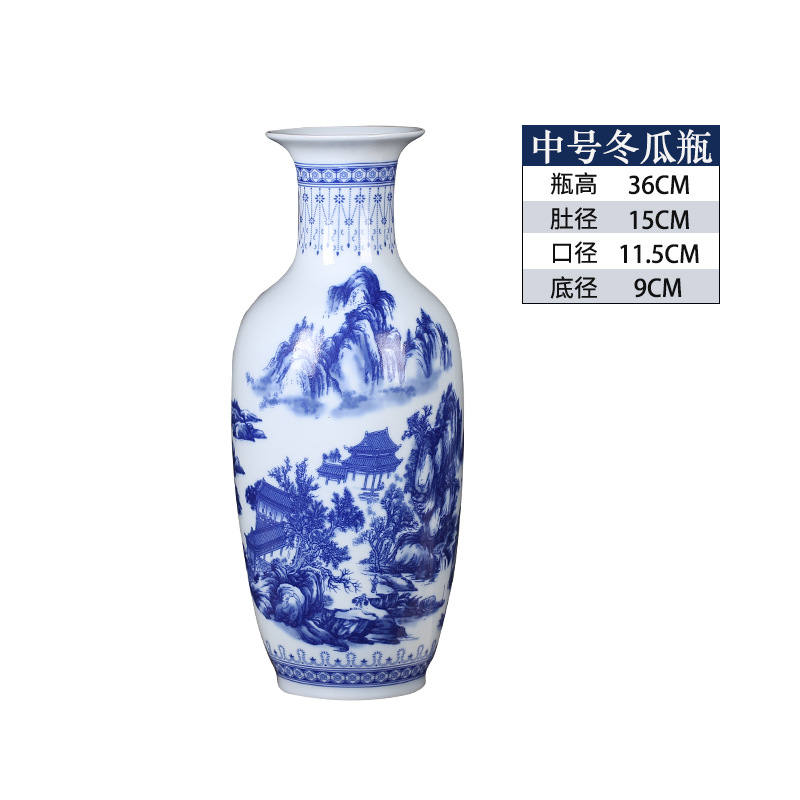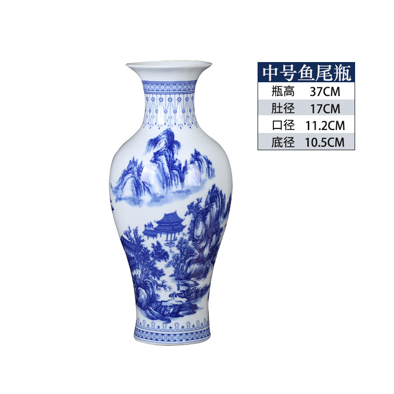 Jingdezhen 도자기 중국 스타일 파란색과 흰색 도자기 꽃병 거실 풍부한 대나무 입구 꽃 장식품스토어 가기