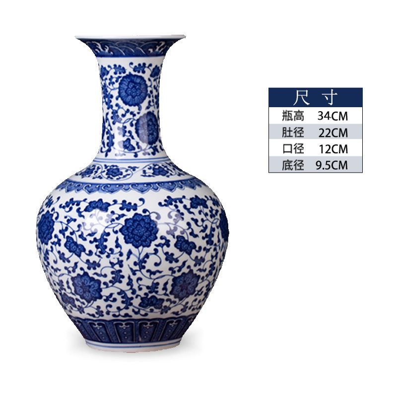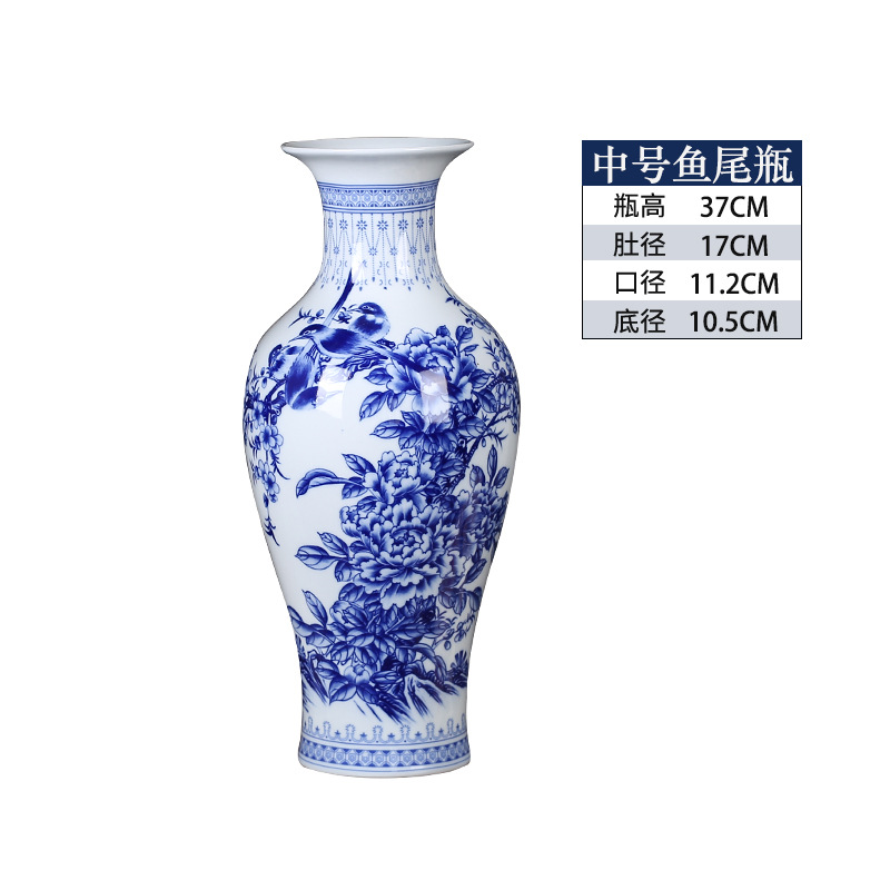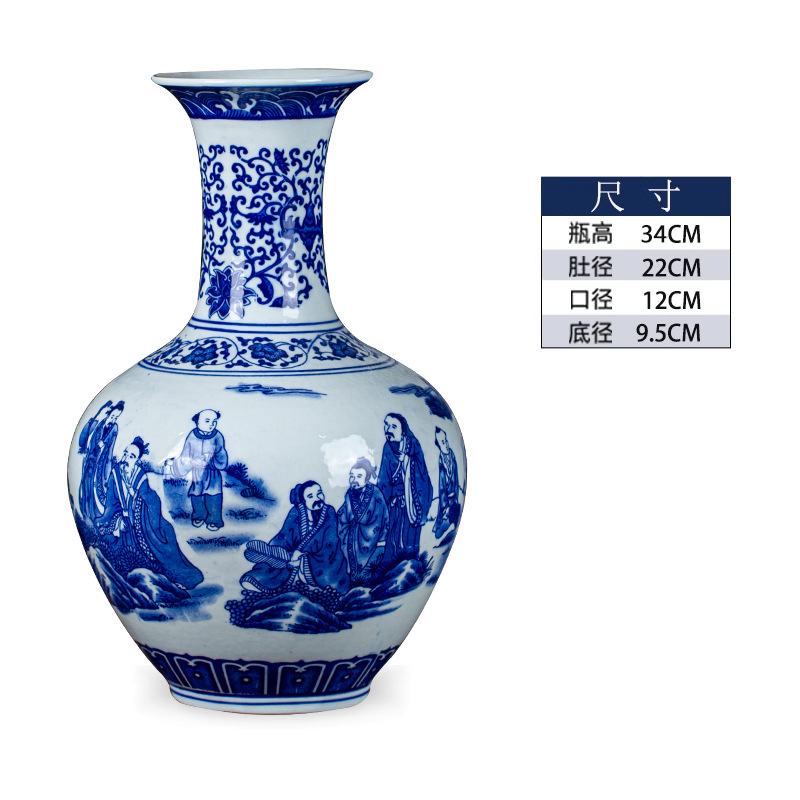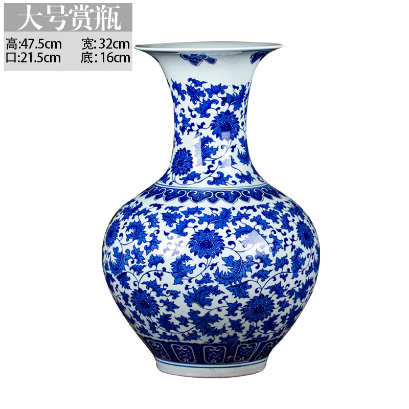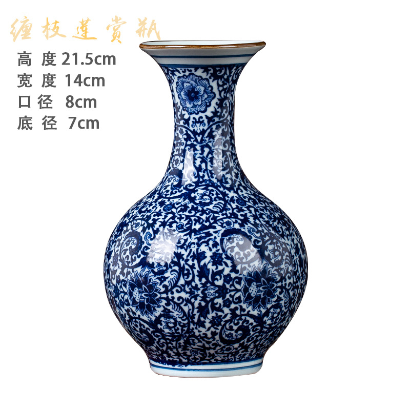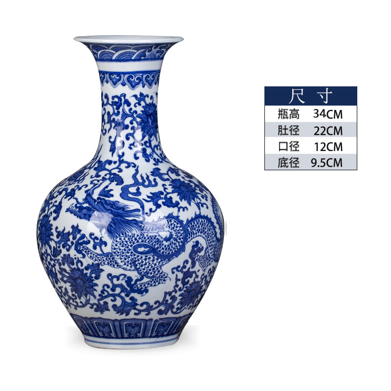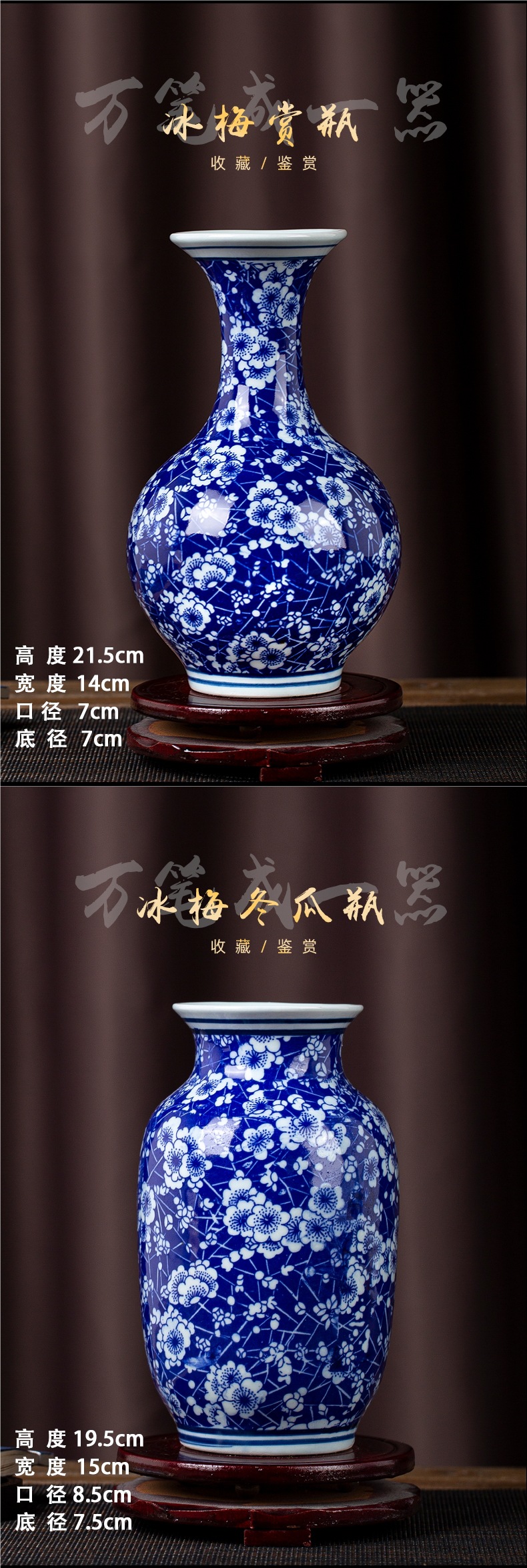 Jingdezhen 도자기 중국 스타일 파란색과 흰색 도자기 꽃병 거실 풍부한 대나무 입구 꽃 장식품스토어 가기
