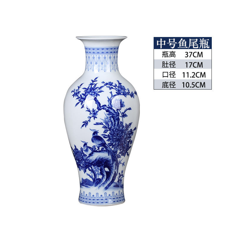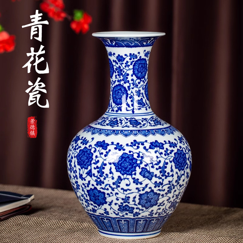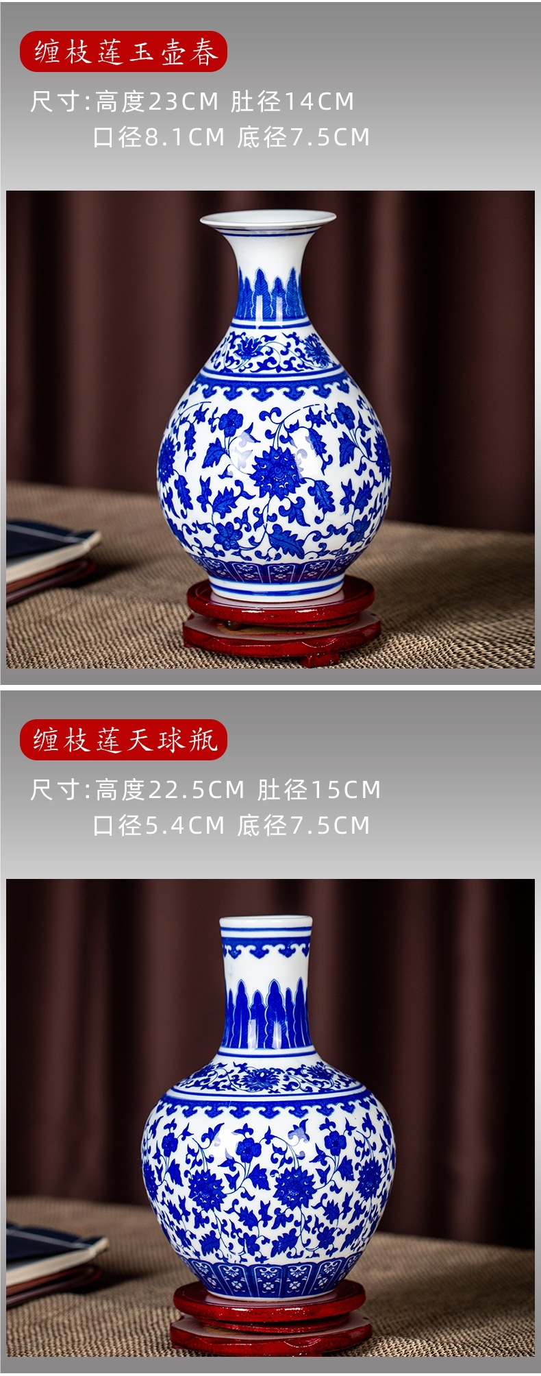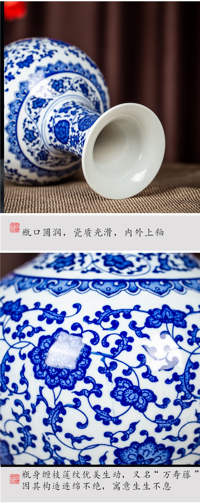 Jingdezhen 도자기 중국 스타일 파란색과 흰색 도자기 꽃병 거실 풍부한 대나무 입구 꽃 장식품