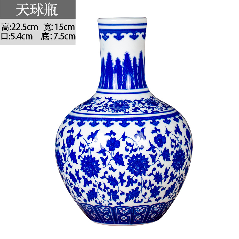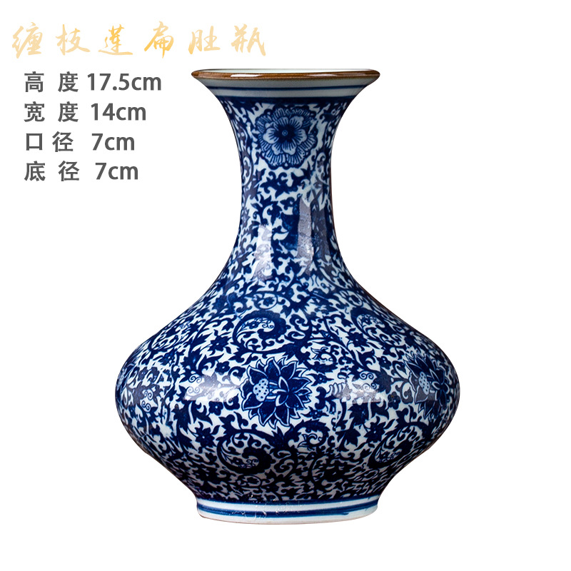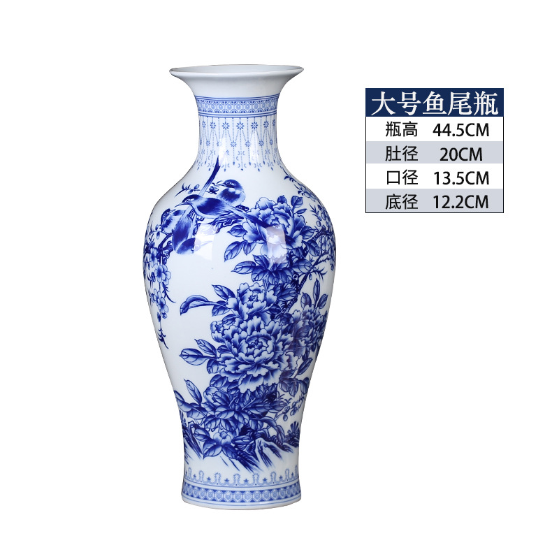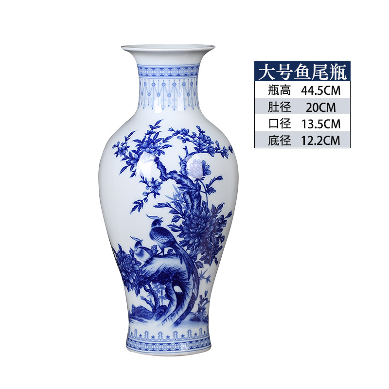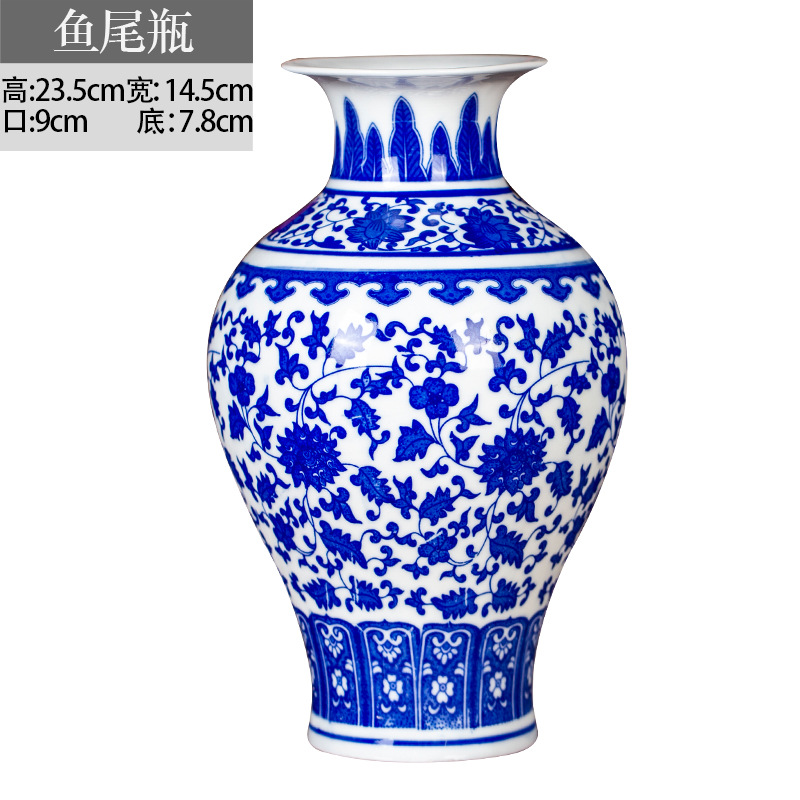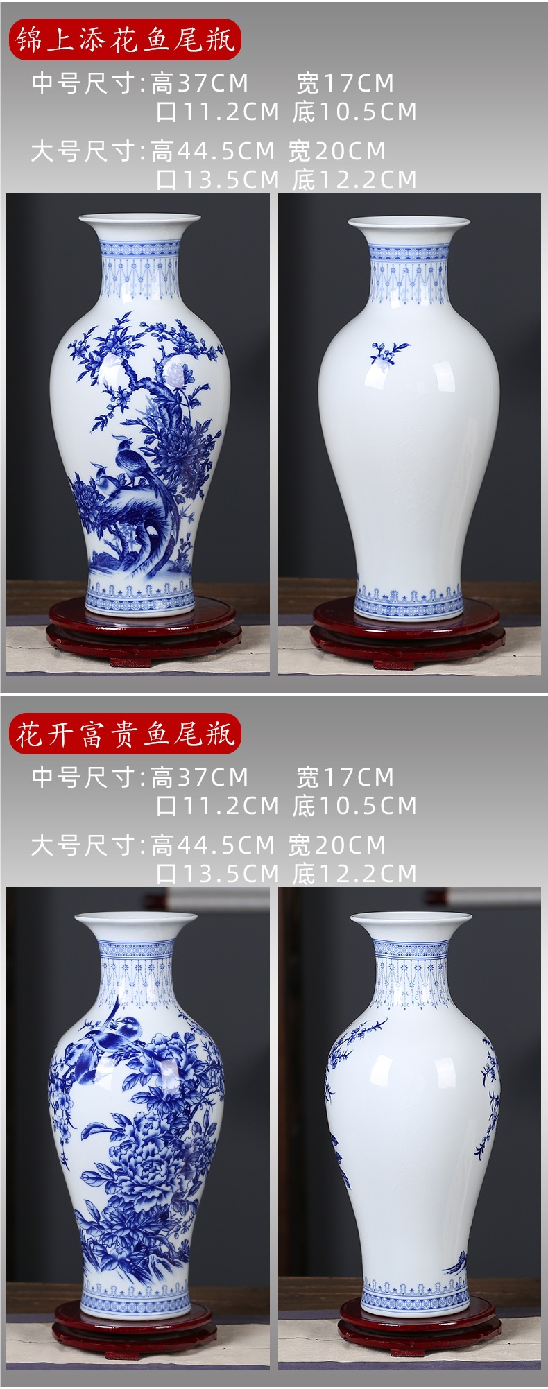 Jingdezhen 도자기 중국 스타일 파란색과 흰색 도자기 꽃병 거실 풍부한 대나무 입구 꽃 장식품