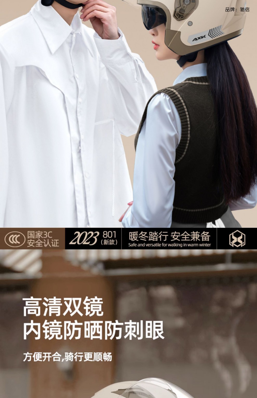 • 밀키 화이트 GT [이중 거울 + 고화질 김서림 방지 + 탈착식 스카프] 새로운 국가 표준 클래스 A GB811-2022