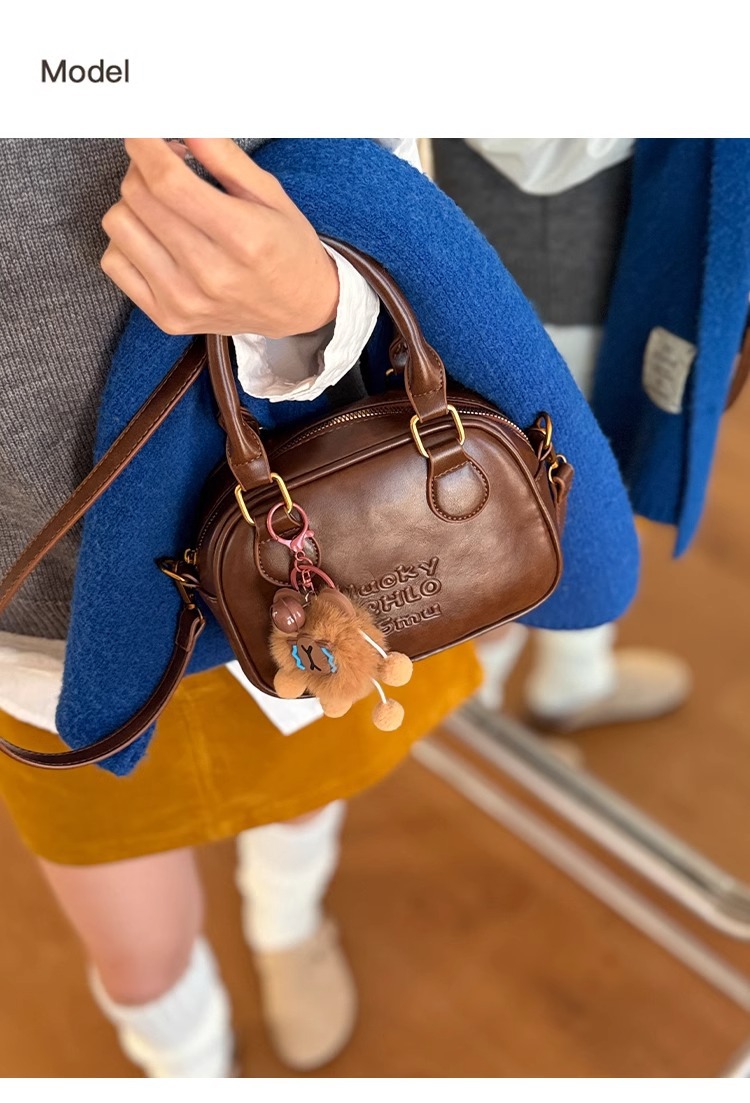 니치 빈티지 볼링 백 여성 2025 새로운 봄과 여름 어깨 크로스 바디 백 고급 질감 다크 브라운 핸드백스토어 가기