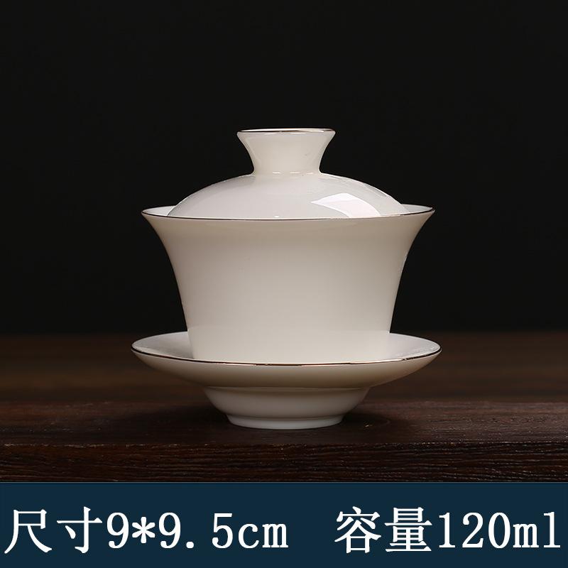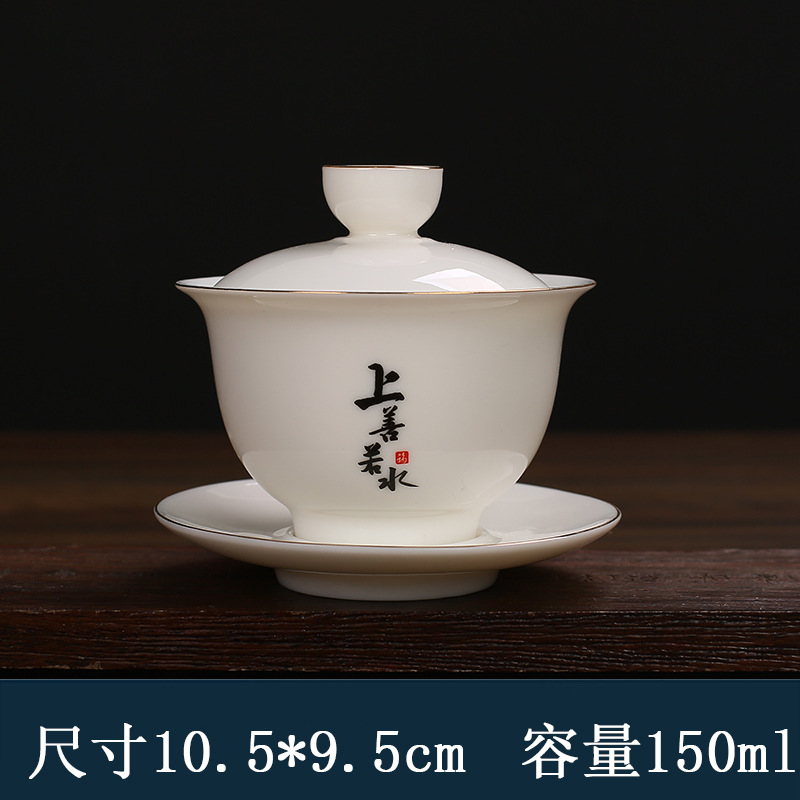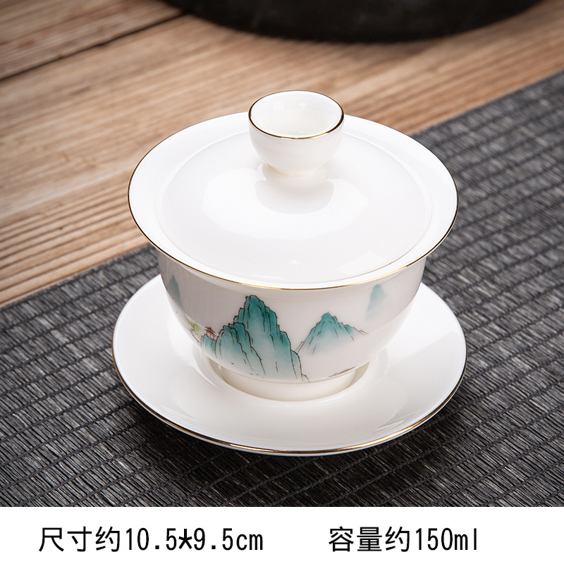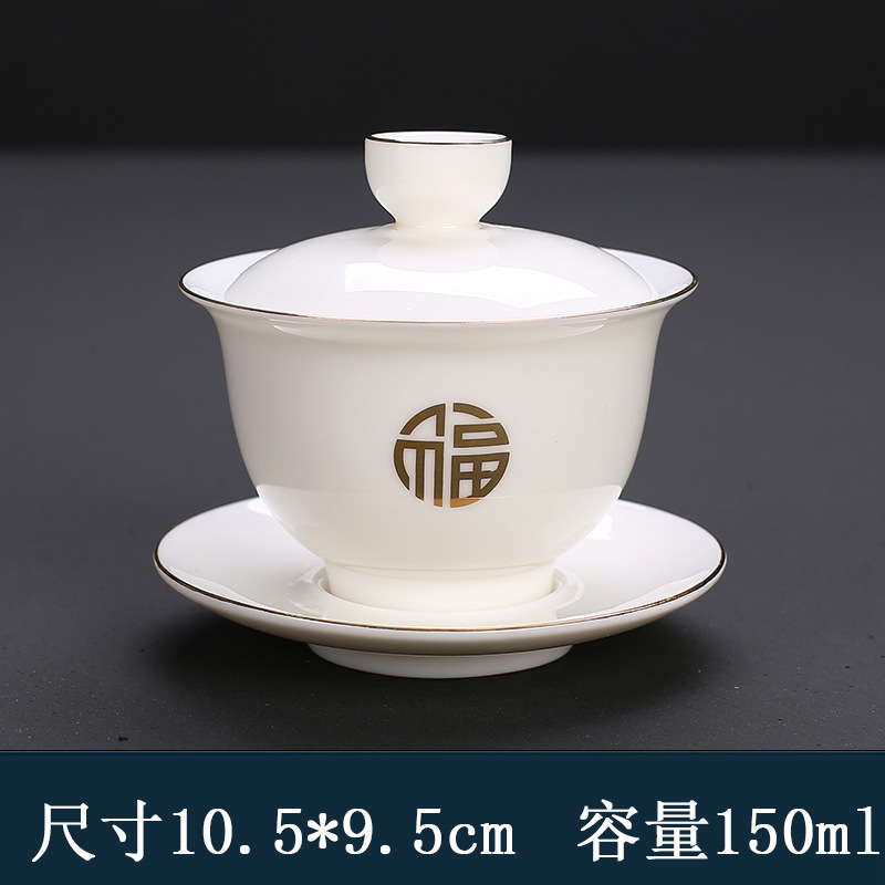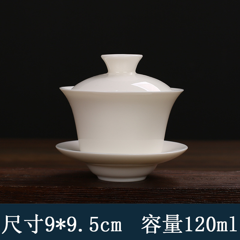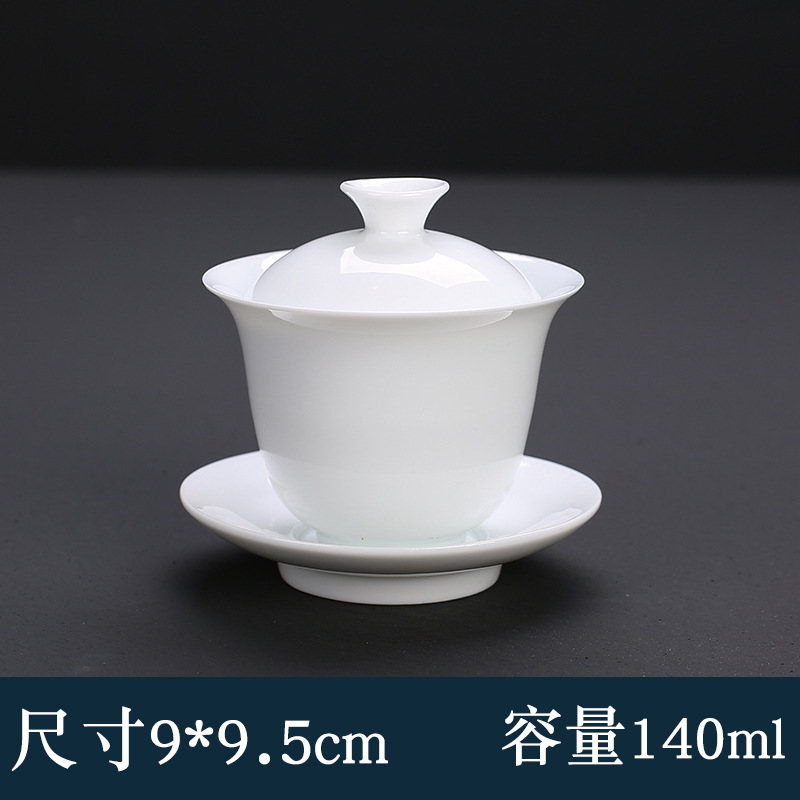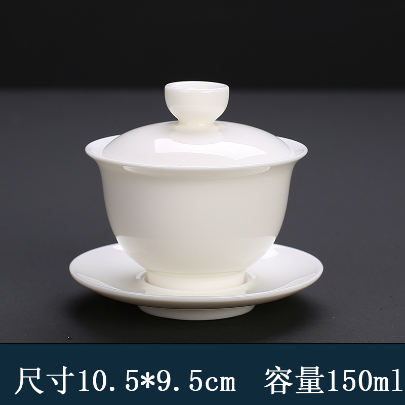티 보울 매트 제이드 커버 보울 티 컵 세라믹 싱글 대형 쿵푸 3 인재 보울 화이트 도자기 차 그릇 차 세트
