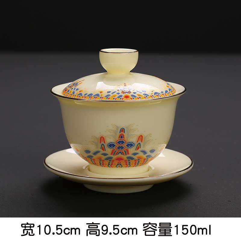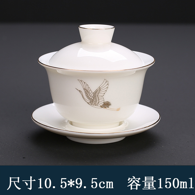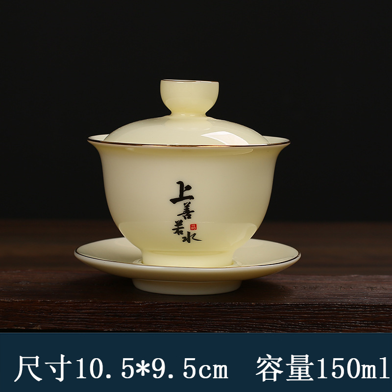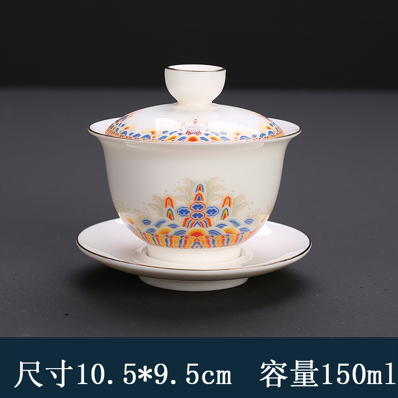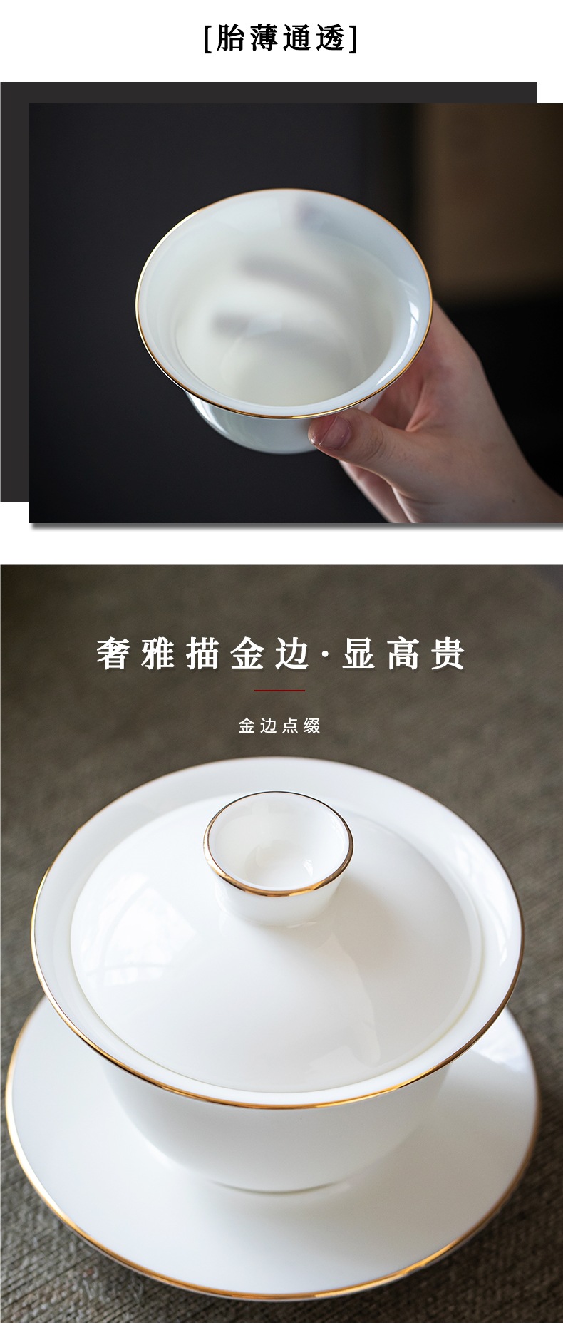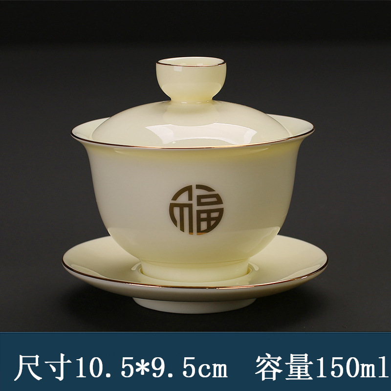 티 보울 매트 제이드 커버 보울 티 컵 세라믹 싱글 대형 쿵푸 3 인재 보울 화이트 도자기 차 그릇 차 세트