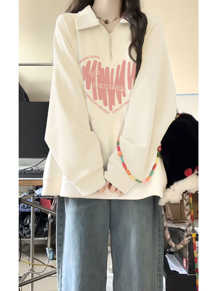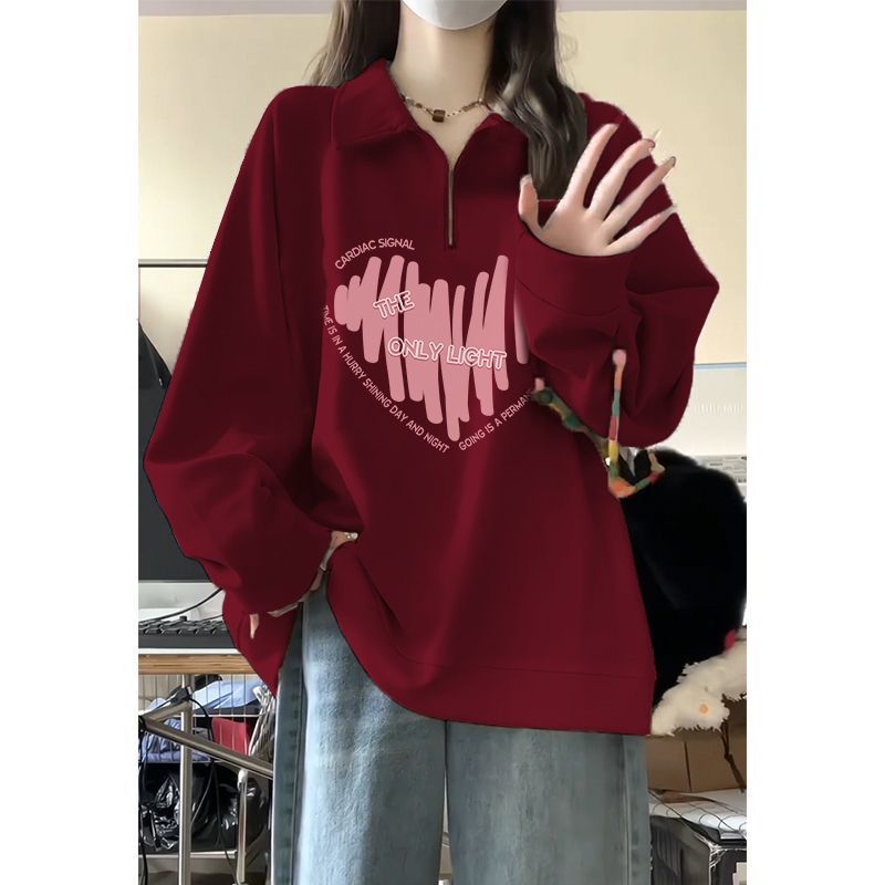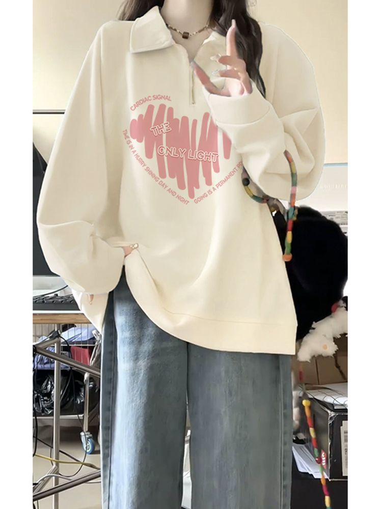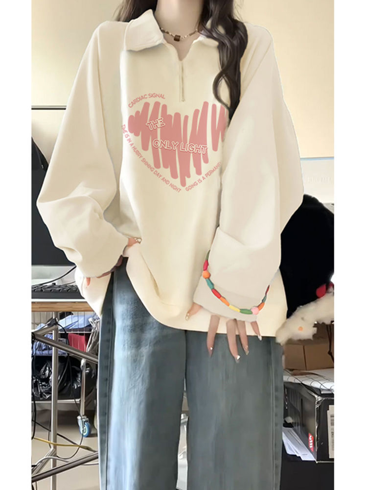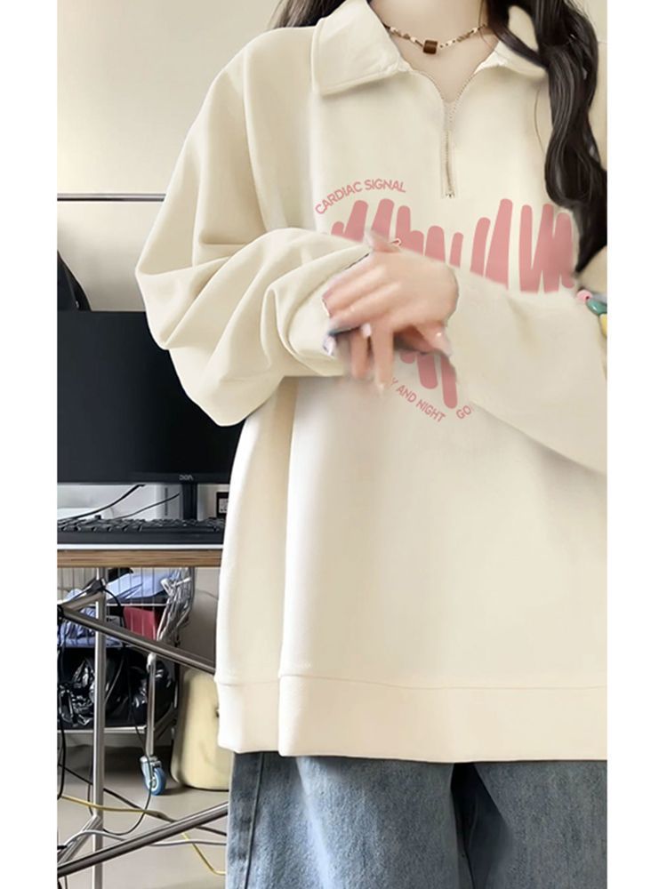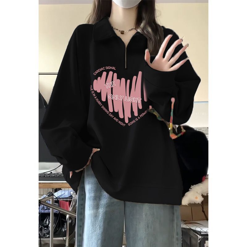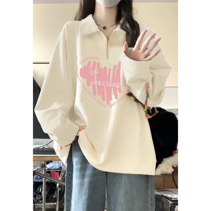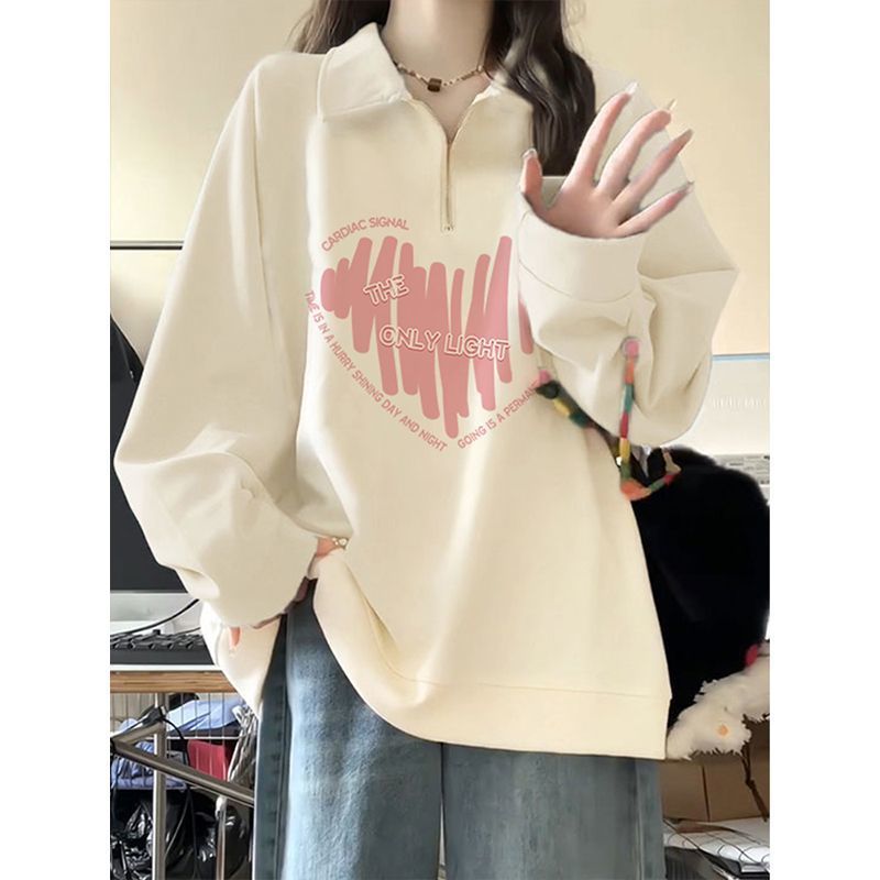 어깨 폴로 칼라 스웨트 셔츠 여성의 봄과 가을 2024 새로운 폭발 작은 게으른 스타일 세련된 이른 봄 코트스토어 가기