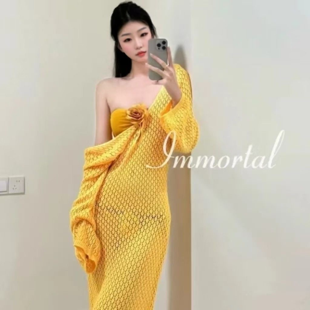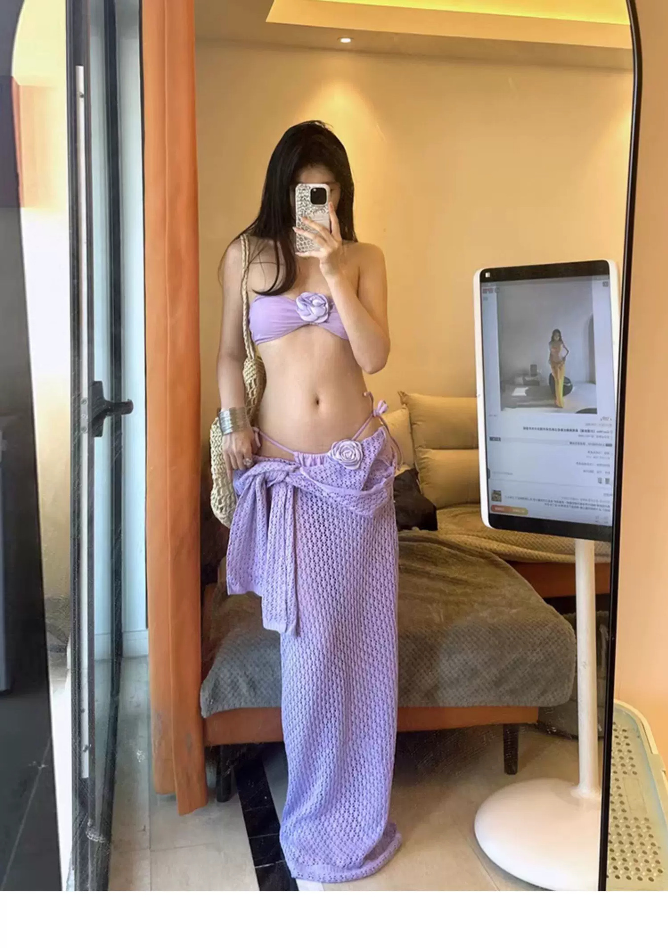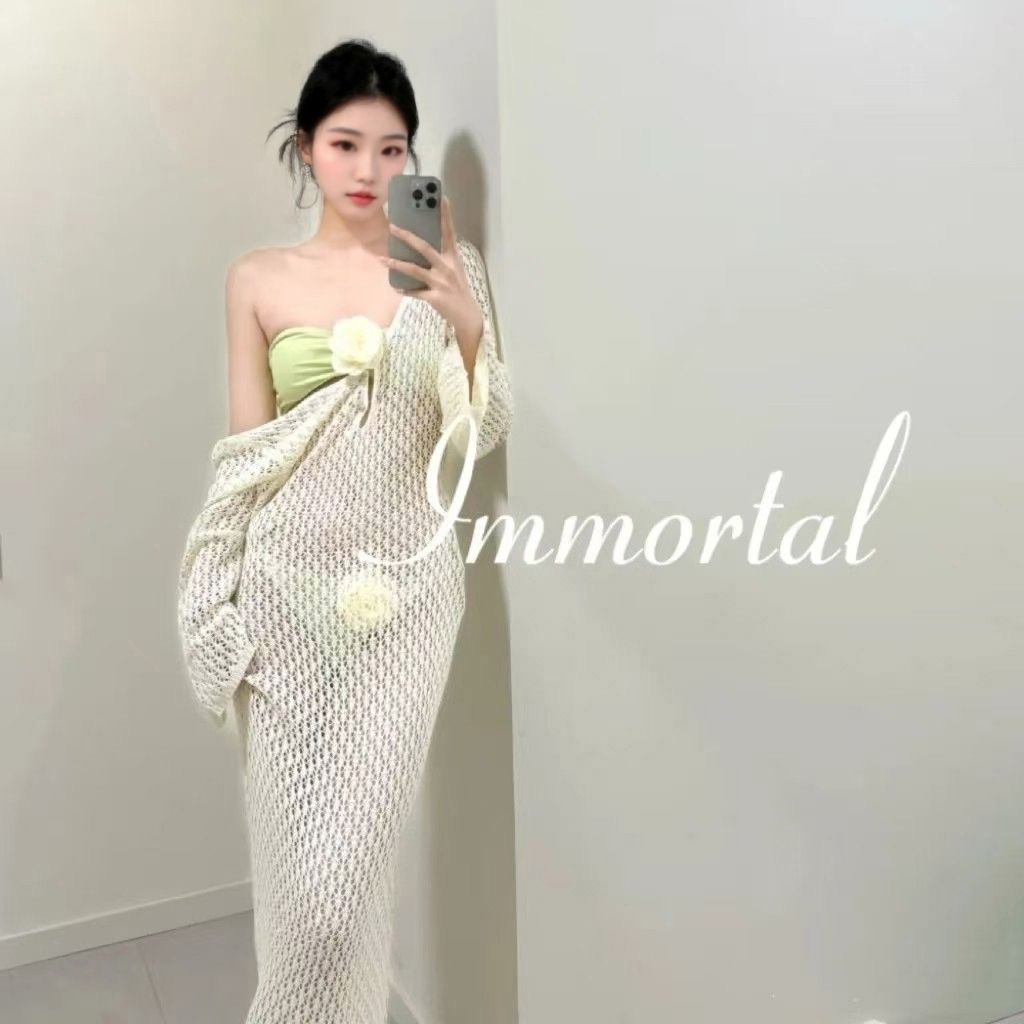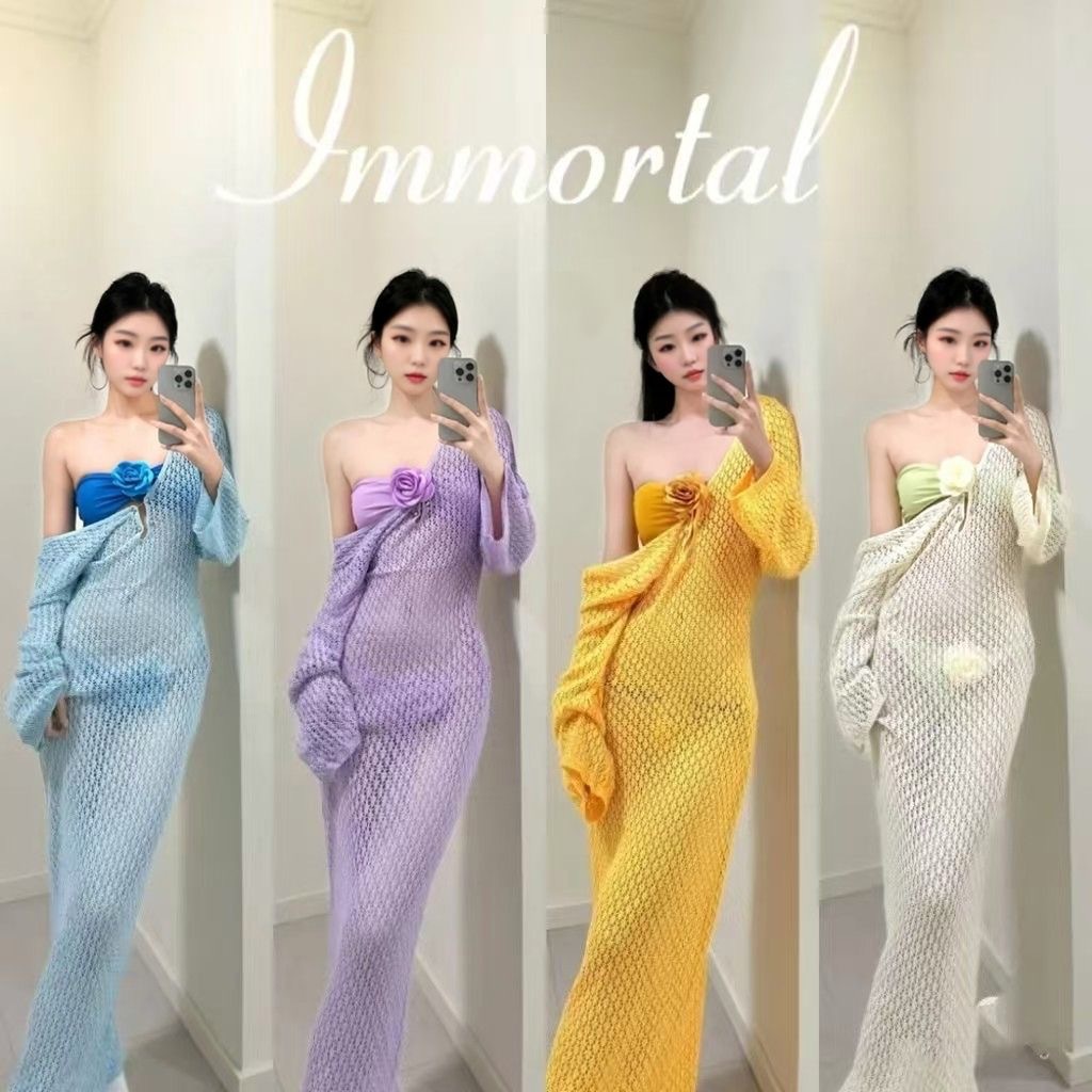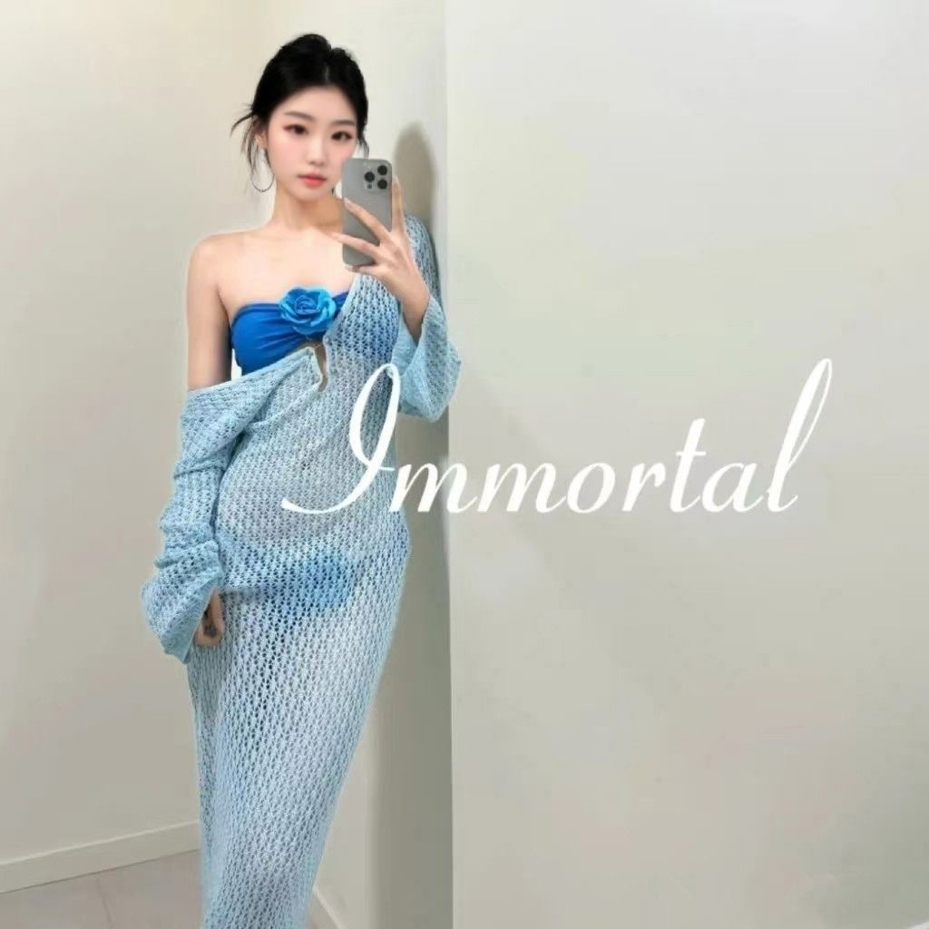 수영복 여성 여름 새 스타일 아름다운 보라색 순수한 섹시한 튜브 탑 비키니 홀리데이 스타일 긴 원피스 여성용 긴 원피스스토어 가기
