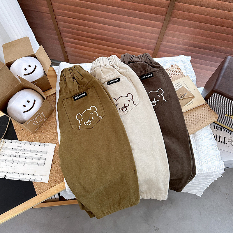 어린이 면화 바지 봄과 여름 2025 새로운 소년 소녀 한국 느슨한 캐주얼 바지 어린이 서양식 올 매치 바지스토어 가기