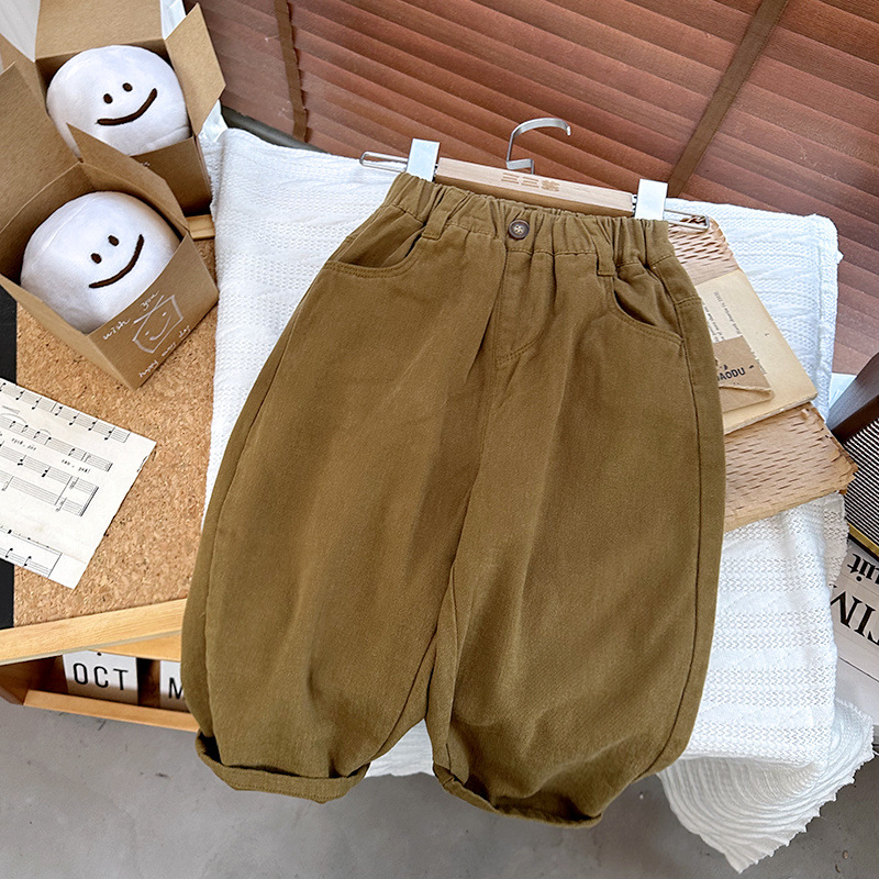 어린이 면화 바지 봄과 여름 2025 새로운 소년 소녀 한국 느슨한 캐주얼 바지 어린이 서양식 올 매치 바지