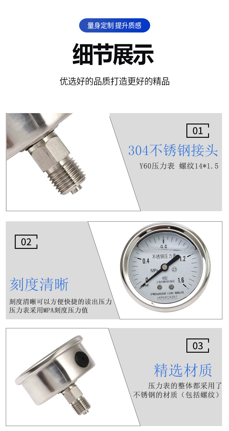 304 스테인레스 스틸 축 지진 압력 게이지 YN60BFZ 압력 게이지 수압 게이지 오일 압력 게이지 유압 압력 게이지 증기 게이지스토어 가기