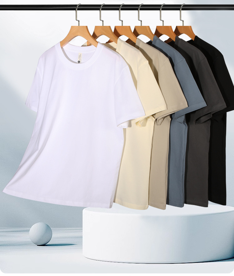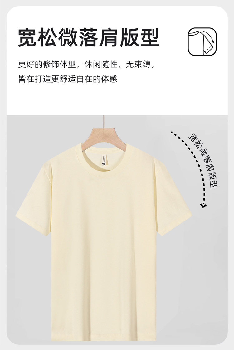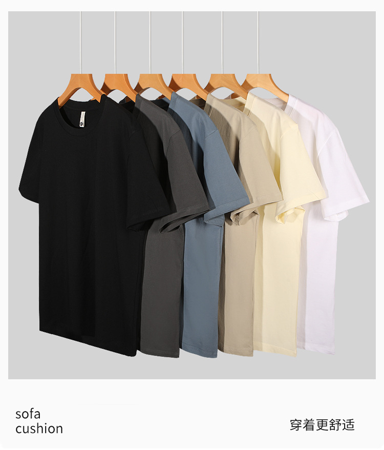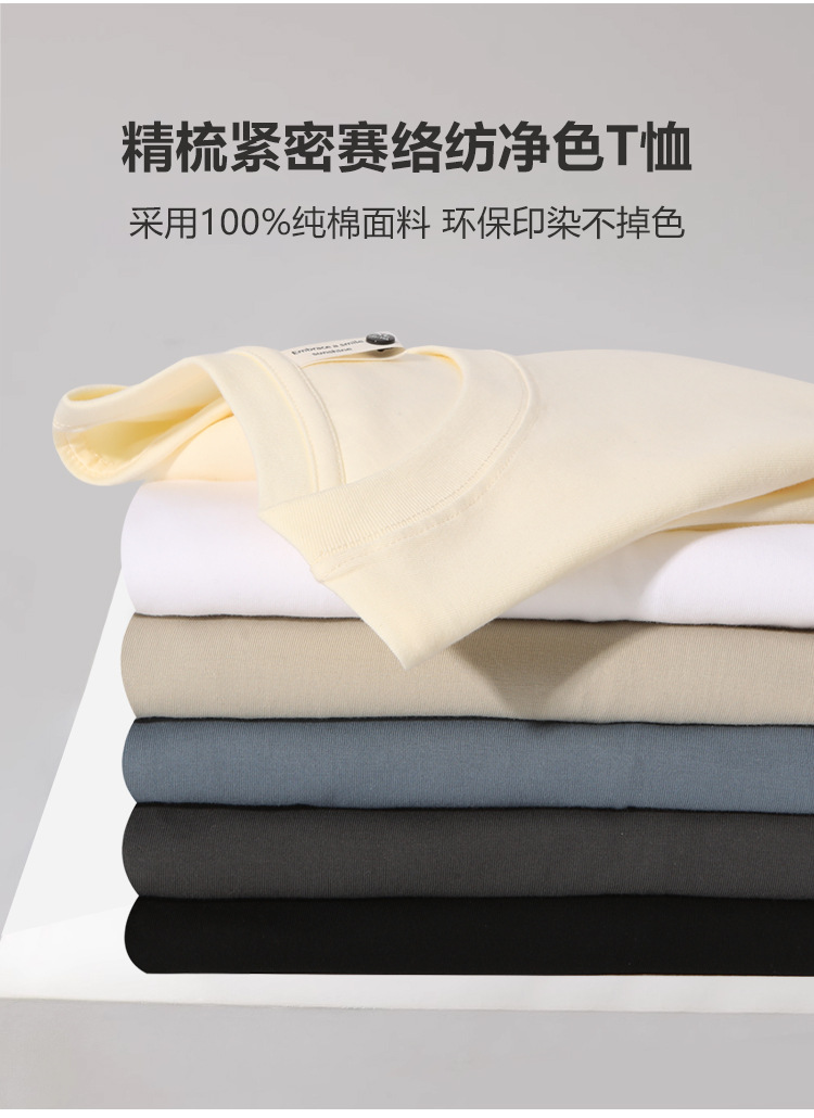 새로운 230g 타이트 남성과 여성의 반팔 티셔츠 솔리드 컬러 코튼 와이드 루즈 숄더 라운드 넥 캐주얼 반소매 베이스 셔츠