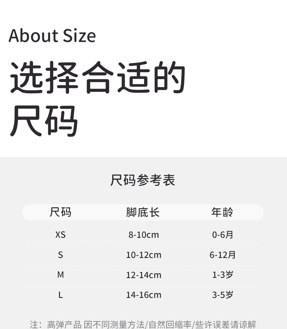 • XS(발 길이 7-10cm에 적합) 0-6개월