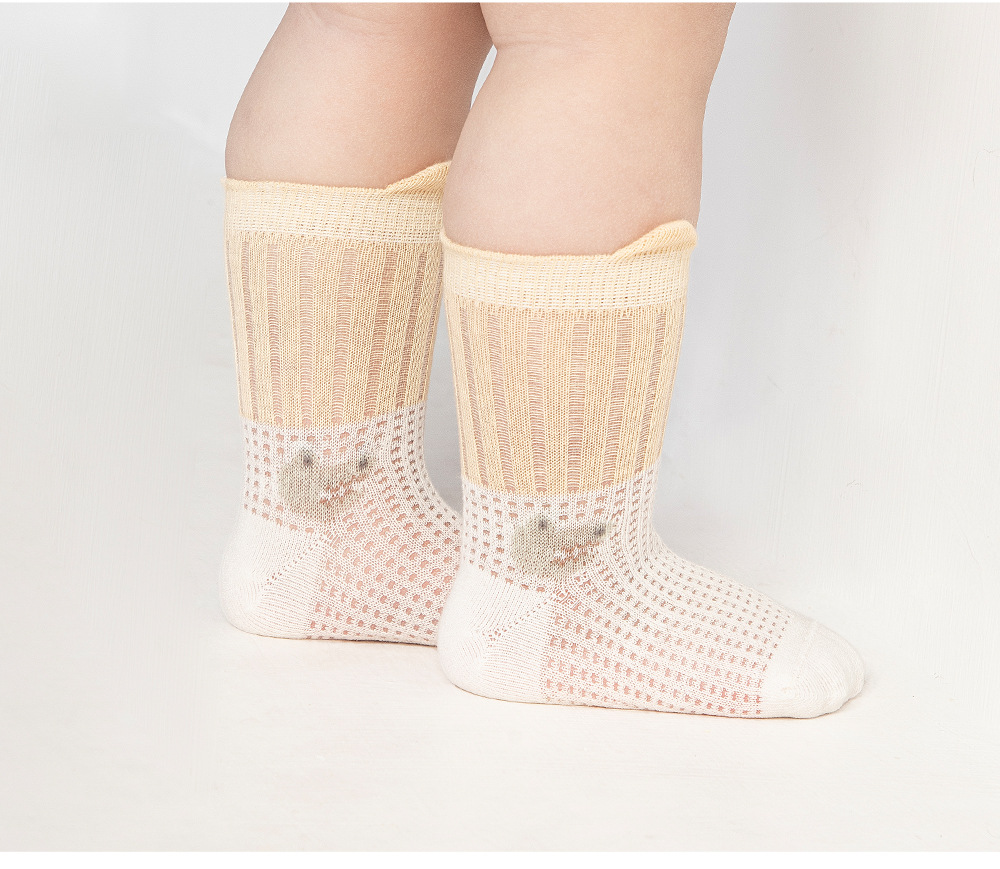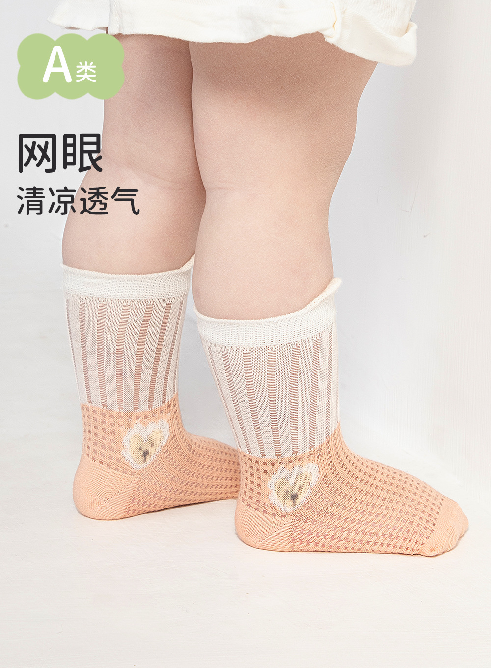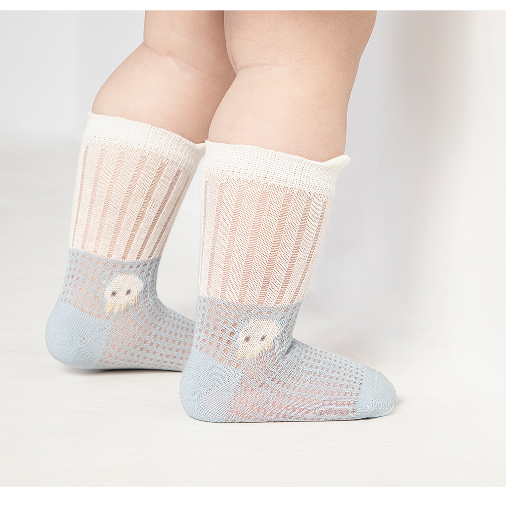 여름용 초박형 신생아 양말 메쉬 통기성 무봉제 아기 양말 귀여운 만화 중간 길이 양말스토어 가기