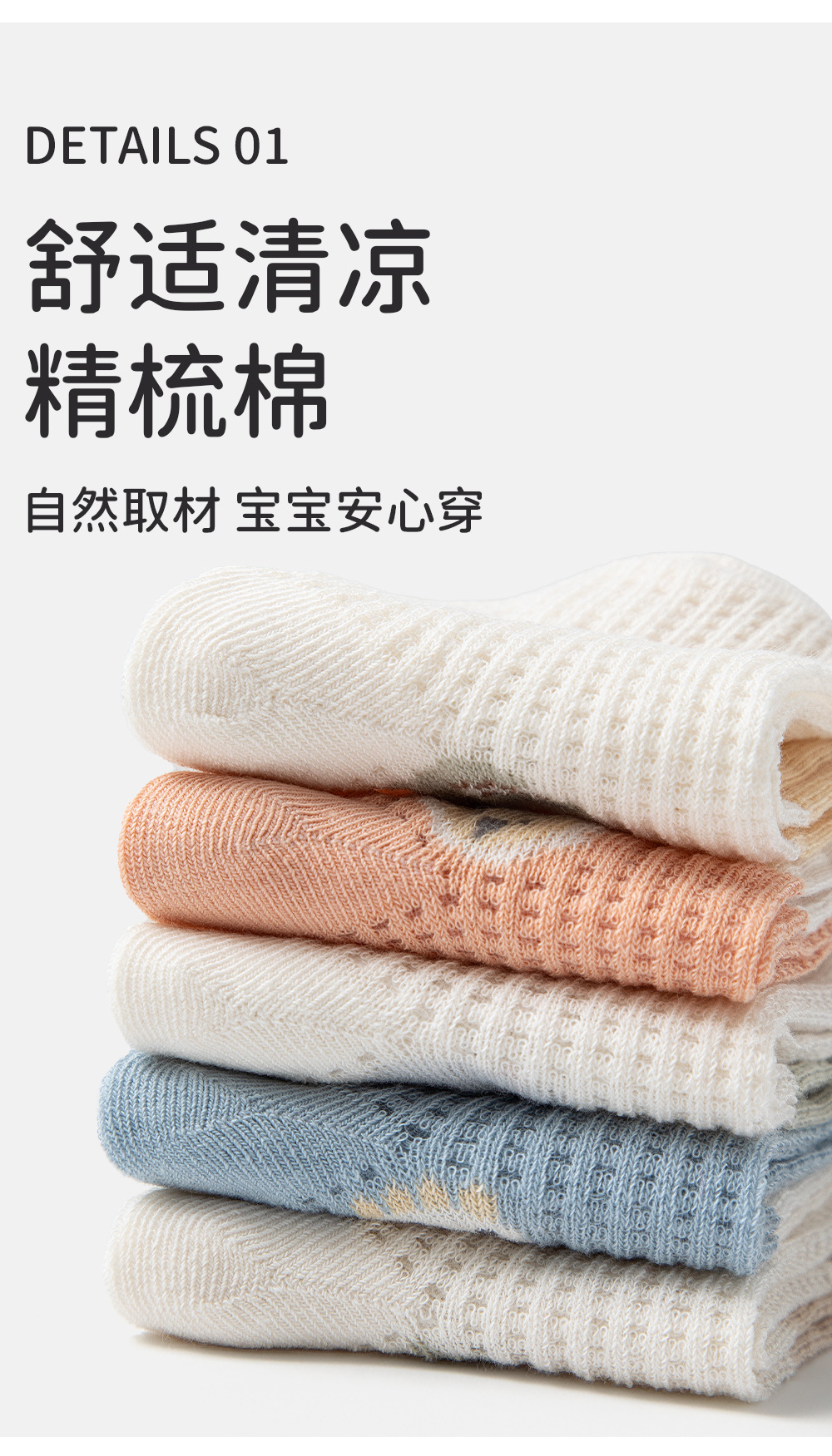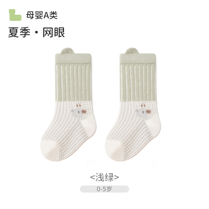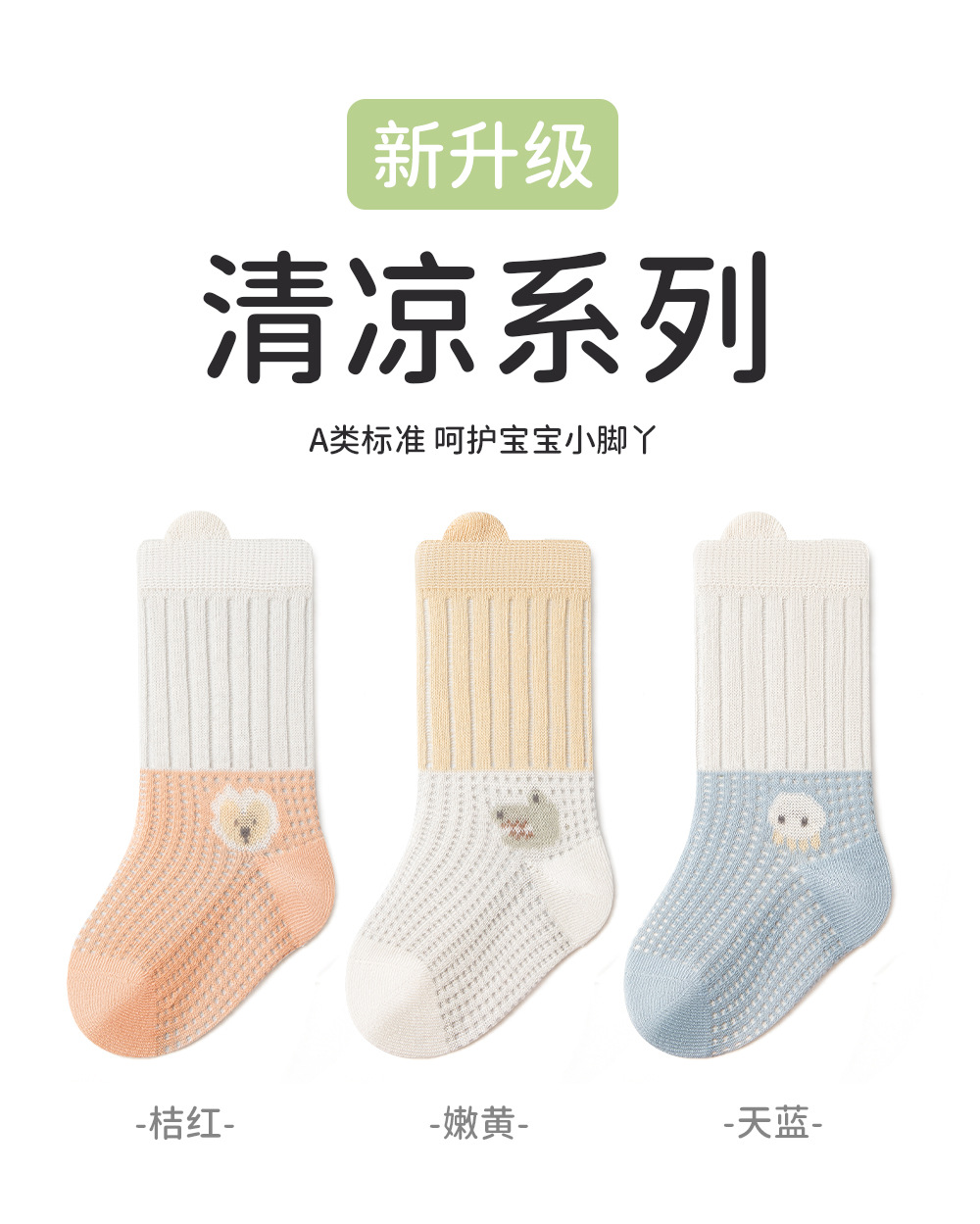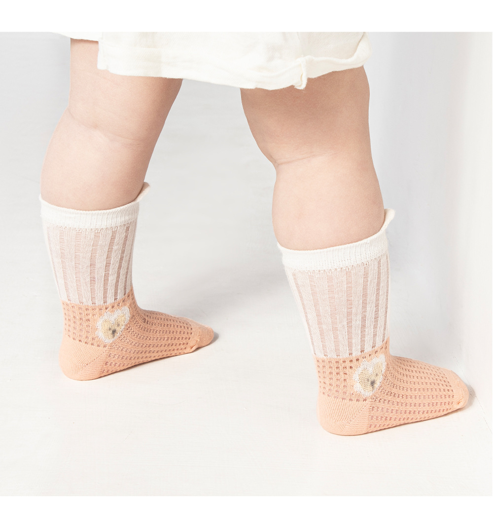 여름용 초박형 신생아 양말 메쉬 통기성 무봉제 아기 양말 귀여운 만화 중간 길이 양말스토어 가기