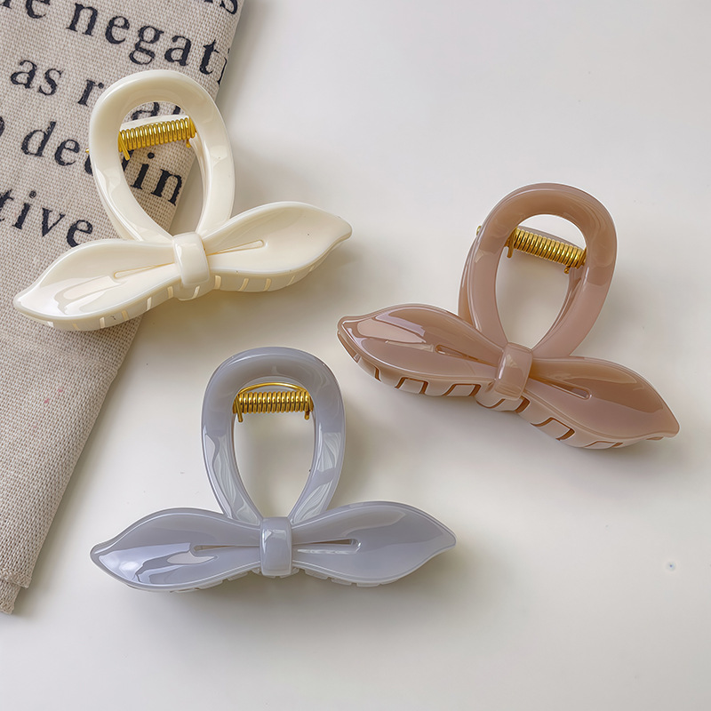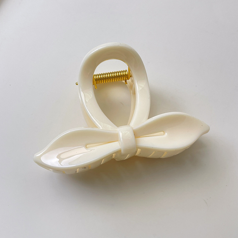봄과 여름 새로운 활 그립 클립 우아한 기질 우유 흰색 헤어 클립 한국 패션 부드러운 상어 클립 여성의 헤어 액세서리스토어 가기