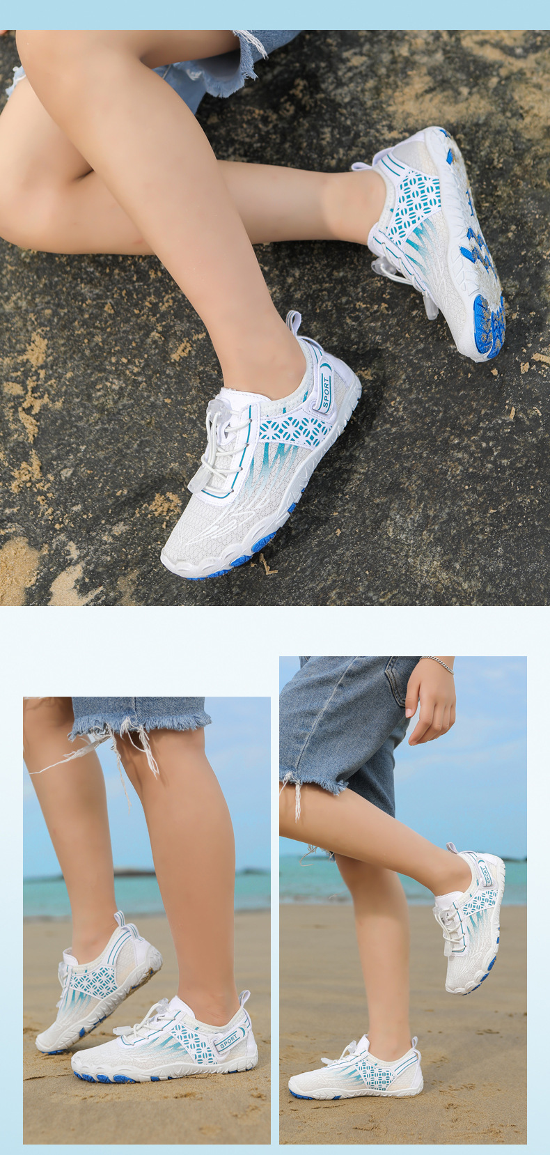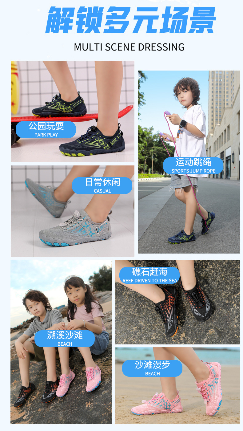 국경 간 어린이 다섯 손가락 추적 신발 통기성 비치 신발 다이빙 신발 야외 미끄럼 방지 컷 맨발 수영화