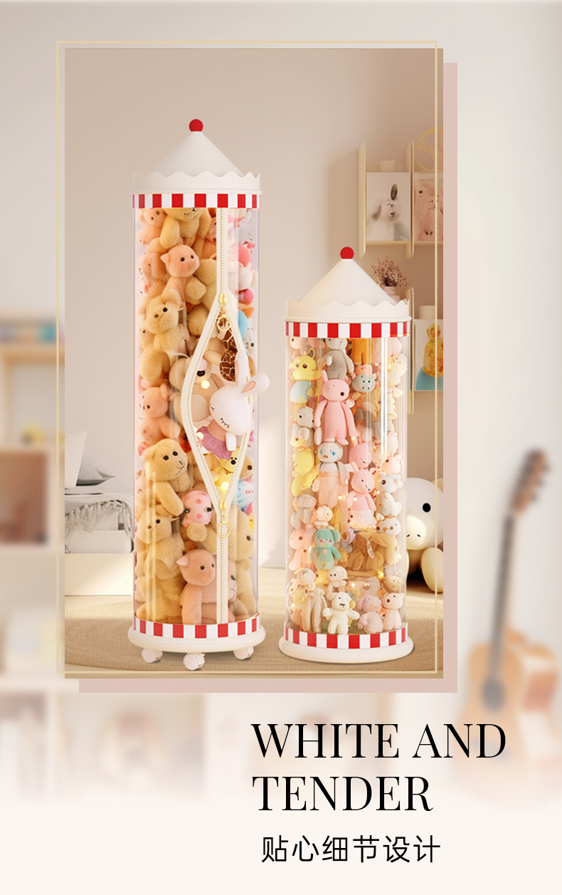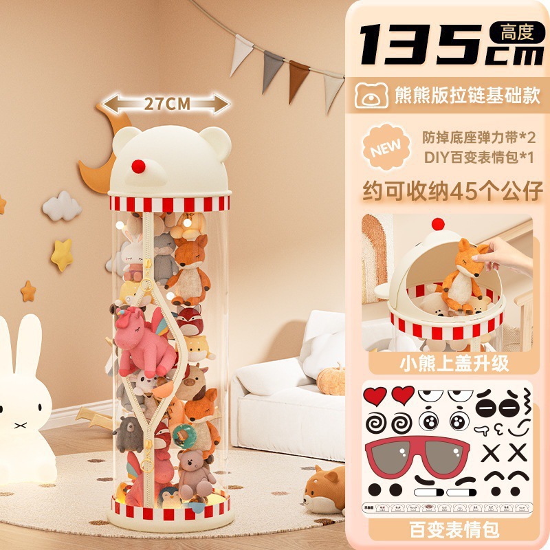 인형 저장 배럴 지퍼 봉제 장난감 투명한 적합 바구니 어린이 인형 인형스토어 가기