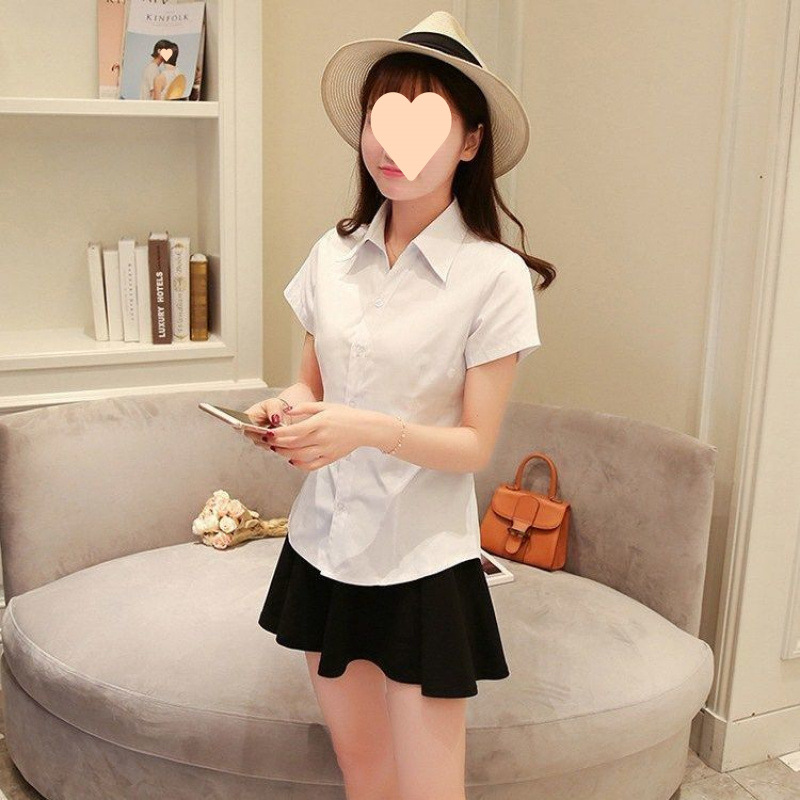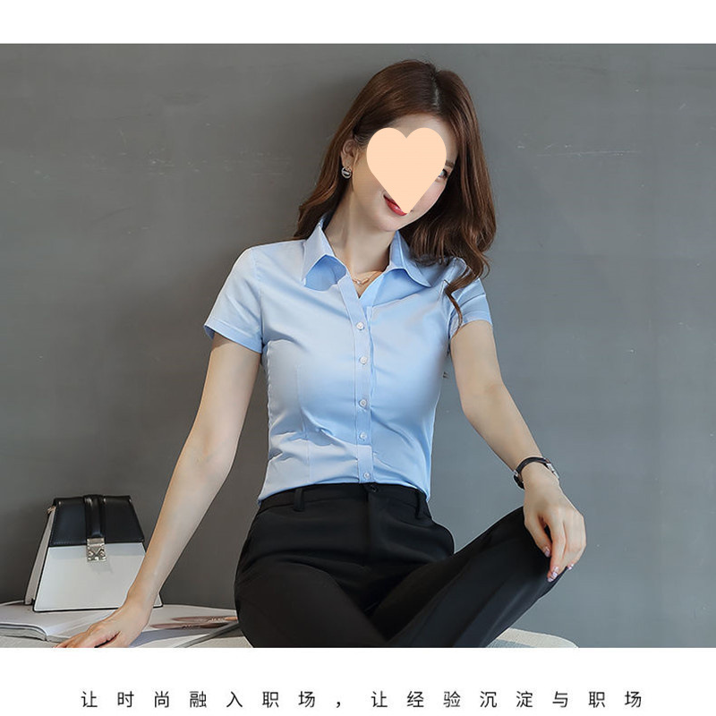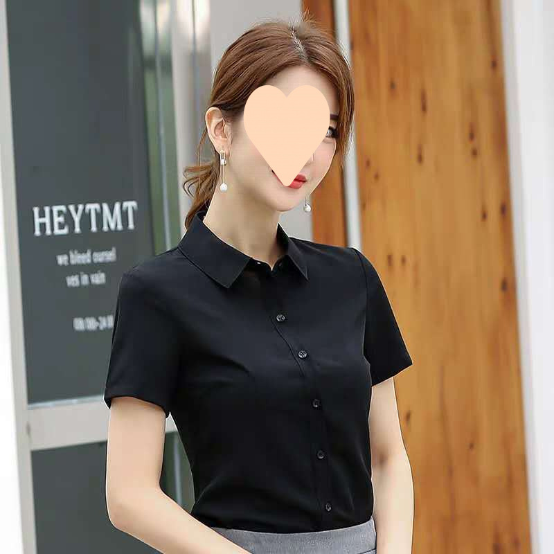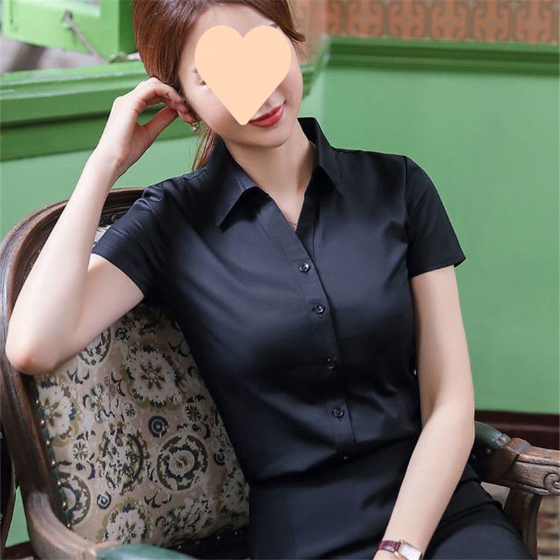 검은 셔츠 여성 여름 반팔 비즈니스 착용 2025 새로운 한국식 슬림핏 슬리밍 베이스 칼라 셔츠 작업복스토어 가기
