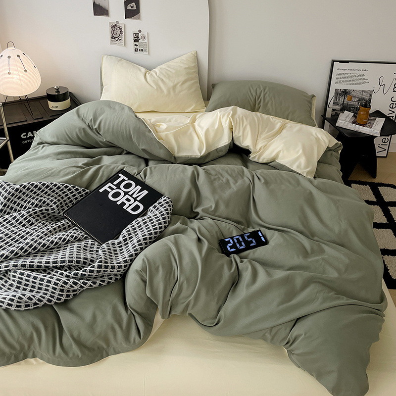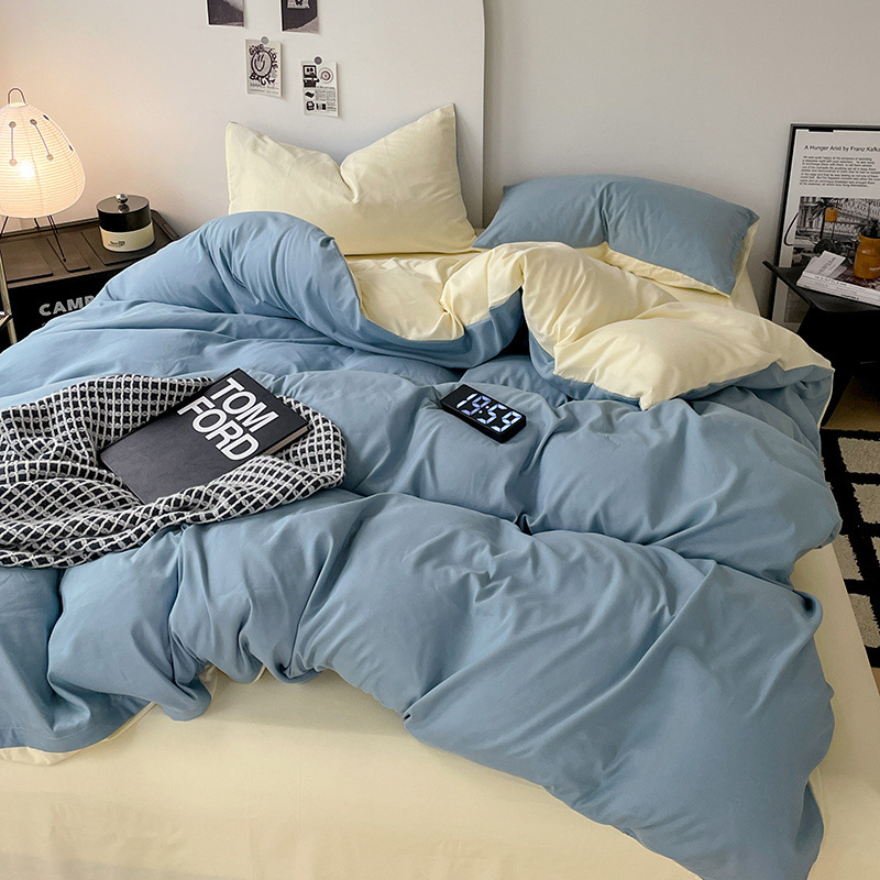 클래스 A 모성 및 유아 학년 슈퍼 부드러운 빨 수있는 샌딩 침대 시트 4 피스 세트 침대 모자 퀼트 커버 학생 기숙사 3 피스 세트 4스토어 가기