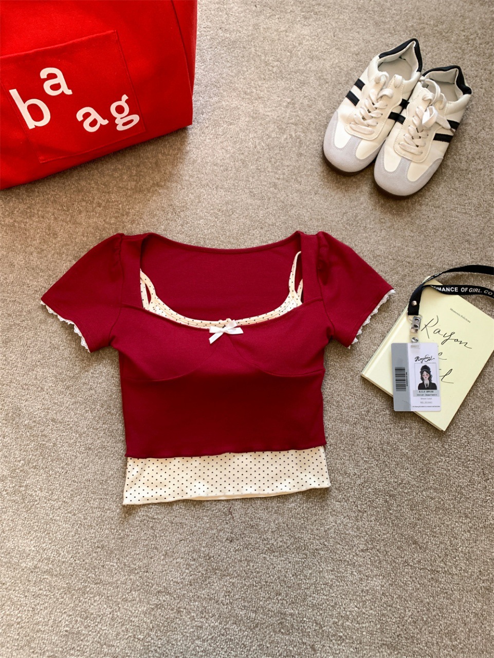 • 레드 투피스 세트 [슬링+반팔]