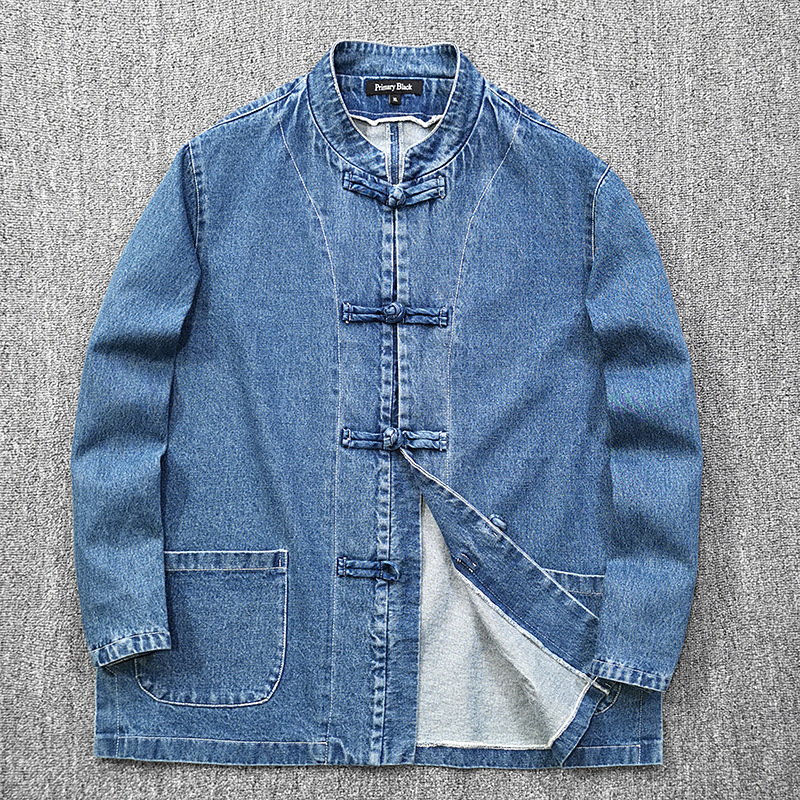 수제 디스크 버클 하이 엔드 세척 가을 남성 캐주얼 데님 재킷, 수직 칼라 올 매치 트렌디 재킷스토어 가기