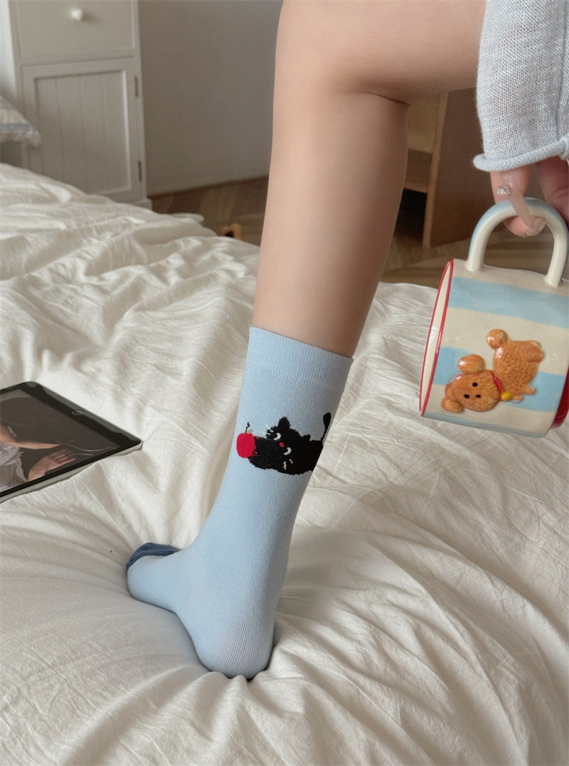한국식 만화 사과 새끼 고양이 양말 여성의 수직 중간 섹션 양말 트렌디 한 일본 스타일 귀여운 대학 스타일 봄 및 가을 양말스토어 가기