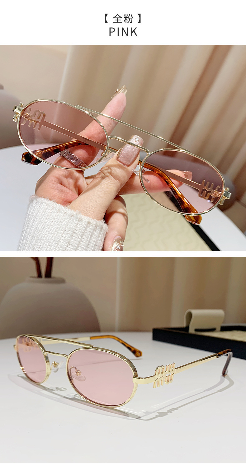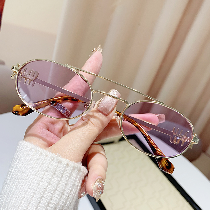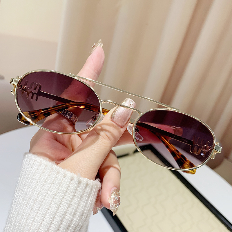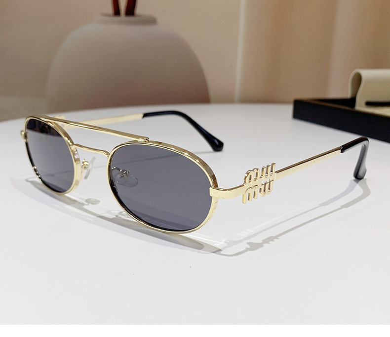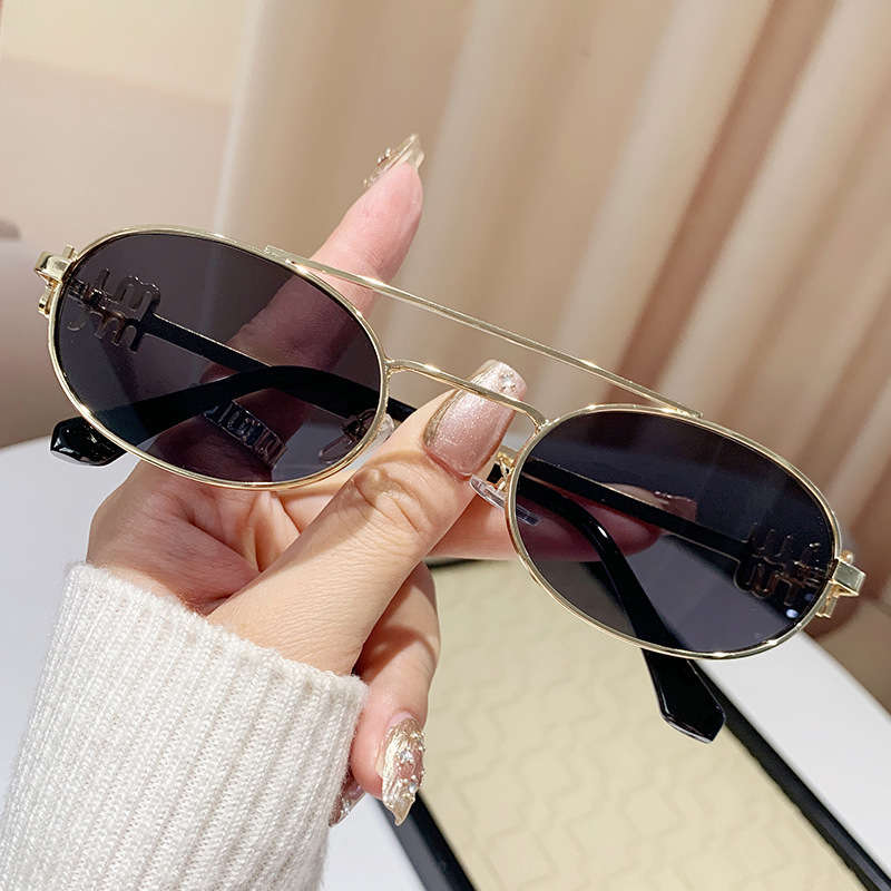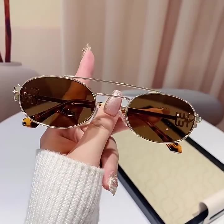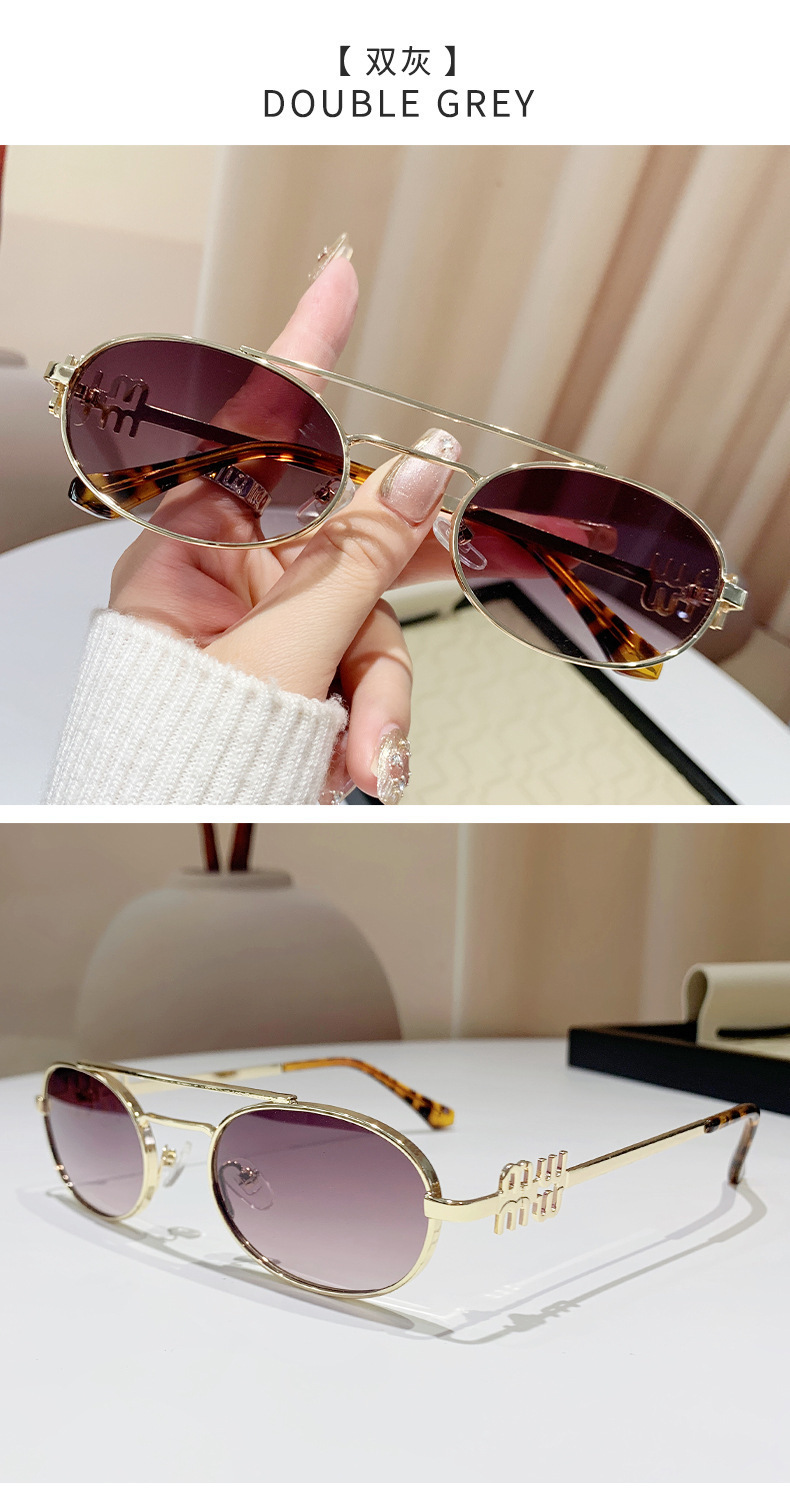 2025년 신형 더블 빔 타원형 선글라스 여성용 패션 만능 메탈 선글라스 고급스러운 미우미우 스타일 선글라스