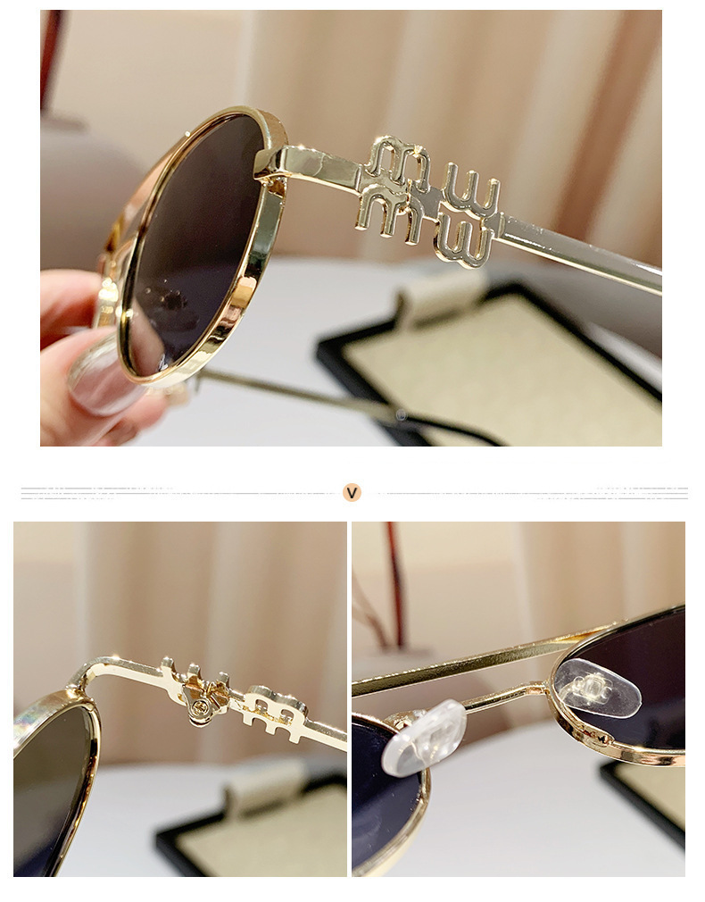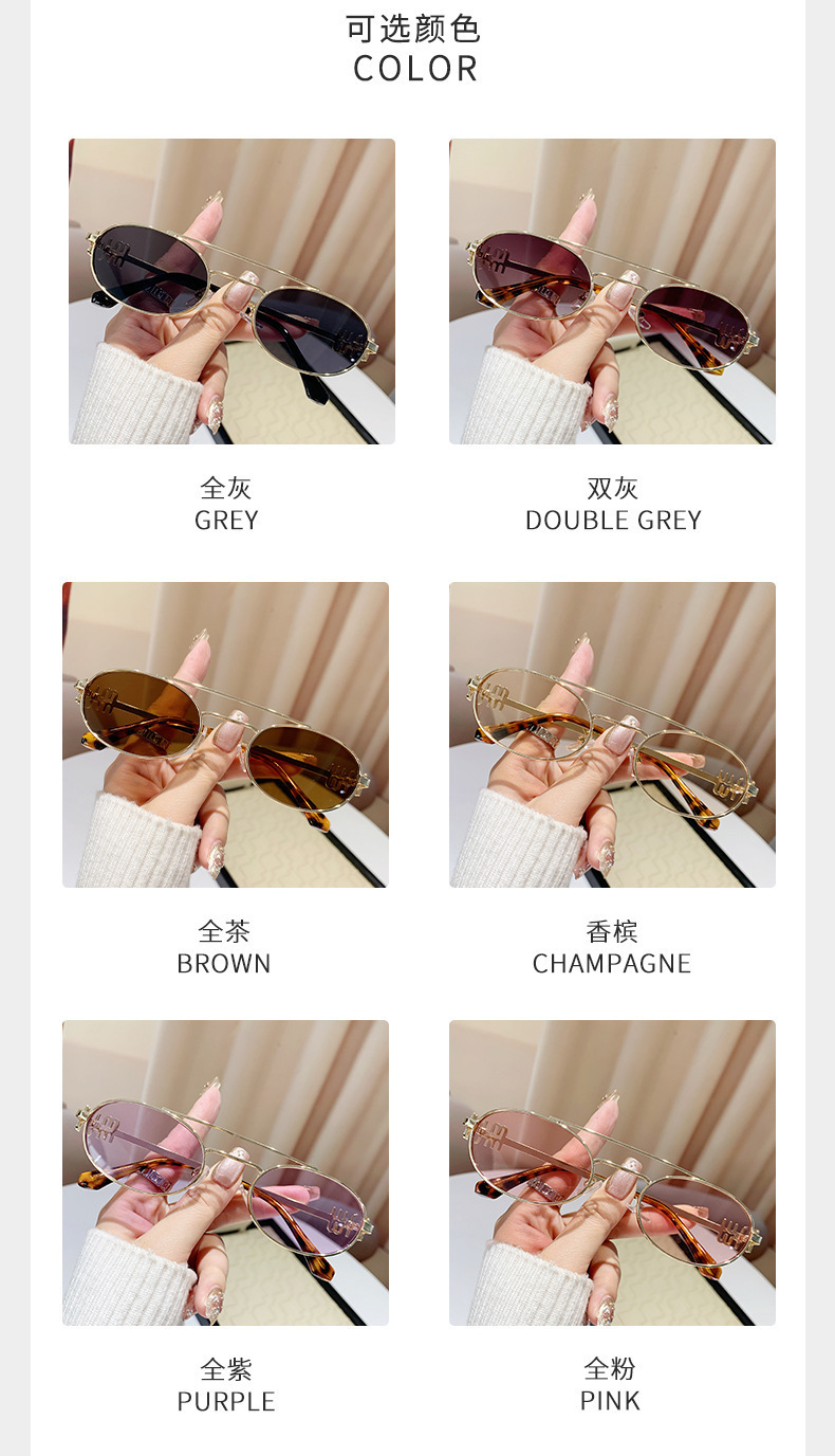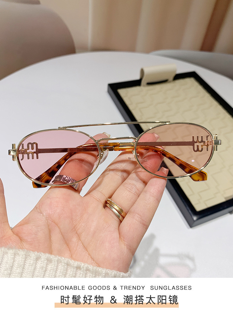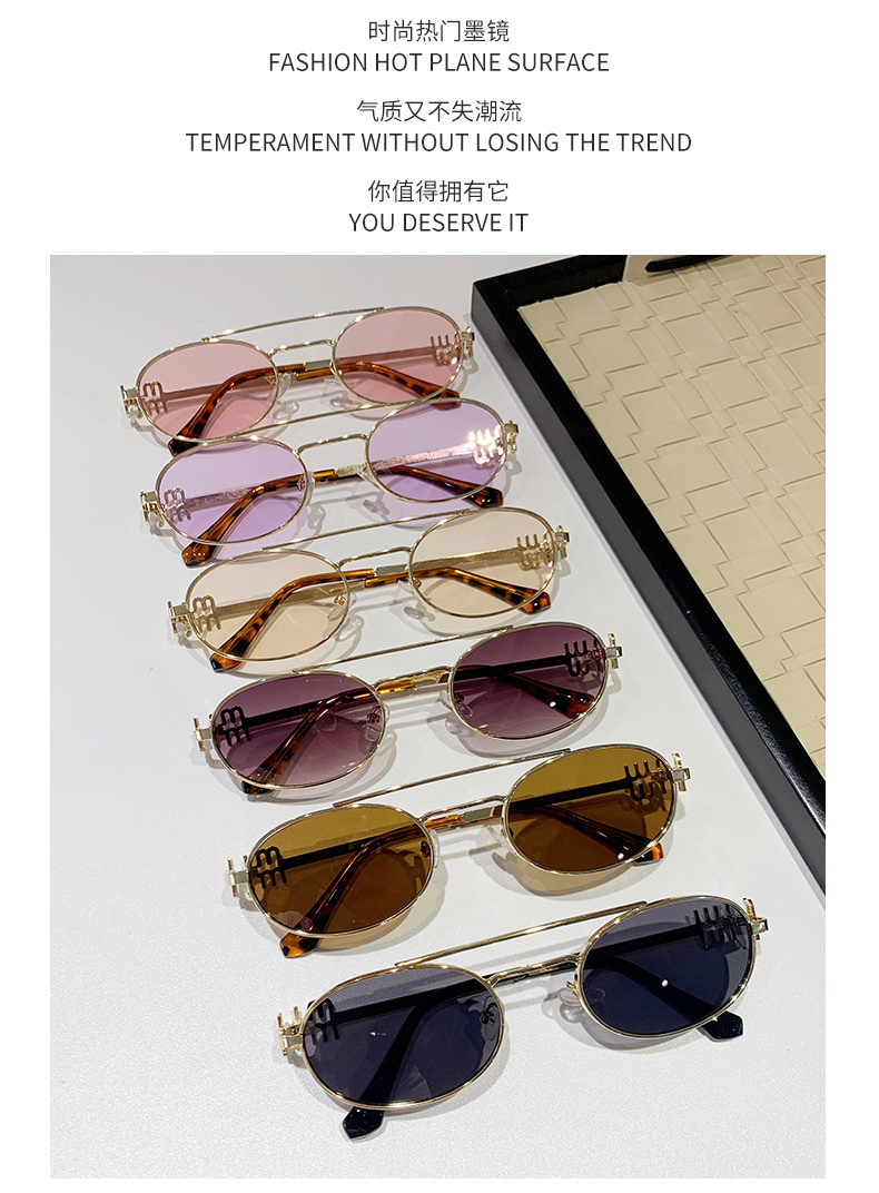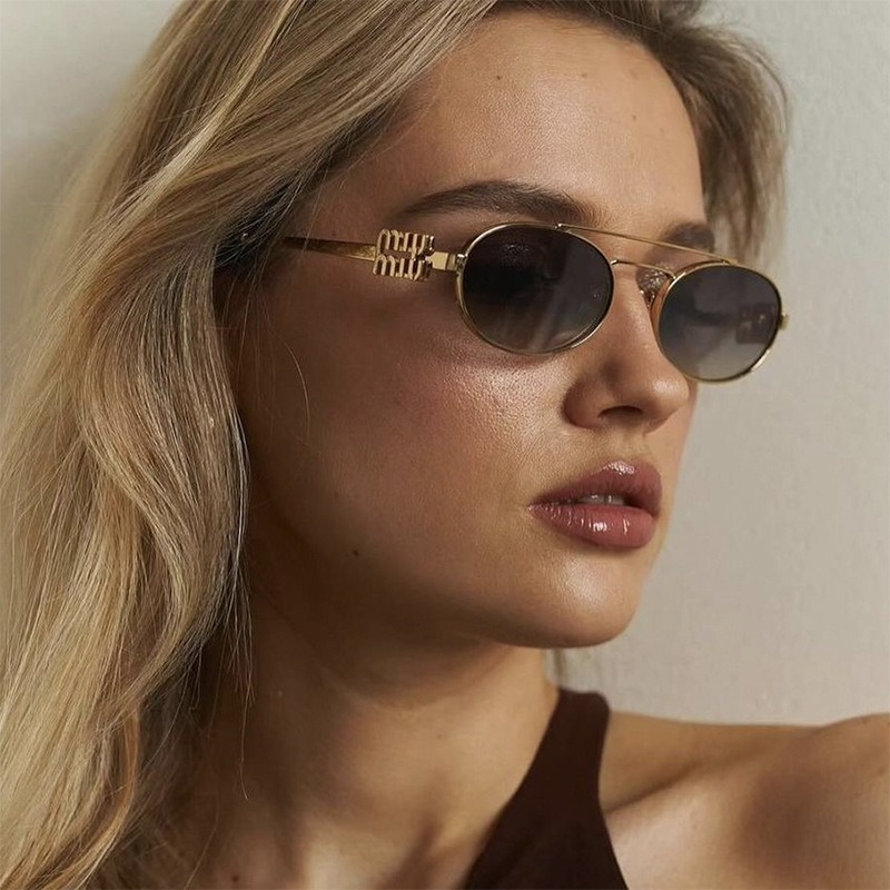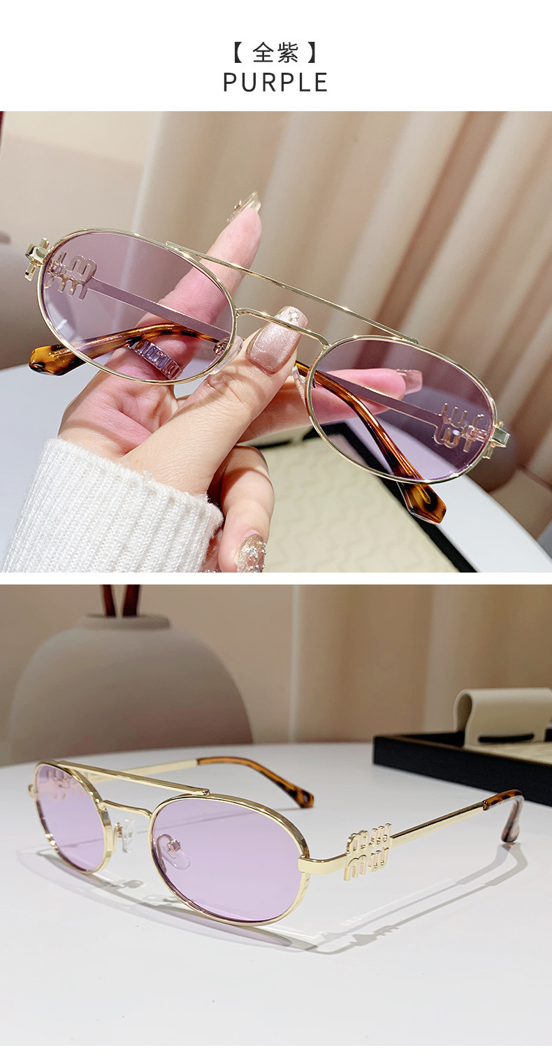 2025년 신형 더블 빔 타원형 선글라스 여성용 패션 만능 메탈 선글라스 고급스러운 미우미우 스타일 선글라스