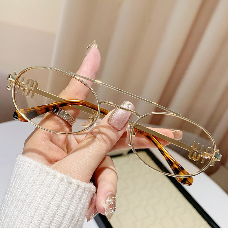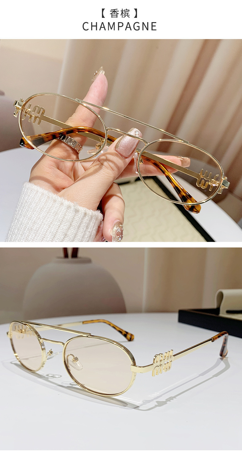 2025년 신형 더블 빔 타원형 선글라스 여성용 패션 만능 메탈 선글라스 고급스러운 미우미우 스타일 선글라스스토어 가기
