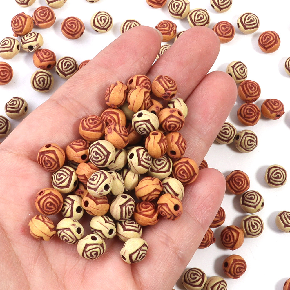 새로운 빈티지 아크릴 모조 나무 꽃 구슬 diy 초보자 수제 구슬 소재 액세서리 팔찌 구슬 느슨한 구슬스토어 가기