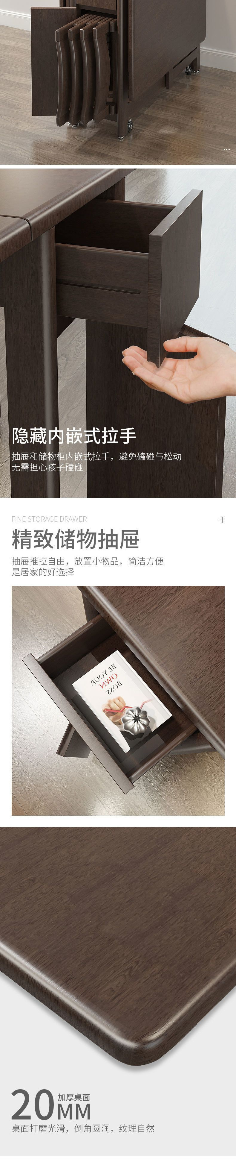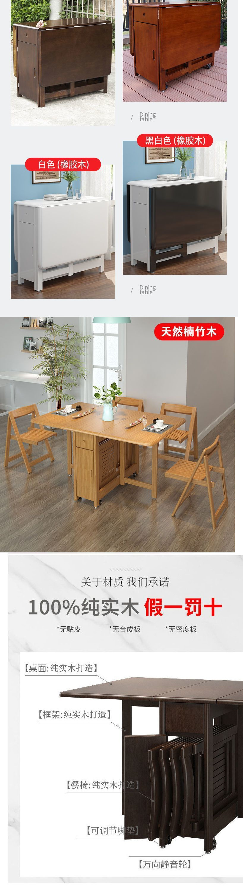 접이식 식탁 황금 호두 식탁 및 의자 홈 식탁 작은 아파트 단단한 나무 망원경 현대 간단한 직사각형 테이블스토어 가기