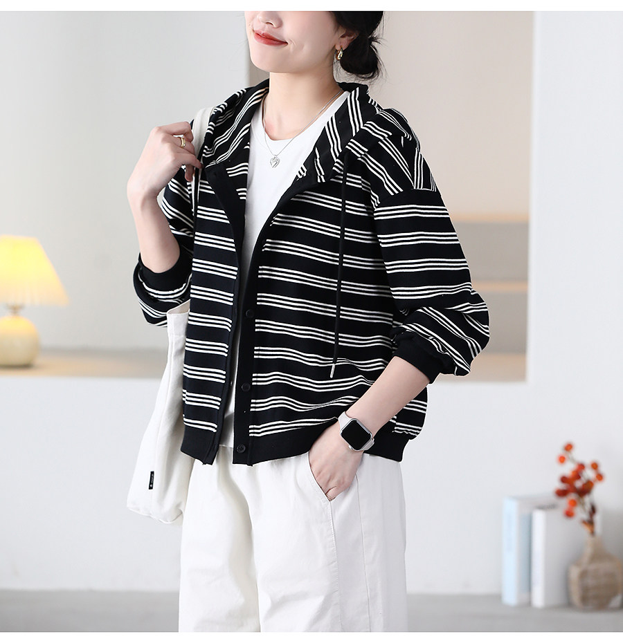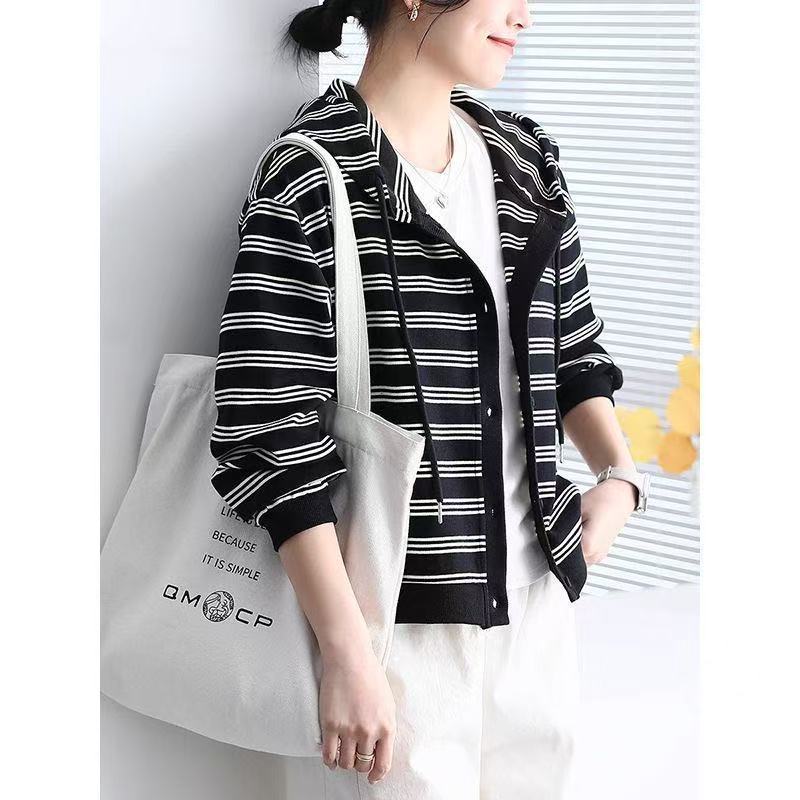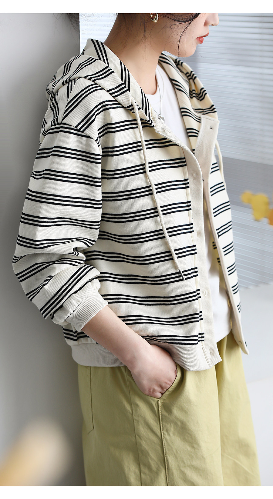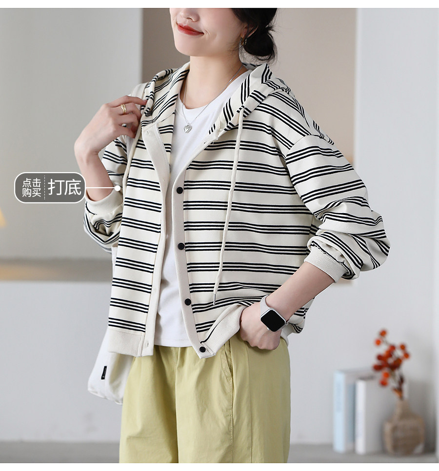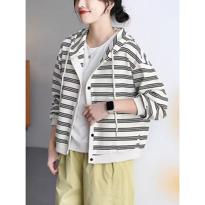봄 뉴 스트라이프 후드 재킷 여성 캐주얼 루즈 슬리밍 한국 스타일 스웨터 카디건 여성 12993