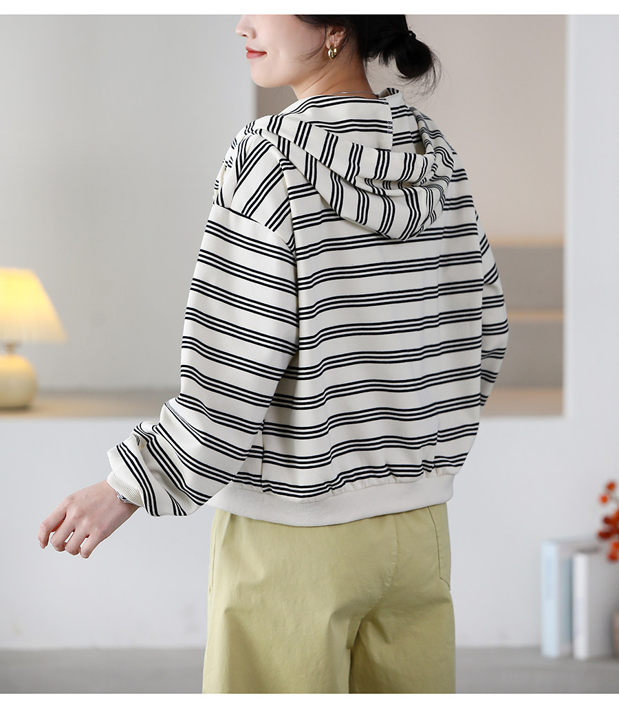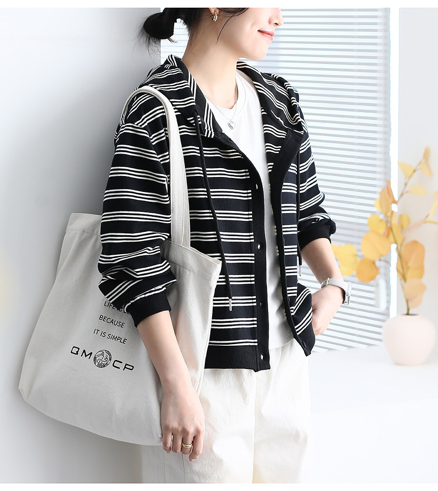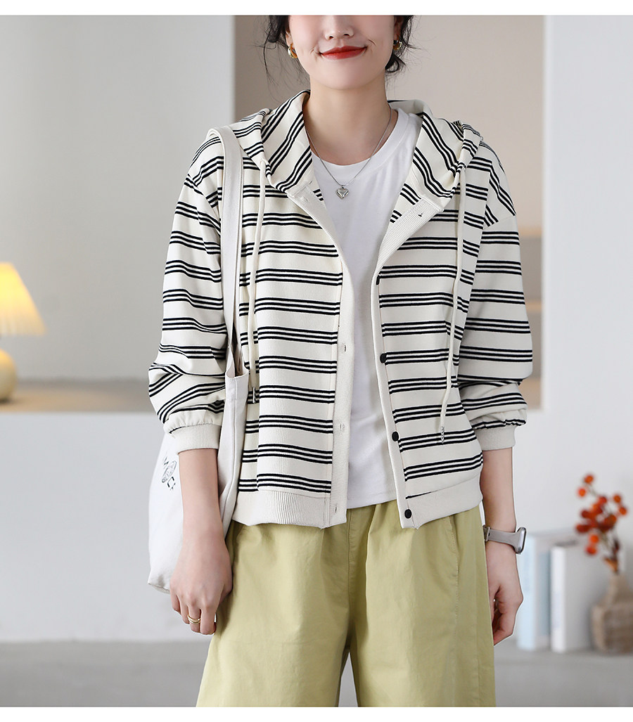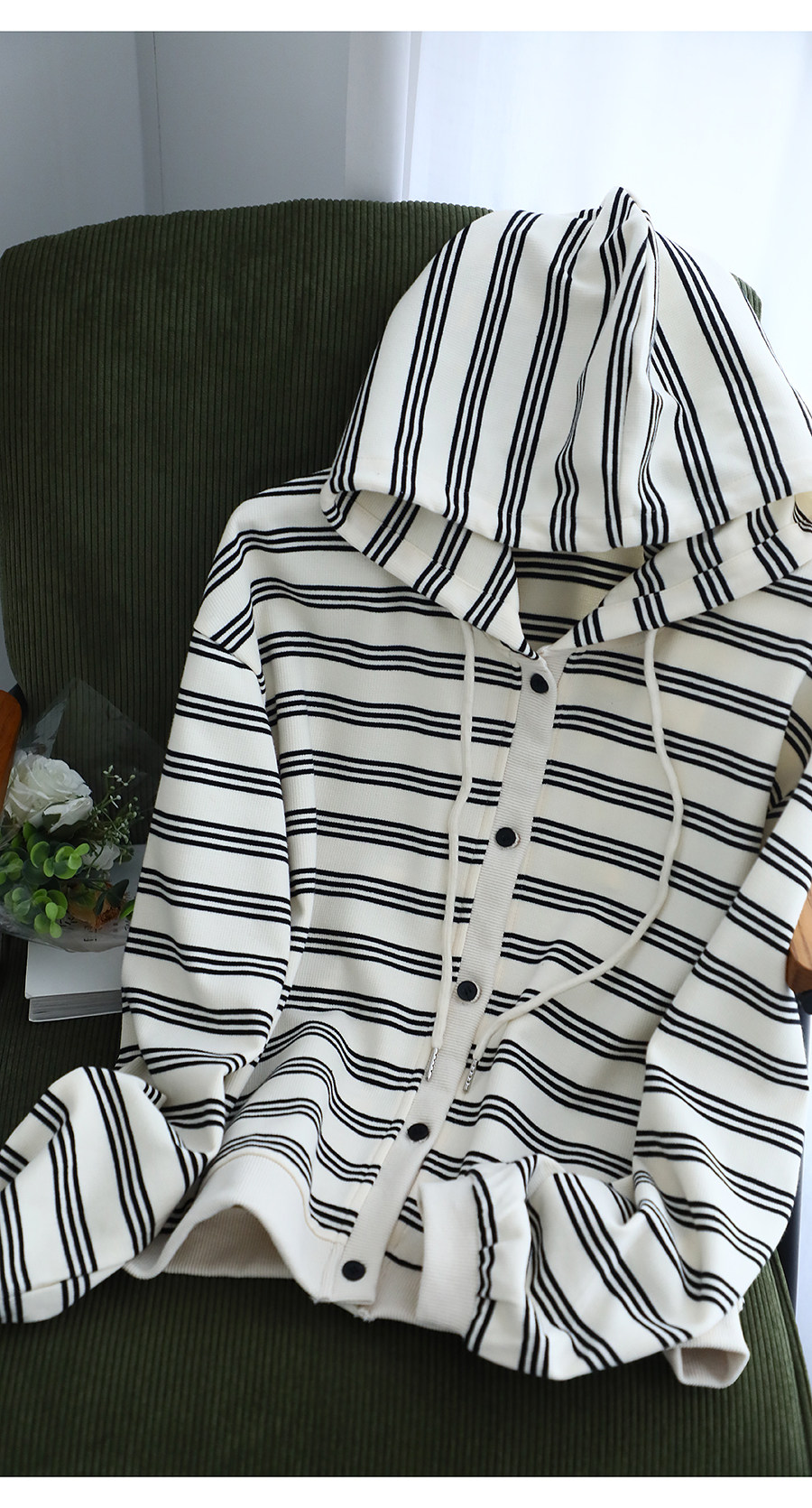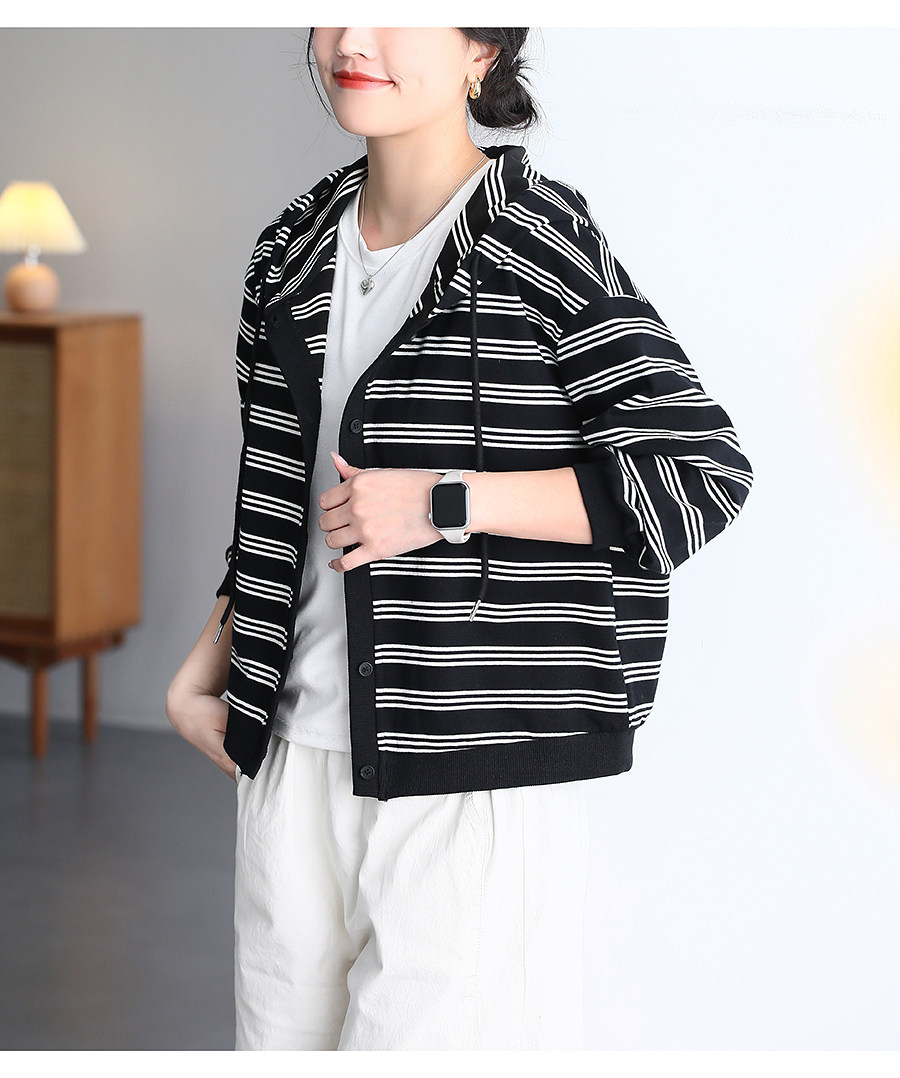 봄 뉴 스트라이프 후드 재킷 여성 캐주얼 루즈 슬리밍 한국 스타일 스웨터 카디건 여성 12993