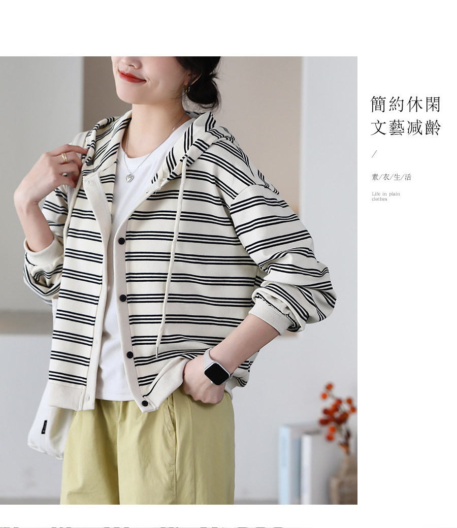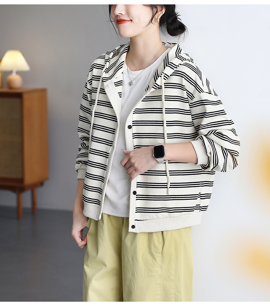 봄 뉴 스트라이프 후드 재킷 여성 캐주얼 루즈 슬리밍 한국 스타일 스웨터 카디건 여성 12993스토어 가기