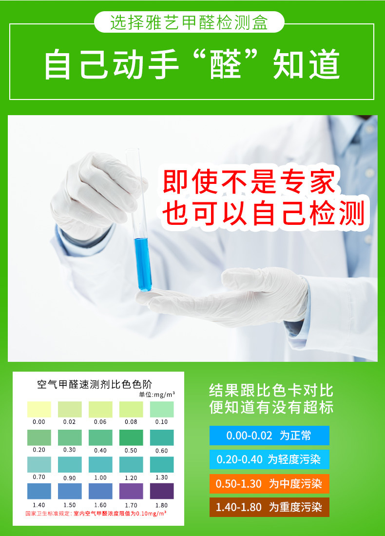 포름 알데히드 감지 상자 가정용 탐지기 실내 공기 품질 일회용 테스트 종이 자체 테스트 상자 실내 장식