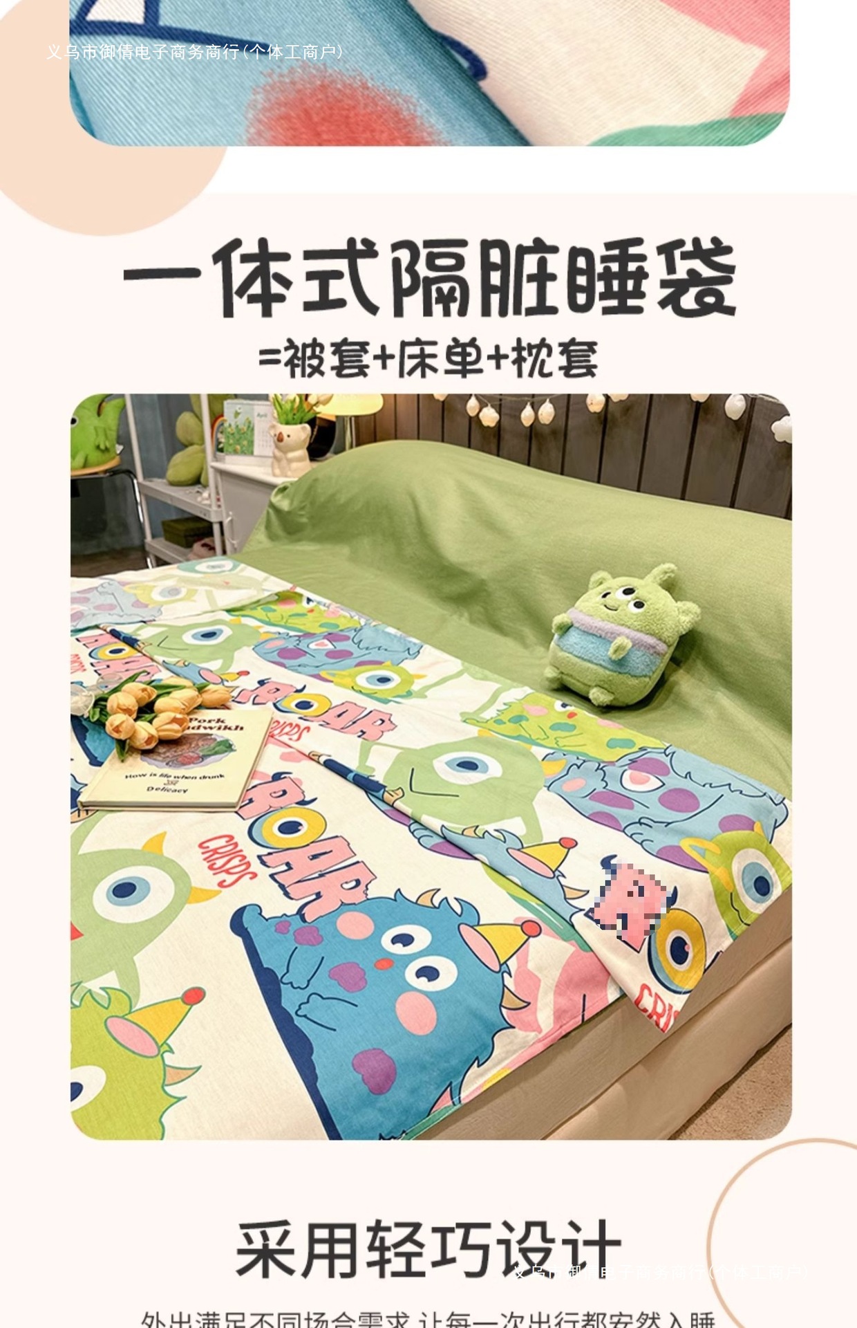 순수한 면화 더티 분리 된 호텔 슬리핑 백 여행 성인 4 피스 나가는 휴대용 침대 시트 퀼트 커버스토어 가기
