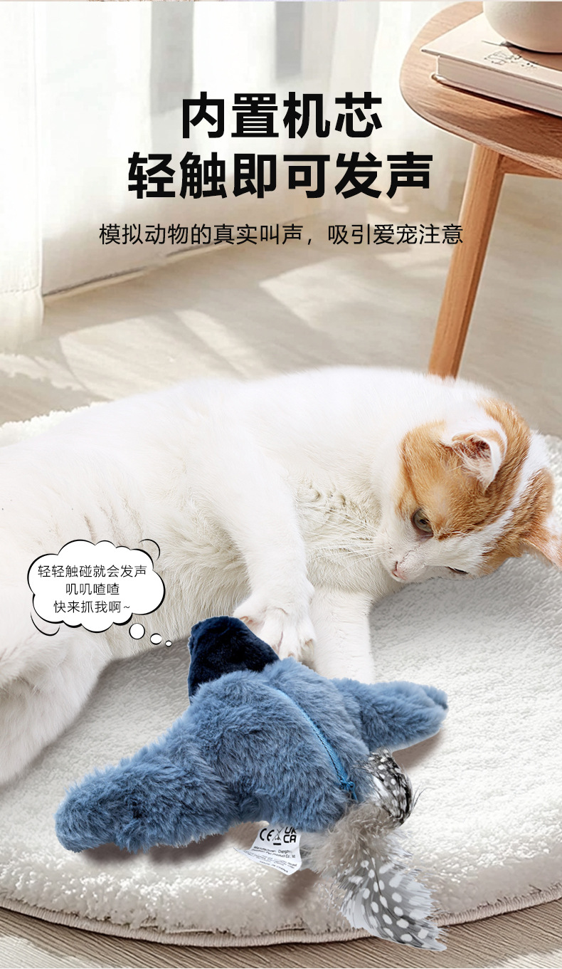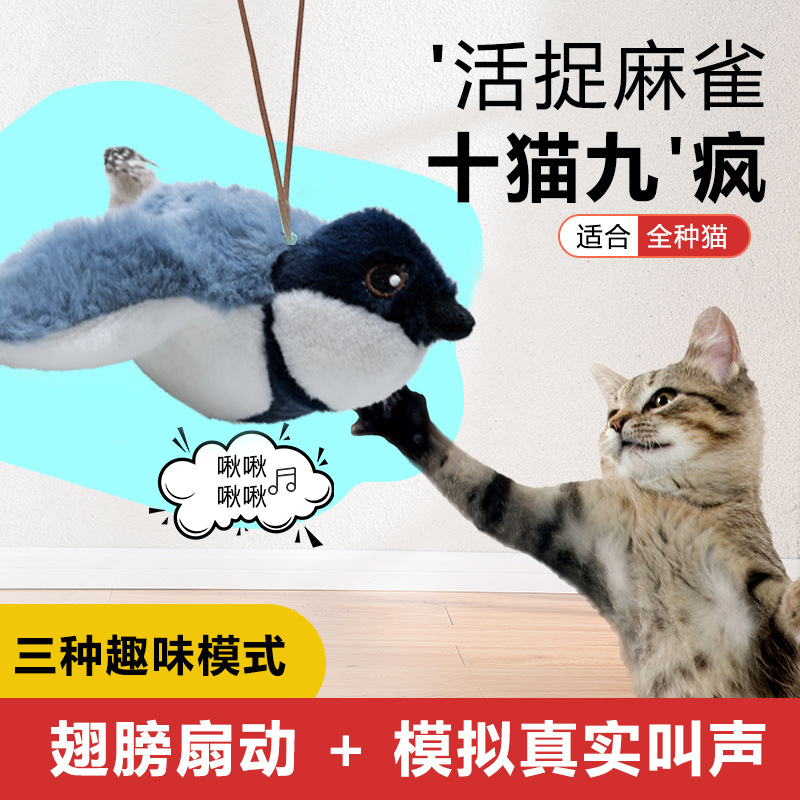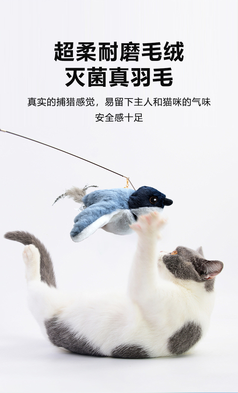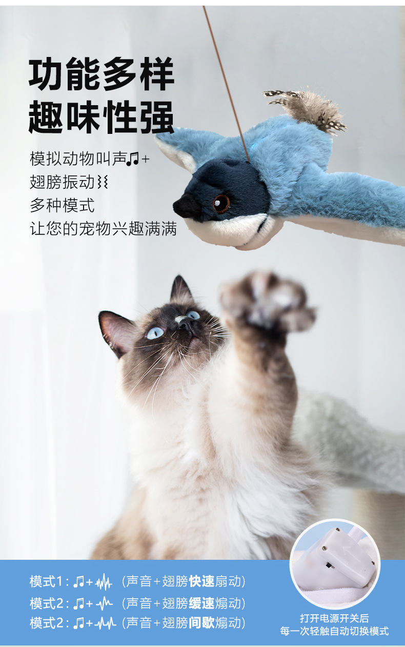 애완동물 장난감, 인기 있는 고양이 플러시 인형, 시뮬레이션 전동 흔들리는 고양이 장난감, 지루함 해소 및 자기 자극 장난감, 블루 버드 미니