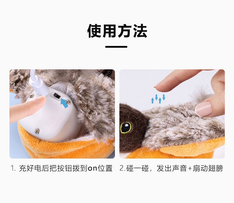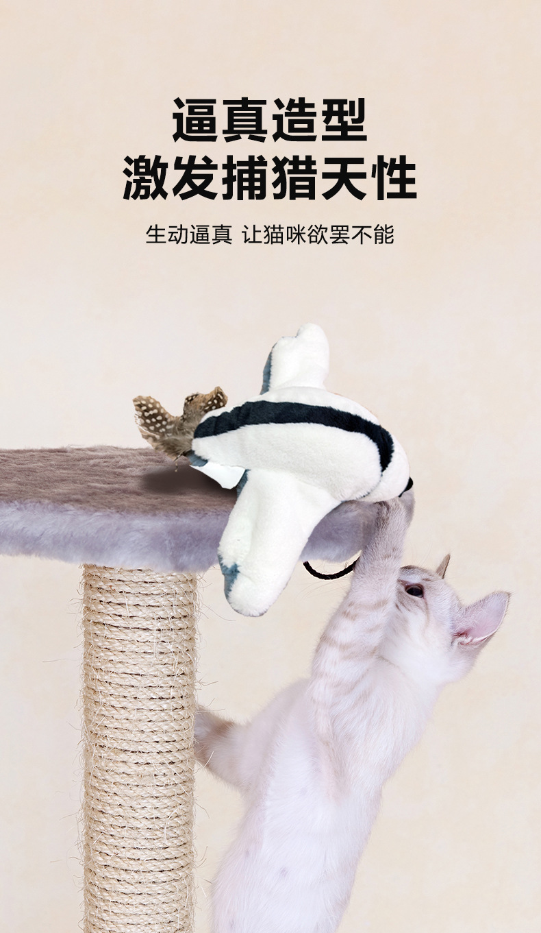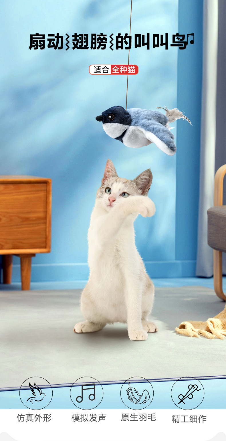 애완동물 장난감, 인기 있는 고양이 플러시 인형, 시뮬레이션 전동 흔들리는 고양이 장난감, 지루함 해소 및 자기 자극 장난감, 블루 버드 미니