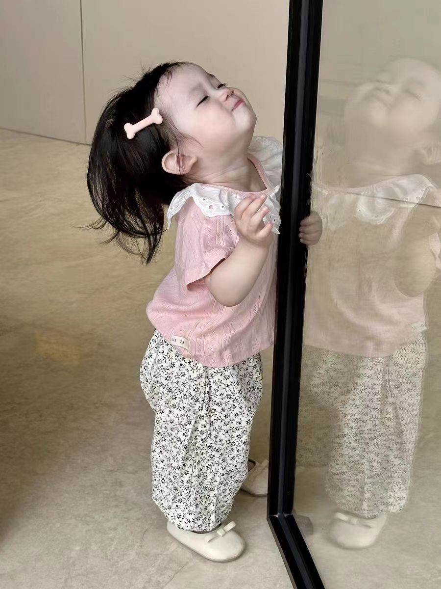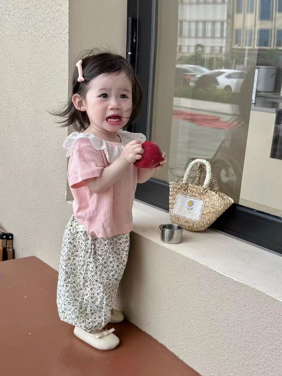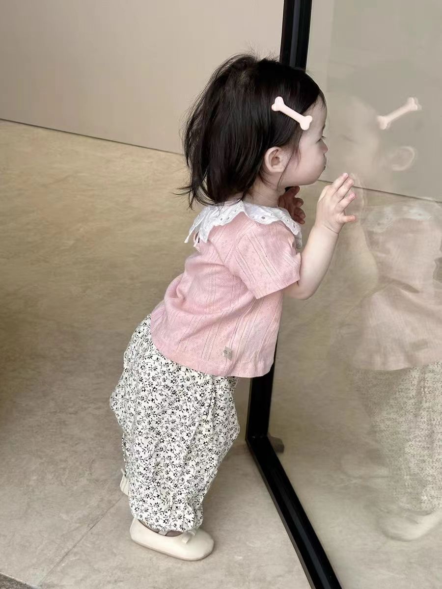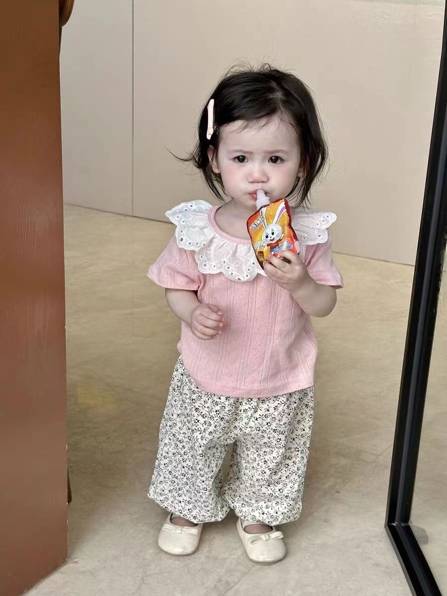 Ins 여름 투피스 레이스 칼라 얇은 메쉬 통기성 반팔 티셔츠 여성의 여름 안티 모기 바지 스타일라인 세트스토어 가기