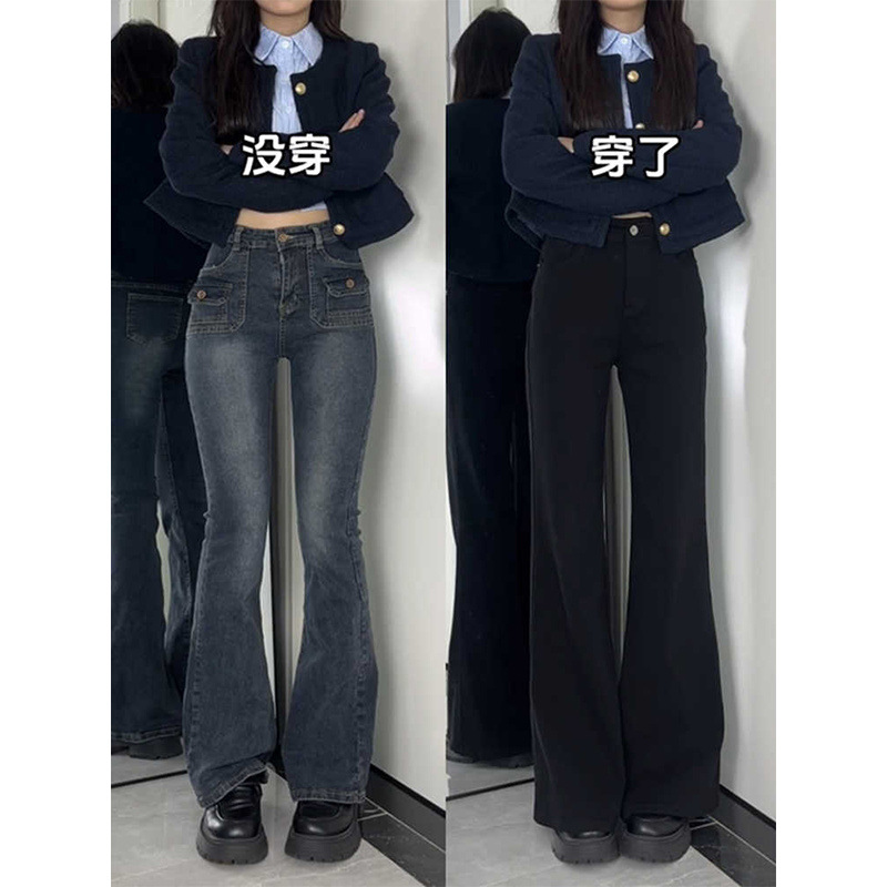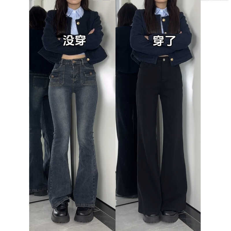 다리 슬림프 청바지 여성용 봄과 가을 배 모양의 그림 높은 허리 슬림 플러스 사이즈 말굽 바지가없는 배 모양의 그림 통통녀스토어 가기