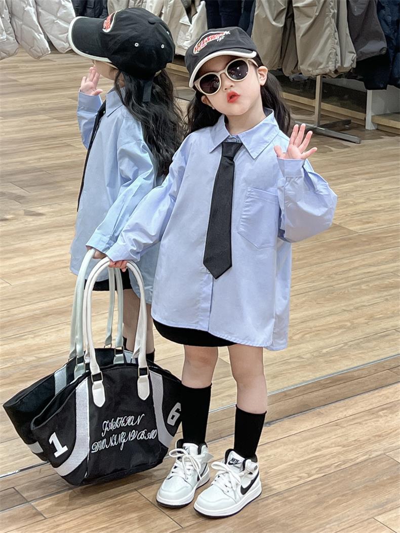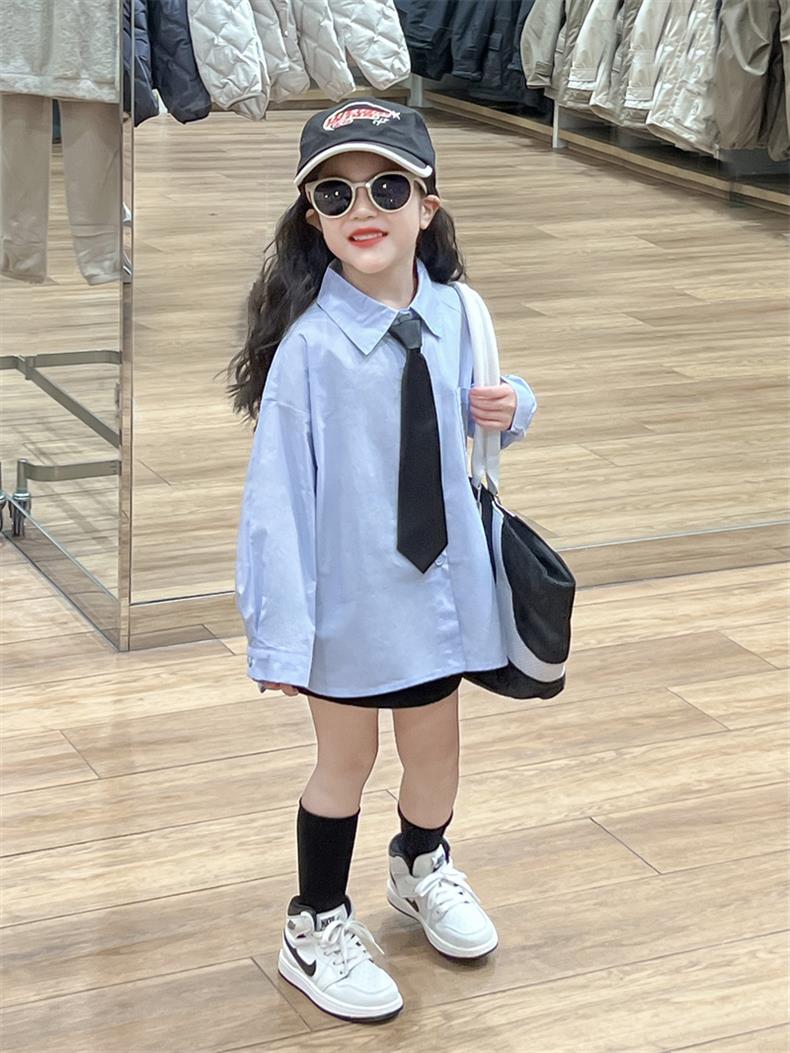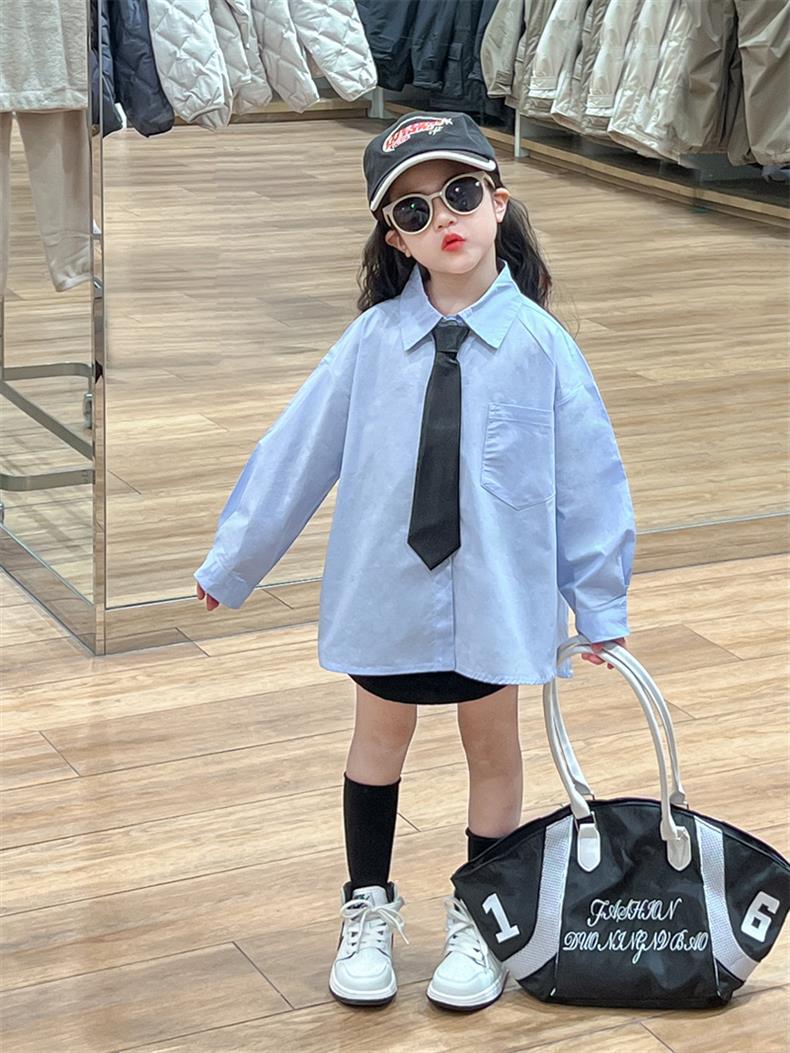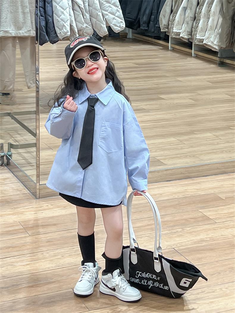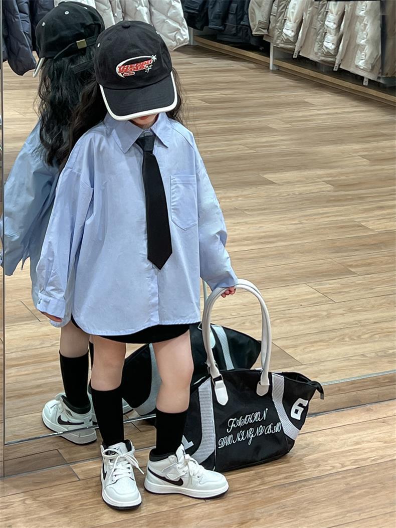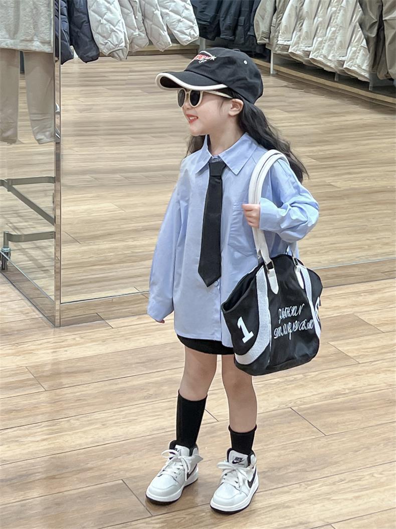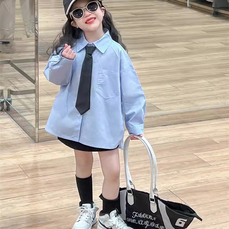 어린이 긴 소매 나비 넥타이 셔츠 2025 봄과 가을 새로운 아기 캐주얼 최고의 대학 스타일 한국 스타일 소년 소녀 셔츠스토어 가기