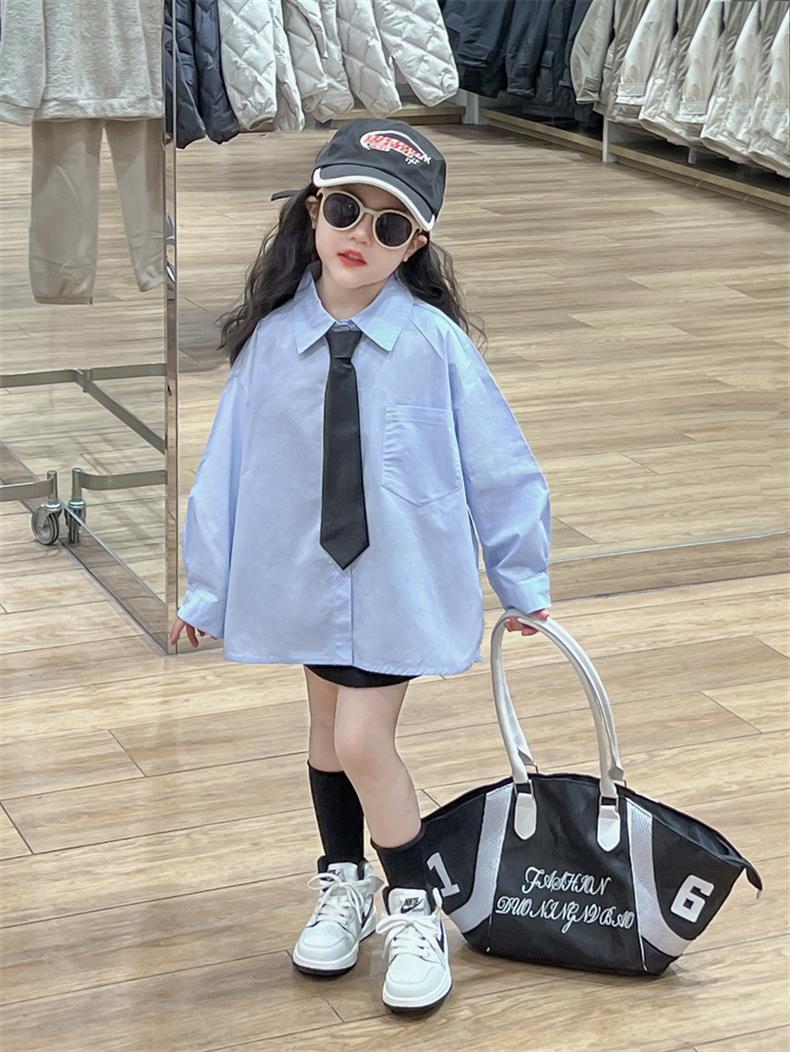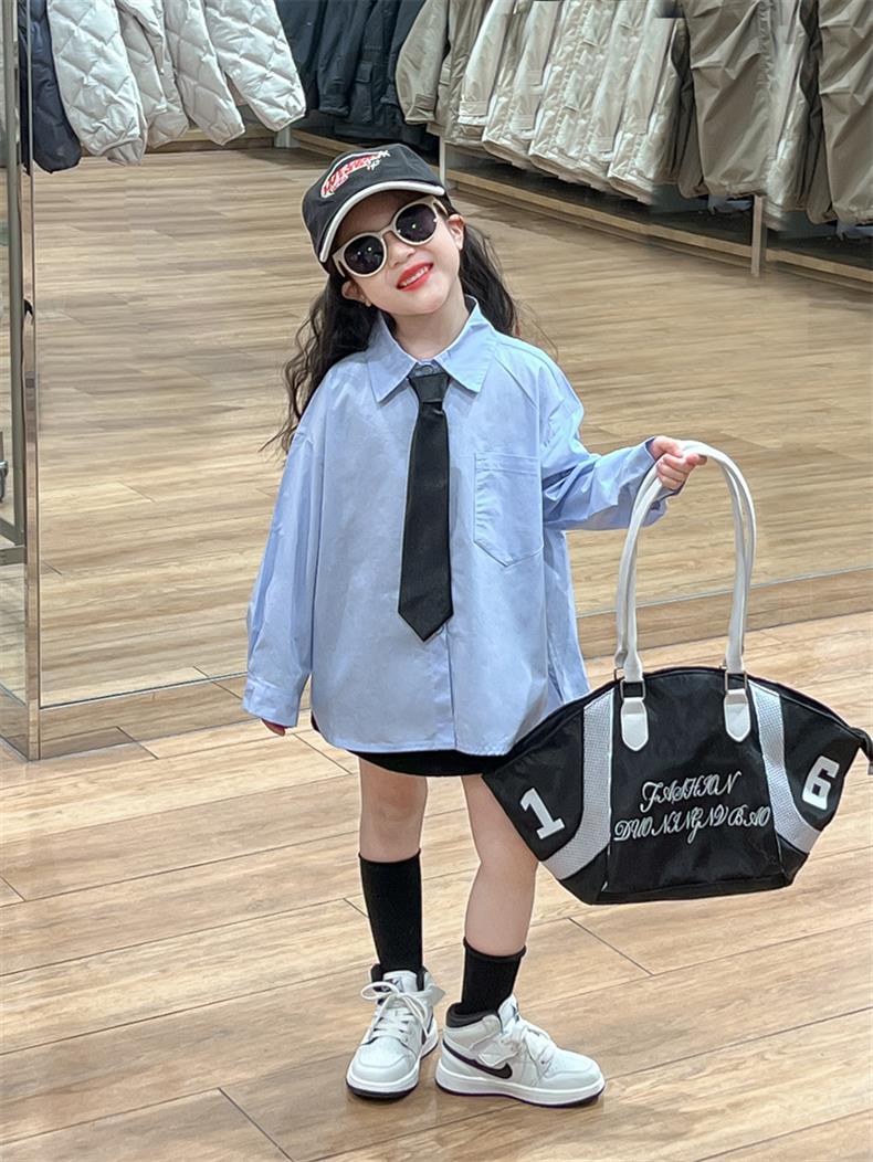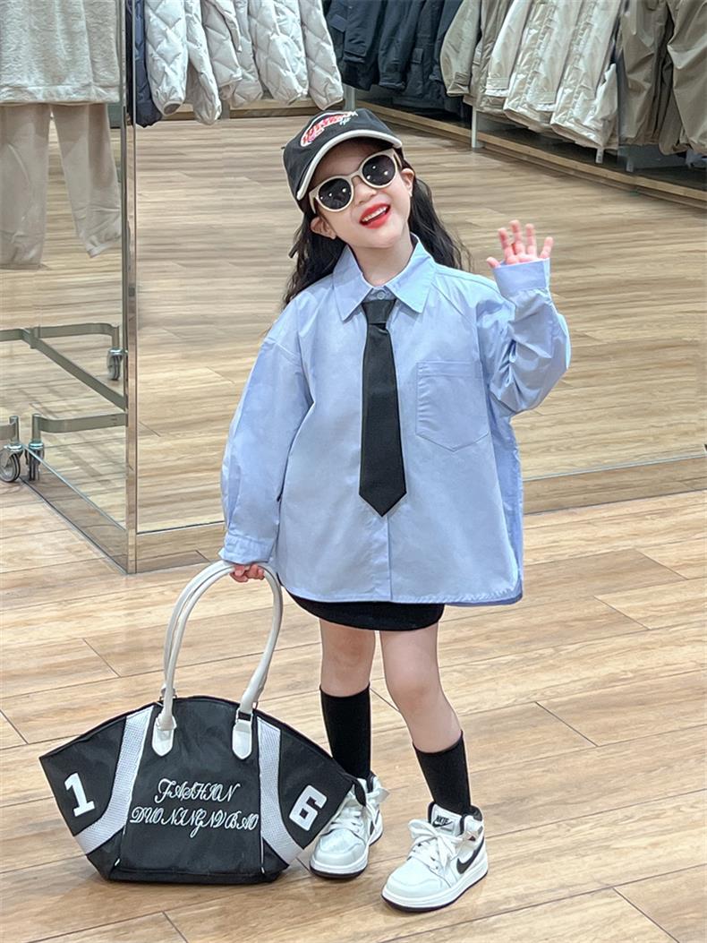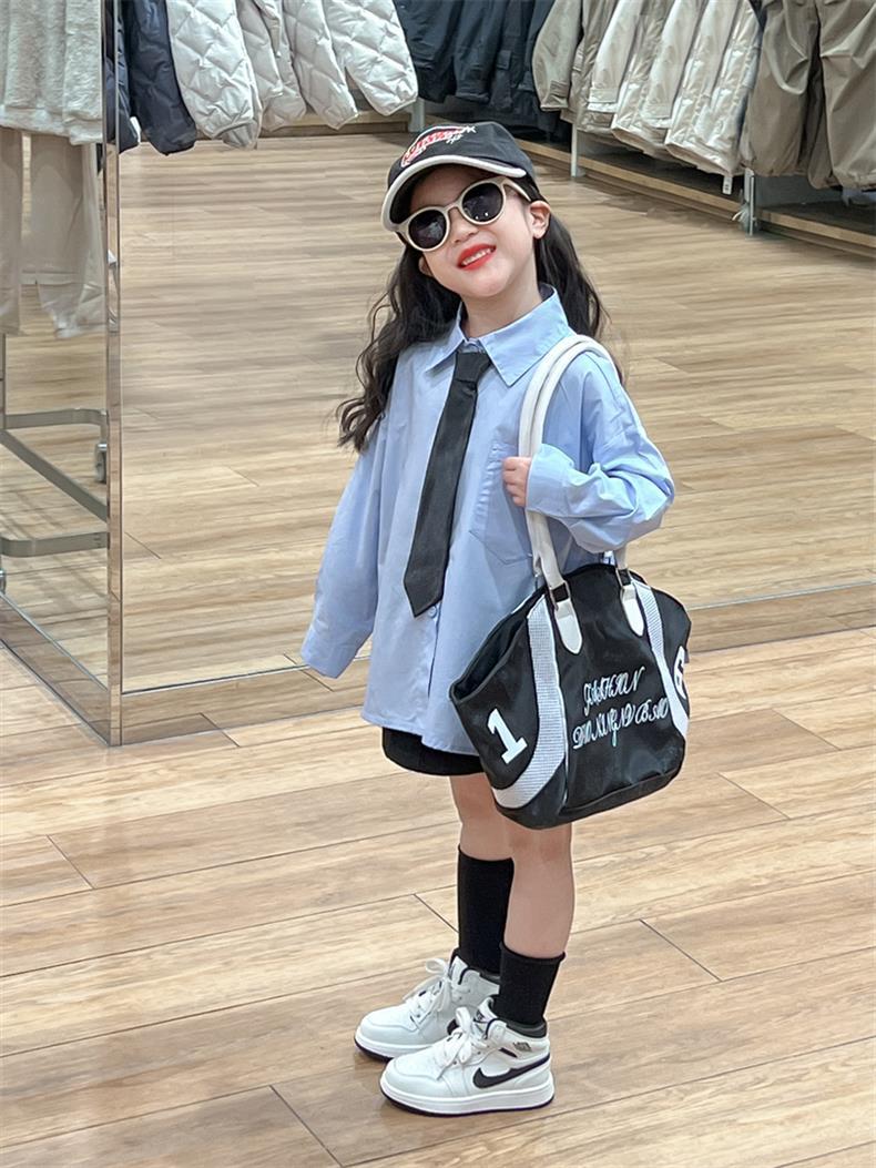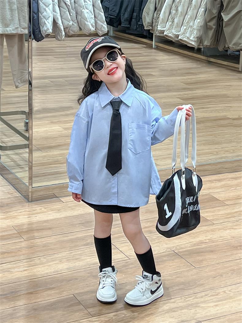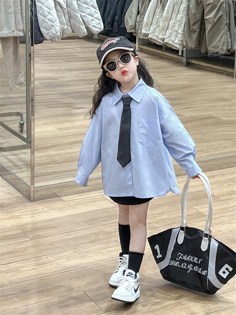 어린이 긴 소매 나비 넥타이 셔츠 2025 봄과 가을 새로운 아기 캐주얼 최고의 대학 스타일 한국 스타일 소년 소녀 셔츠스토어 가기