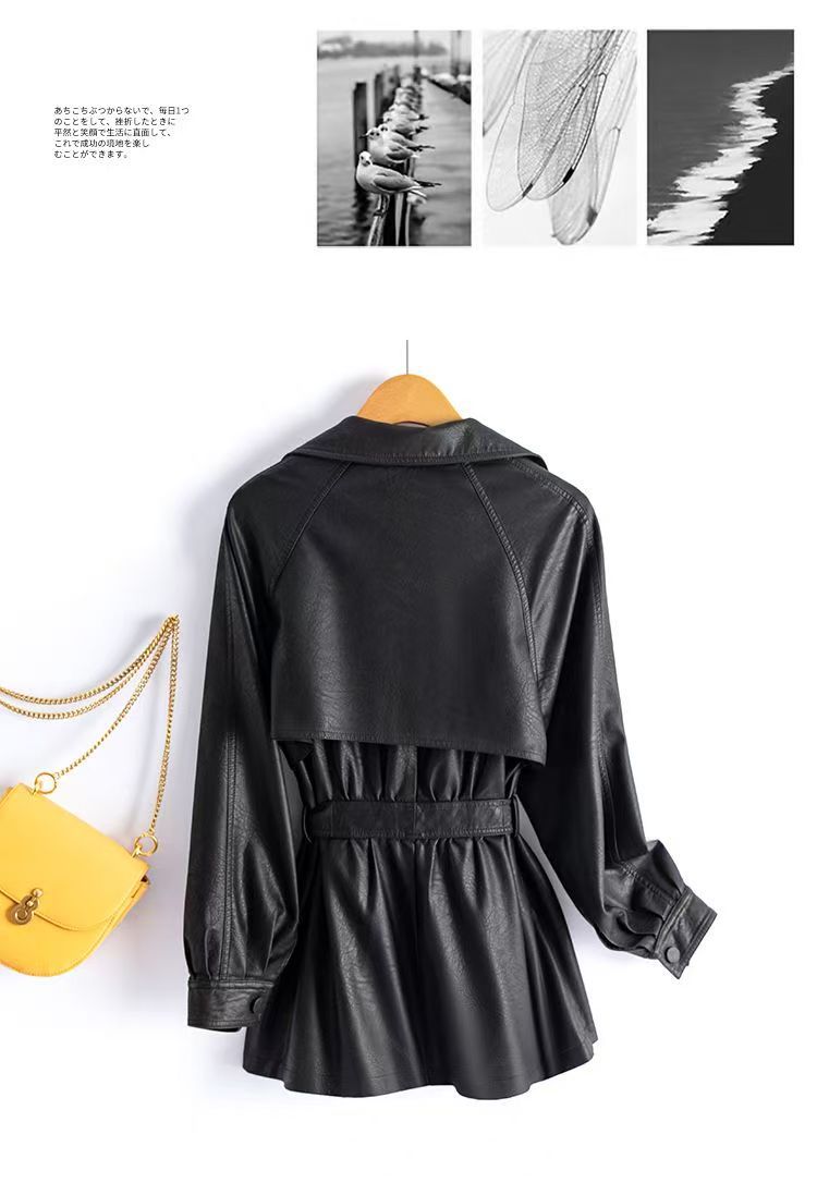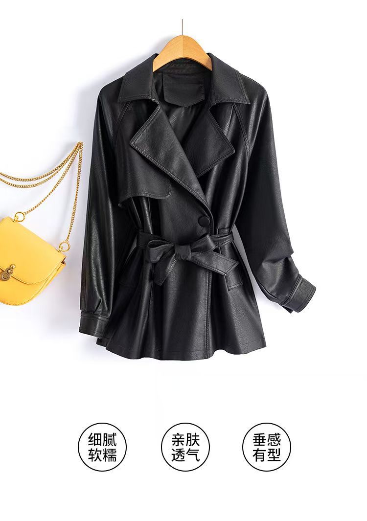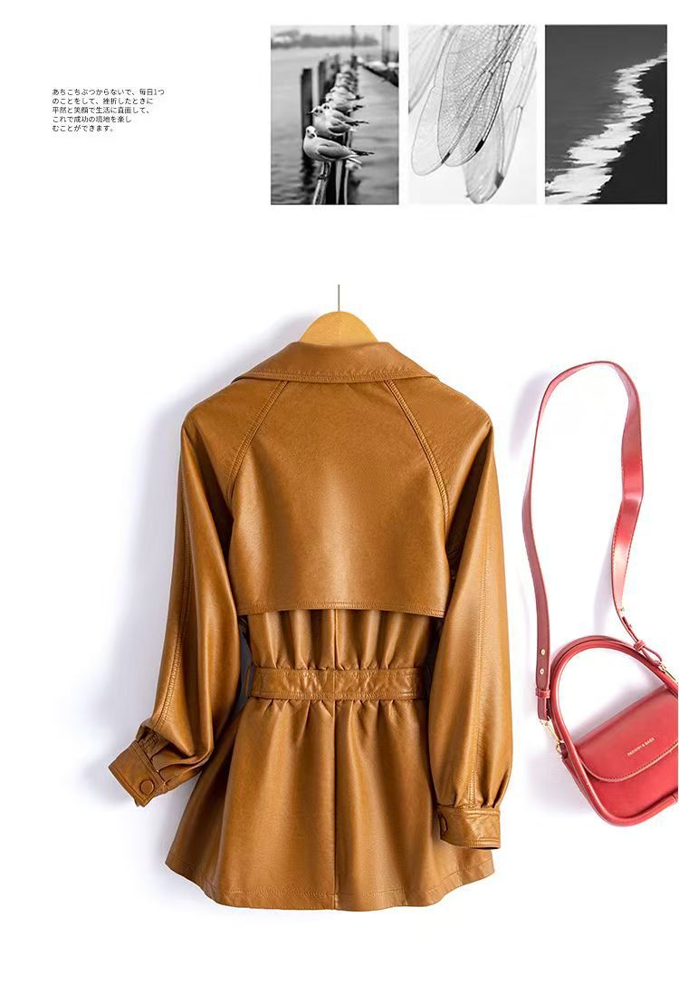 2025 봄 새로운 한국 가죽 여성 플러스 사이즈 느슨한 짧은 윈드 브레이커 허리 슬리밍 가죽 자켓 여성 가죽 자켓 1912