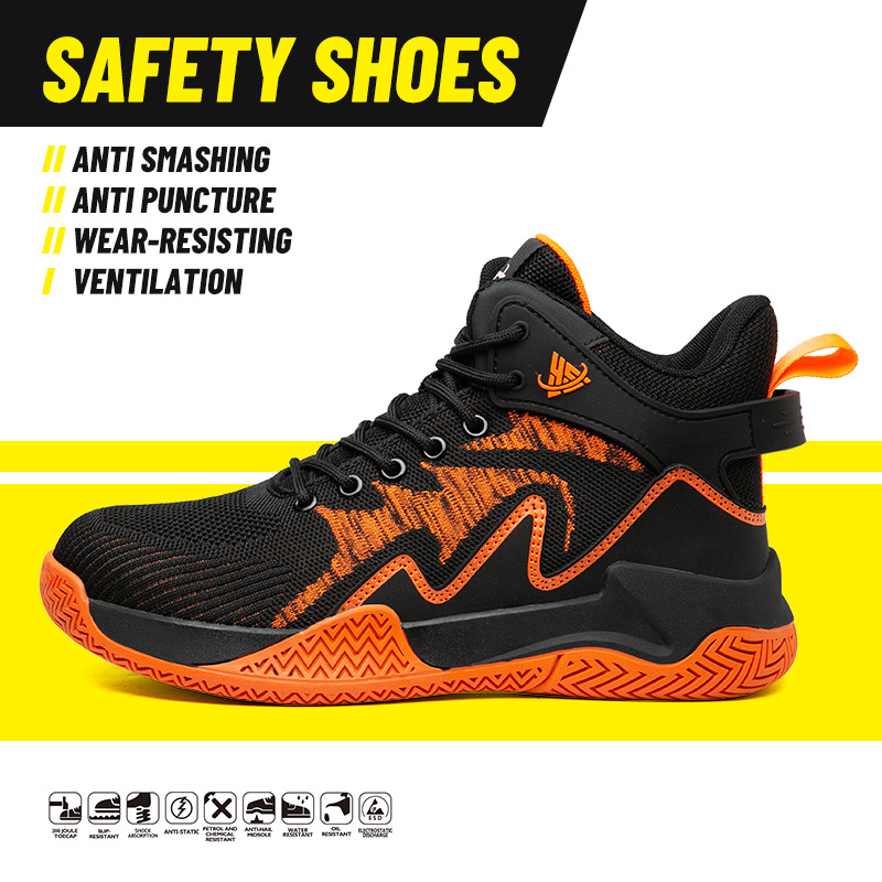 국경 간 새로운 비행 직조 노동 보호 신발 통기성 편안한 농구 신발 안티 스매싱 안티 피어싱 내마모성 미드 탑 경량 안전 신발