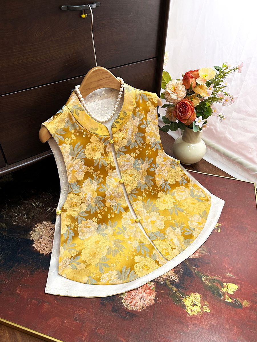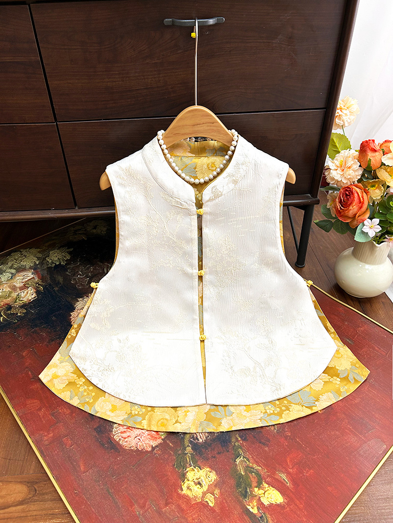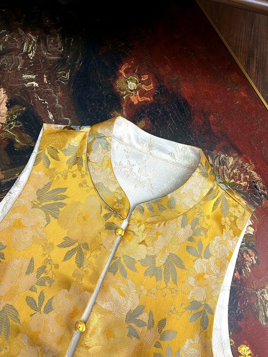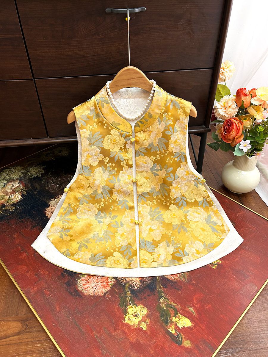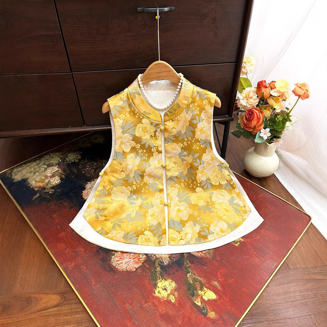 새로운 중국 스타일 국가 스타일 양면 조끼 착용 여성 2025 봄 새로운 고급 우아한 밝은 색 브로케이드 닦아 조끼스토어 가기